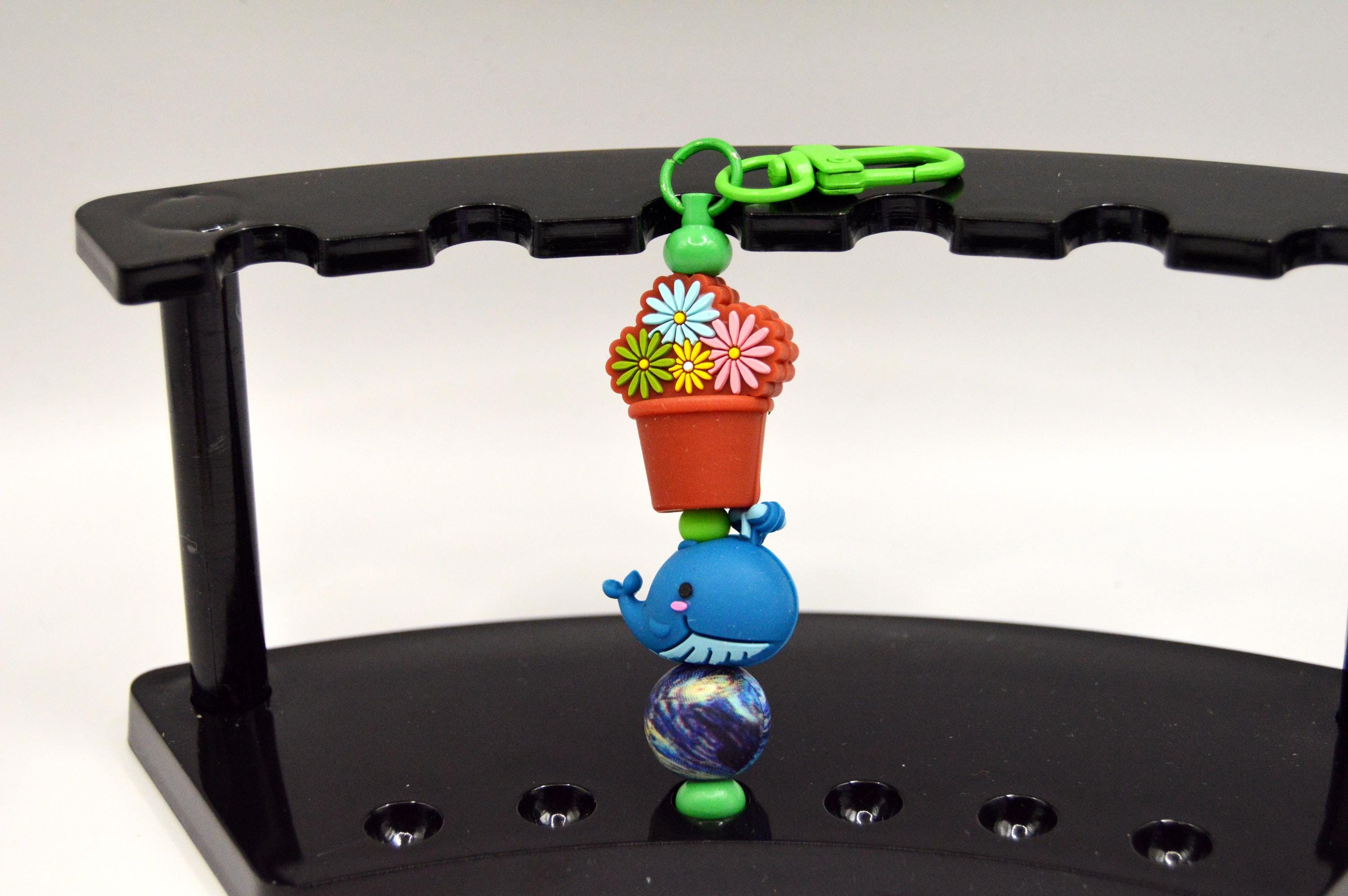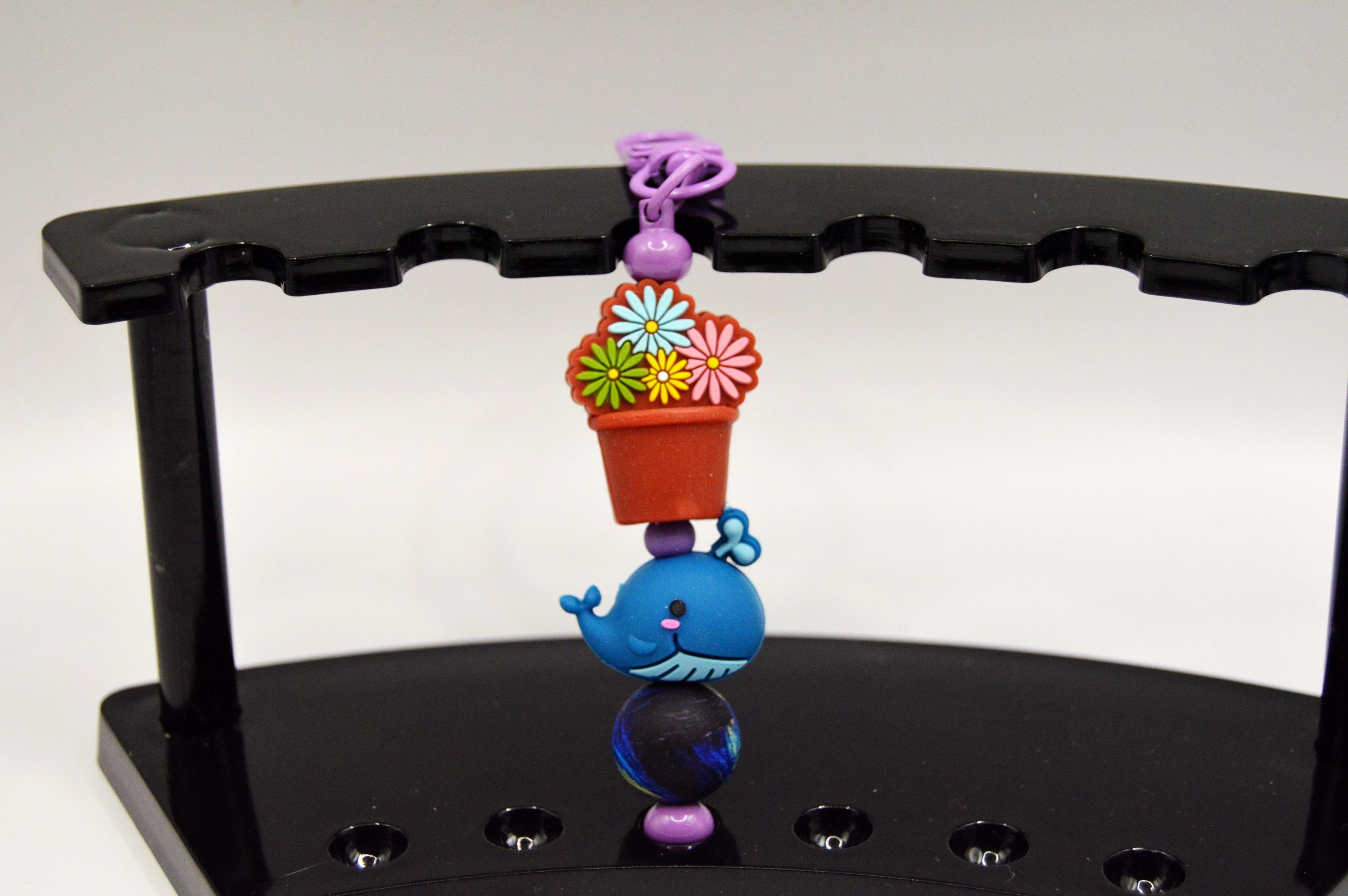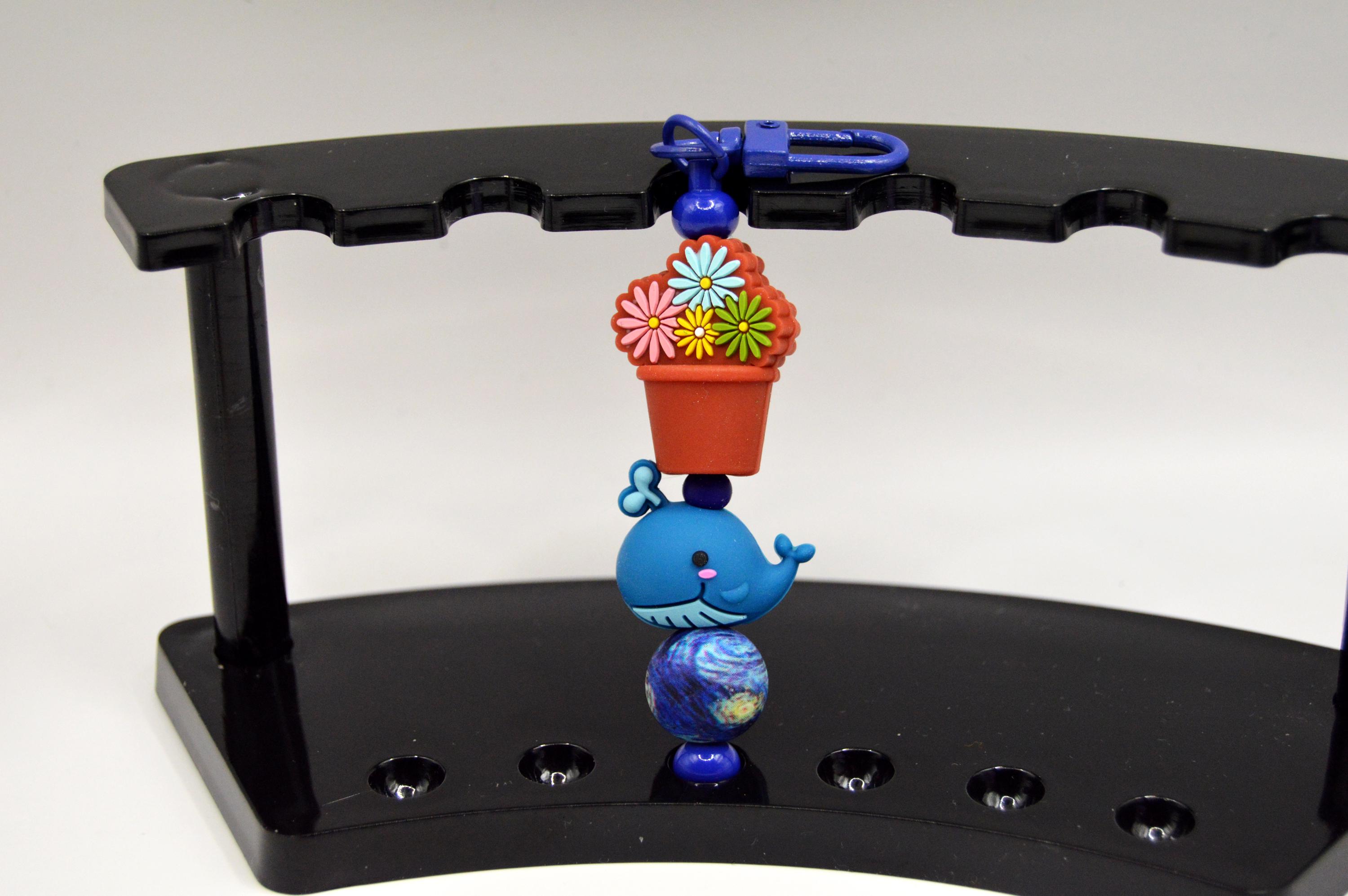 Made from silicone beads 3D and double sided and a 3" stainless steel bar, other parts are enamel coated metals.