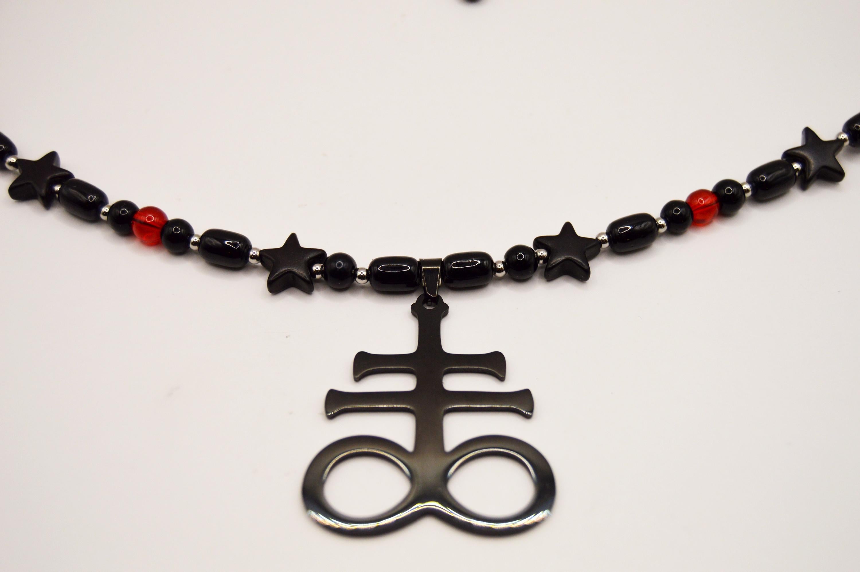 This black stainless steel Leviathan Cross Necklace, is a symbol with diverse interpretations. It's often associated with alchemical sulfur, it also is seen as a symbol of balance and protection between persons, as well as the eternal universe.