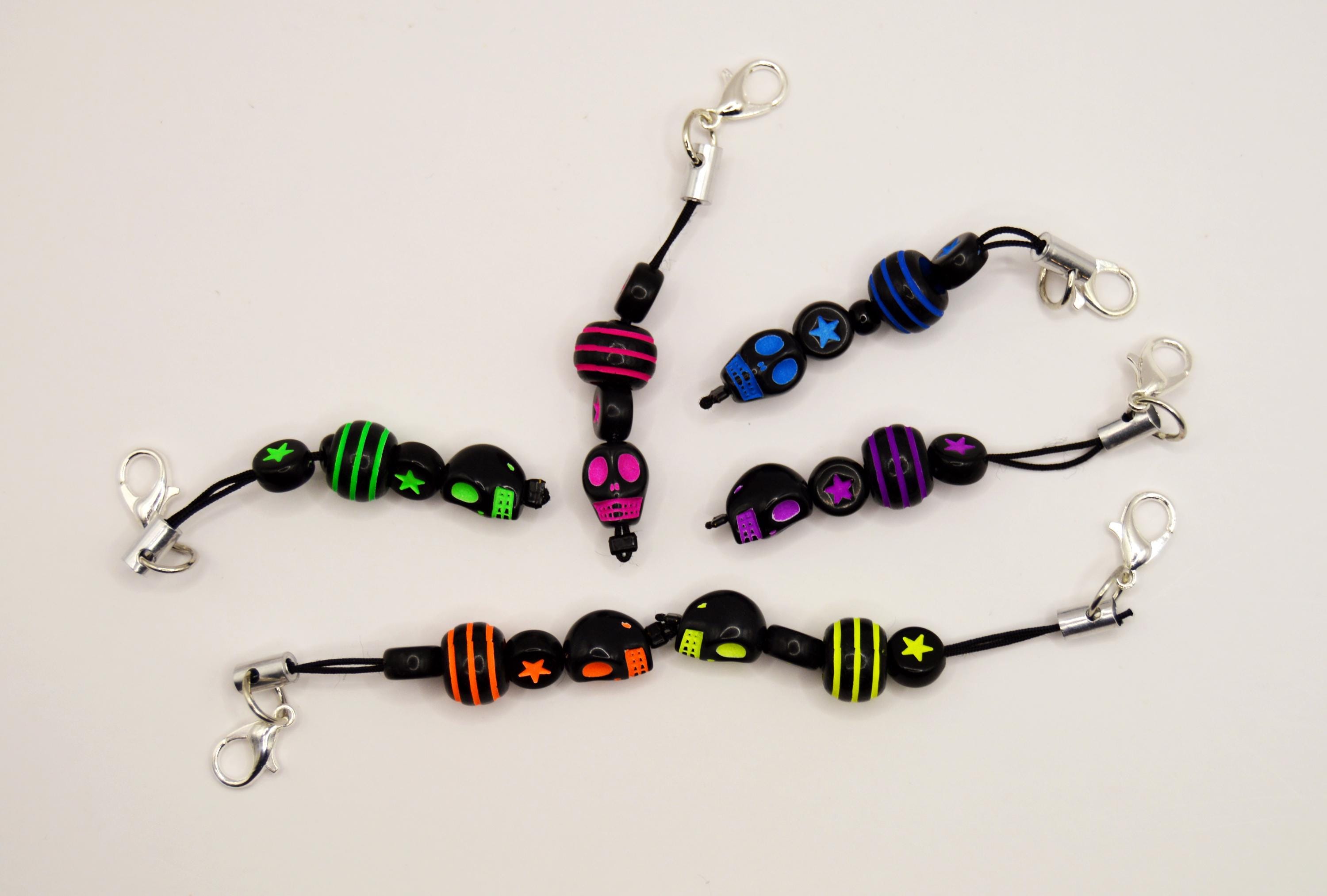 Black light reactive Skull and Stars phone charms. Short and light weight.