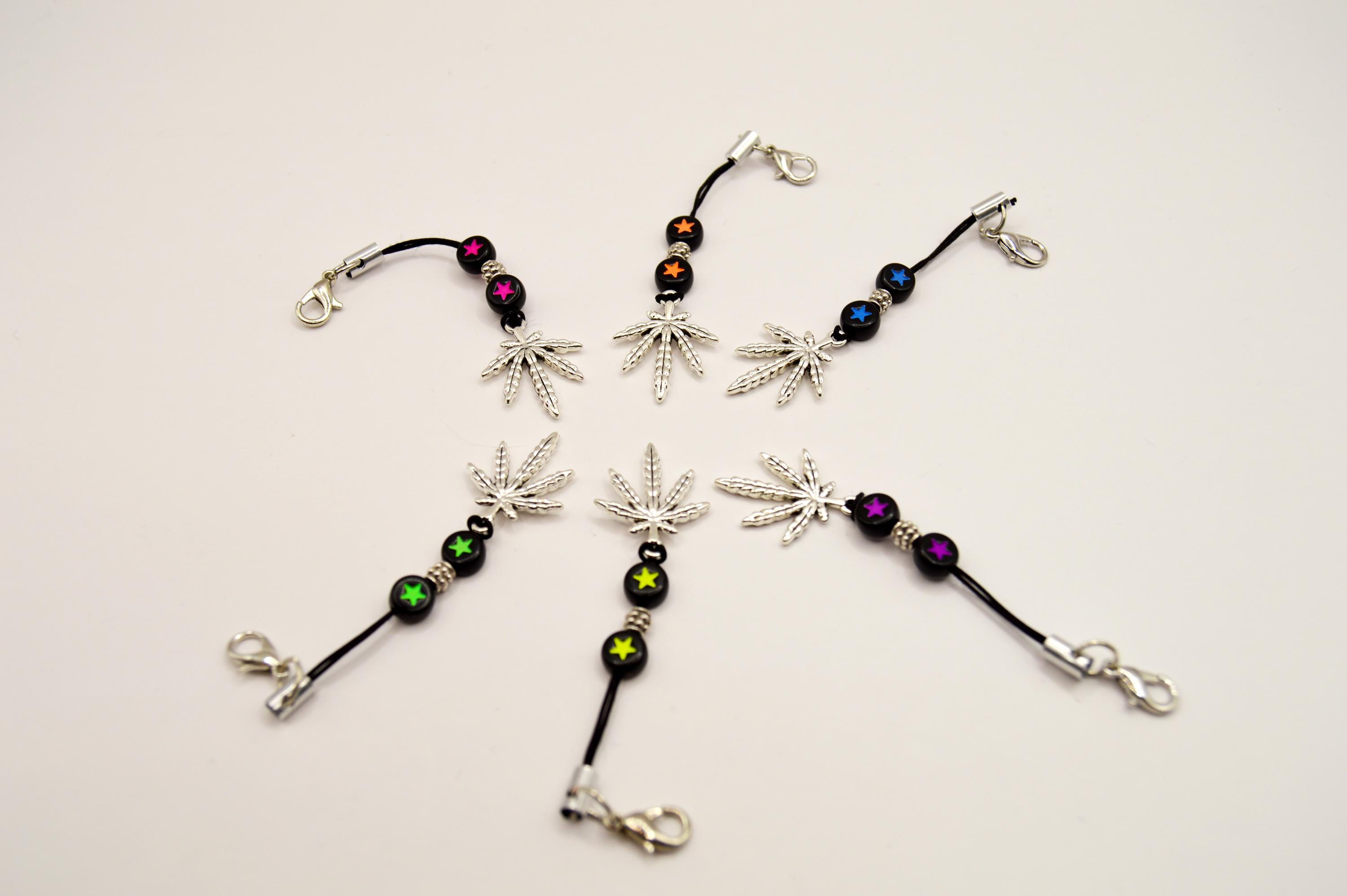 This cannabis leaf phone charm is both lovely and lightweight. Also, the stars glow in black light!