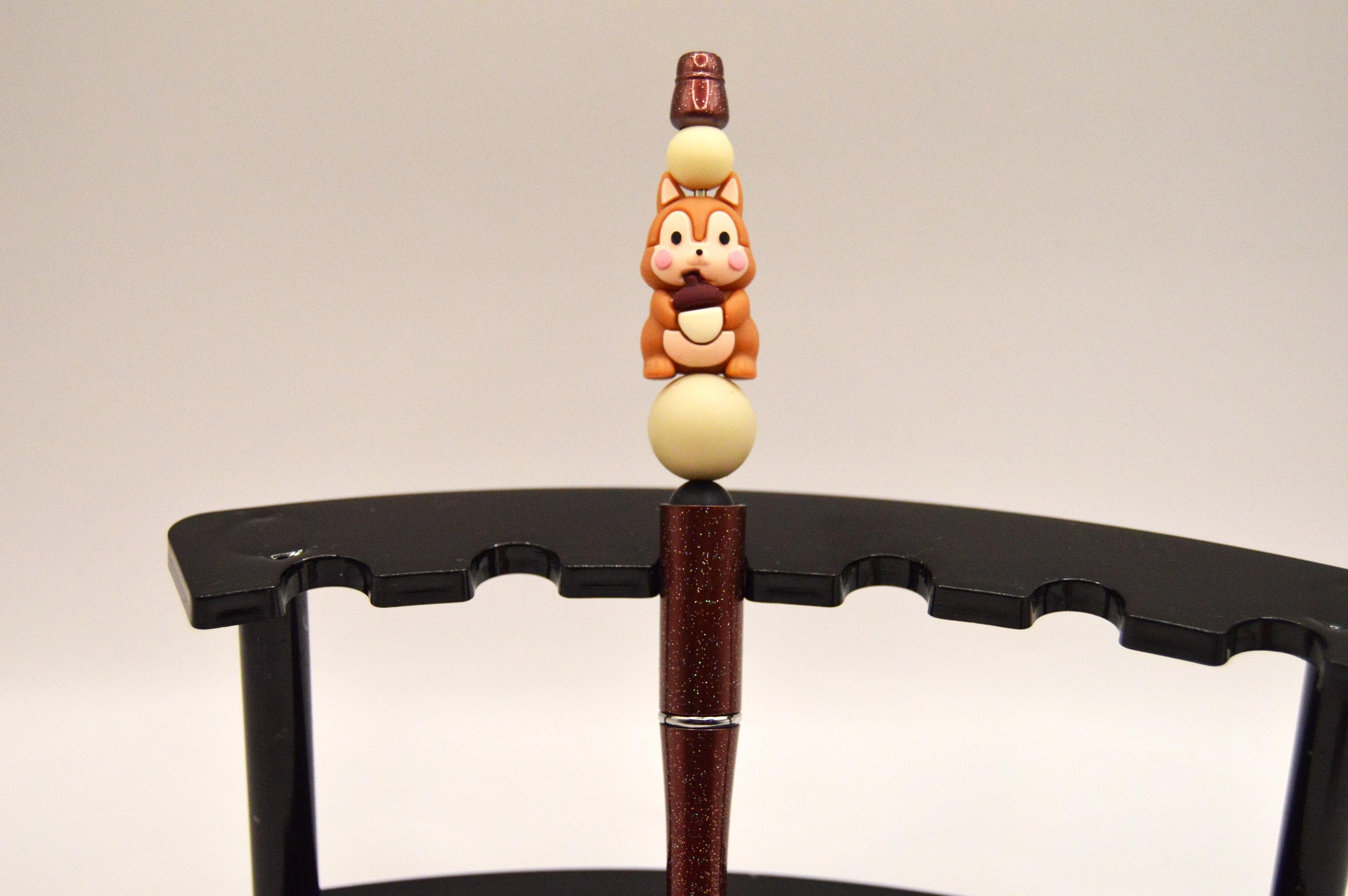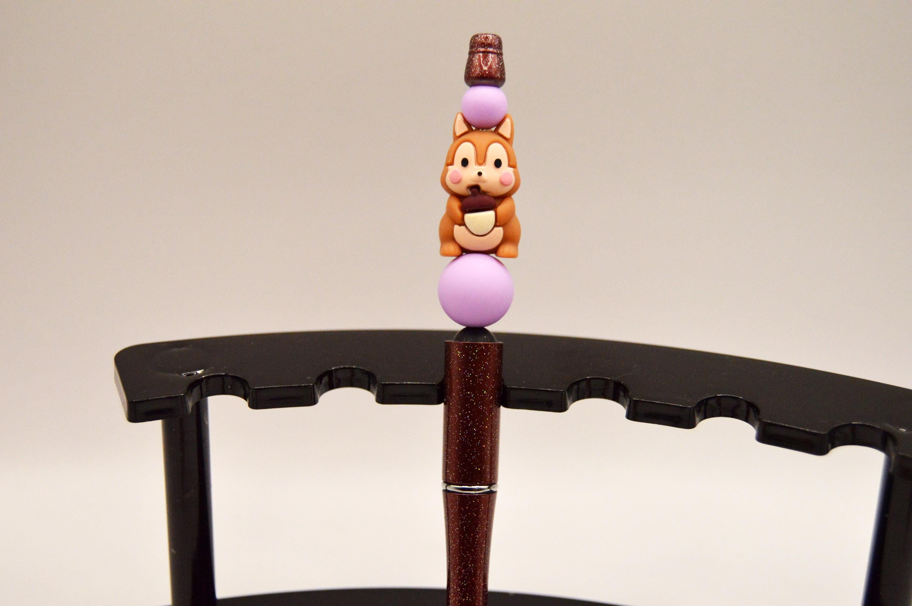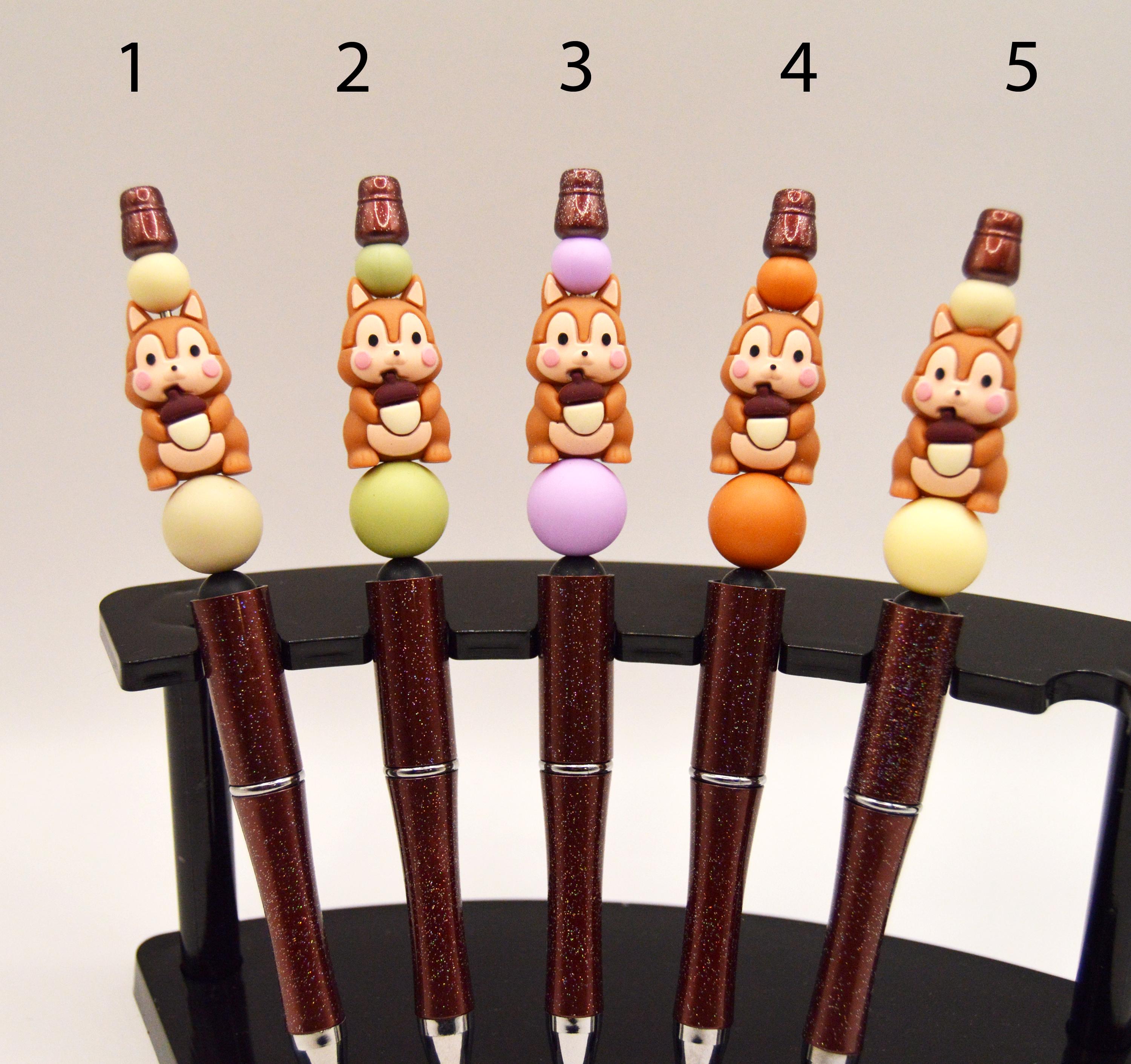 Cute Squirrels holding little acorns on these beautiful brown glittery pens!