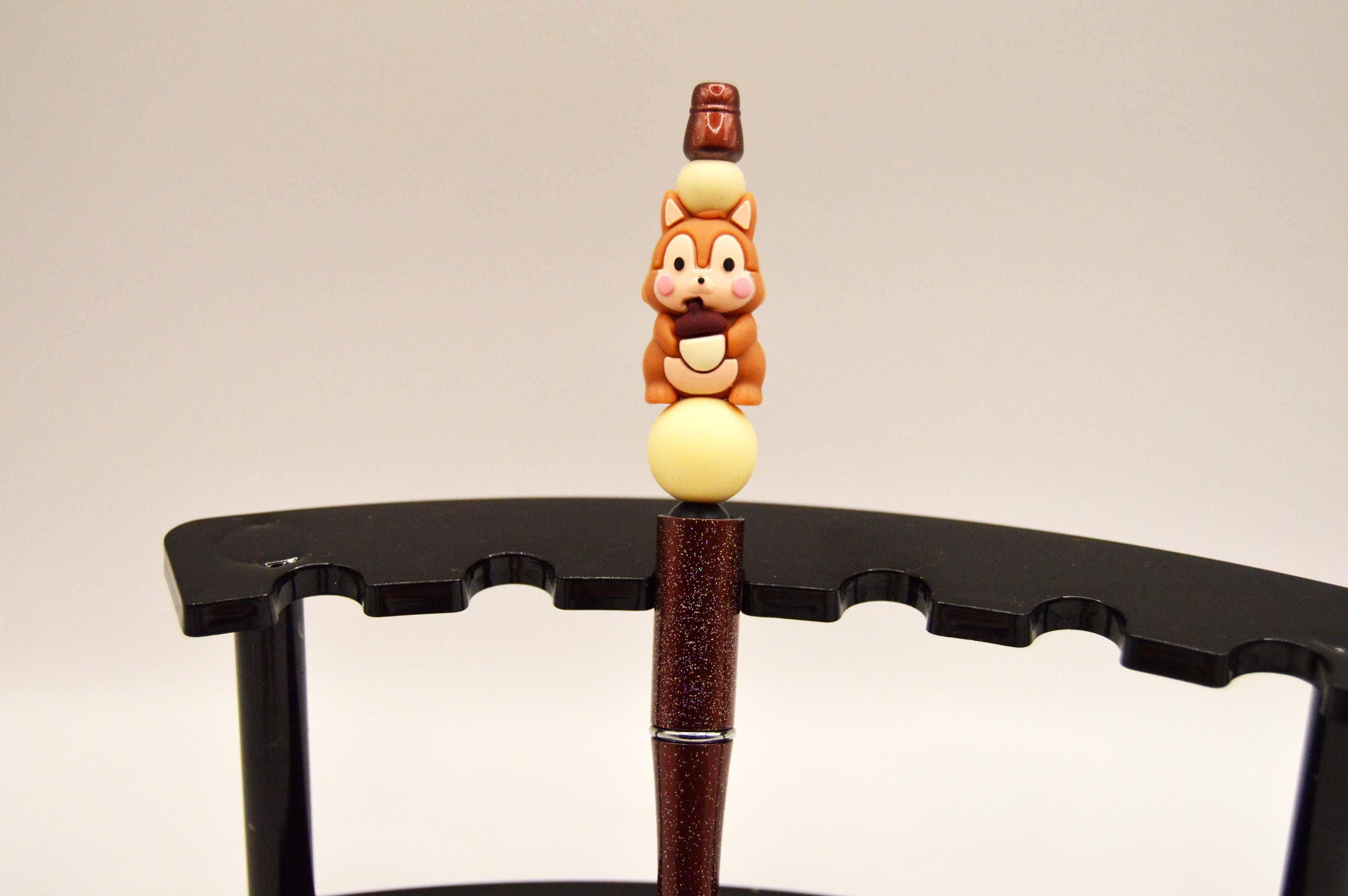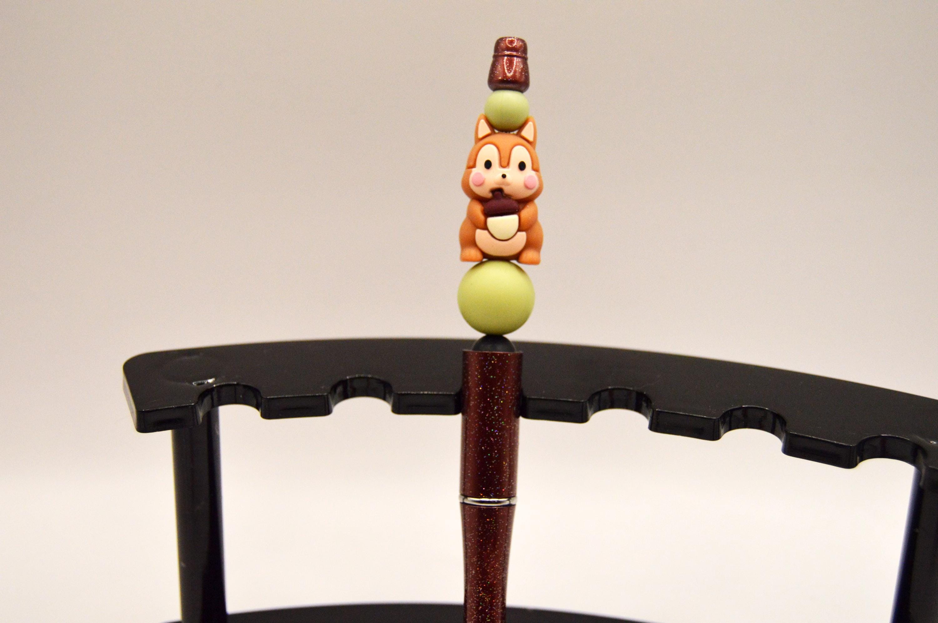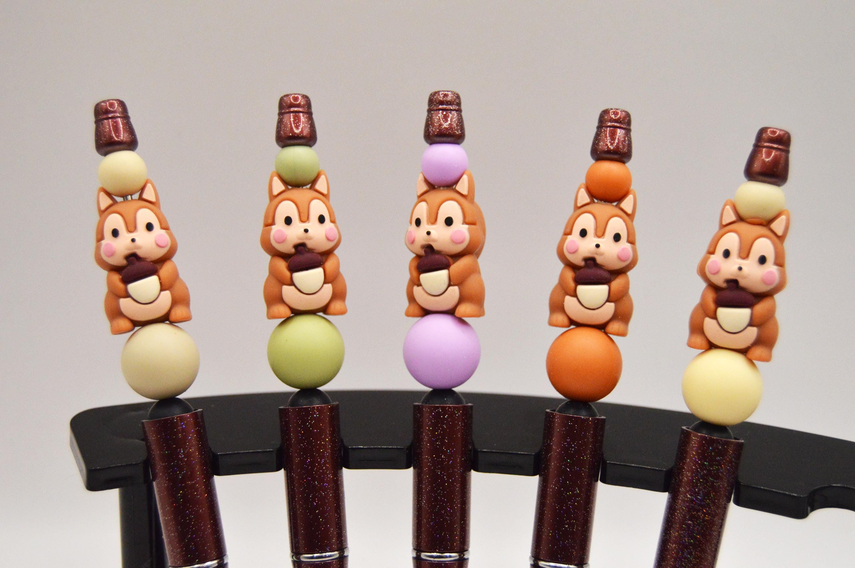Cute Squirrels holding little acorns on these beautiful brown glittery pens!