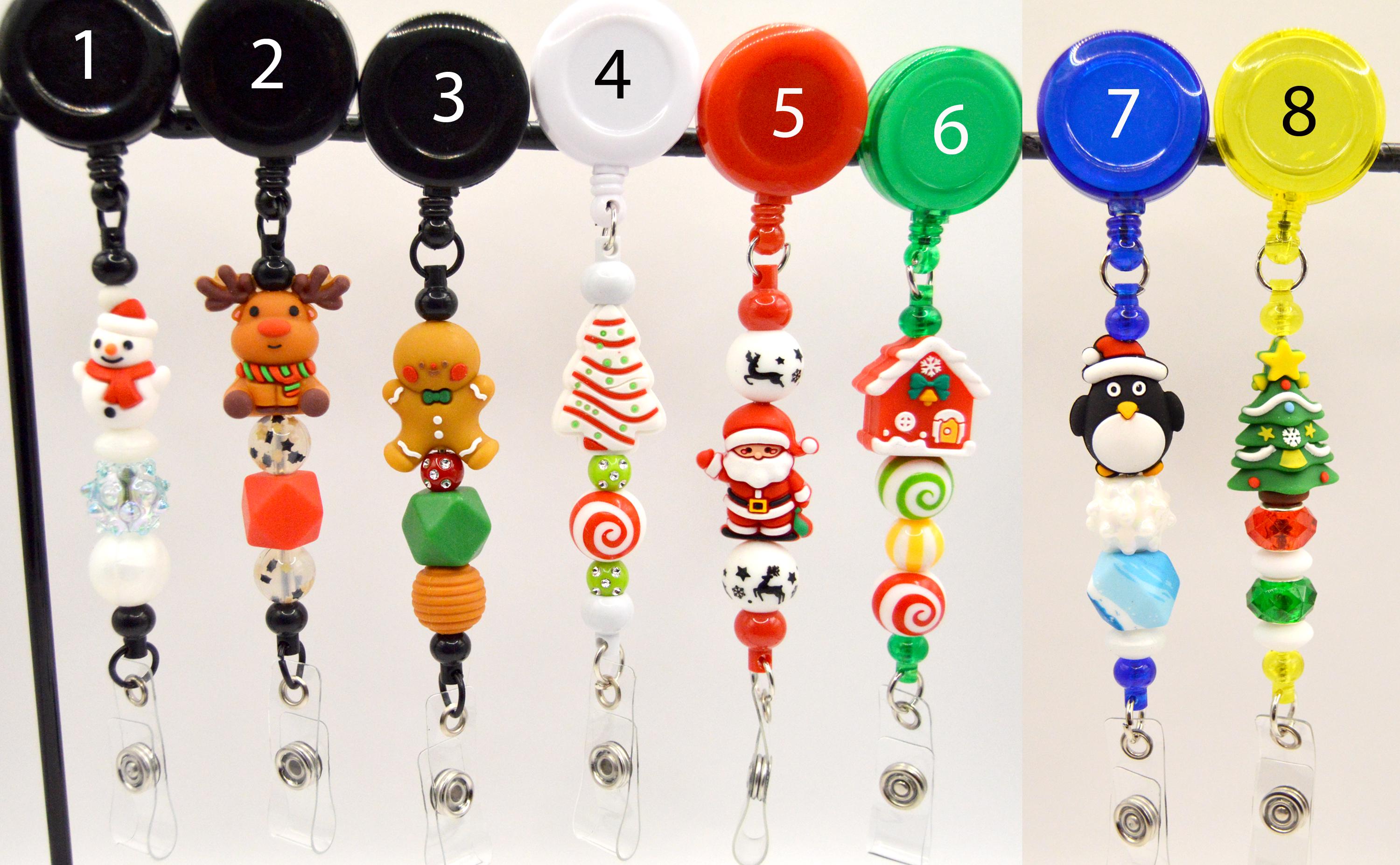 Choose from eight different whimsy and delightful Christmas/Holiday reel badge holders!