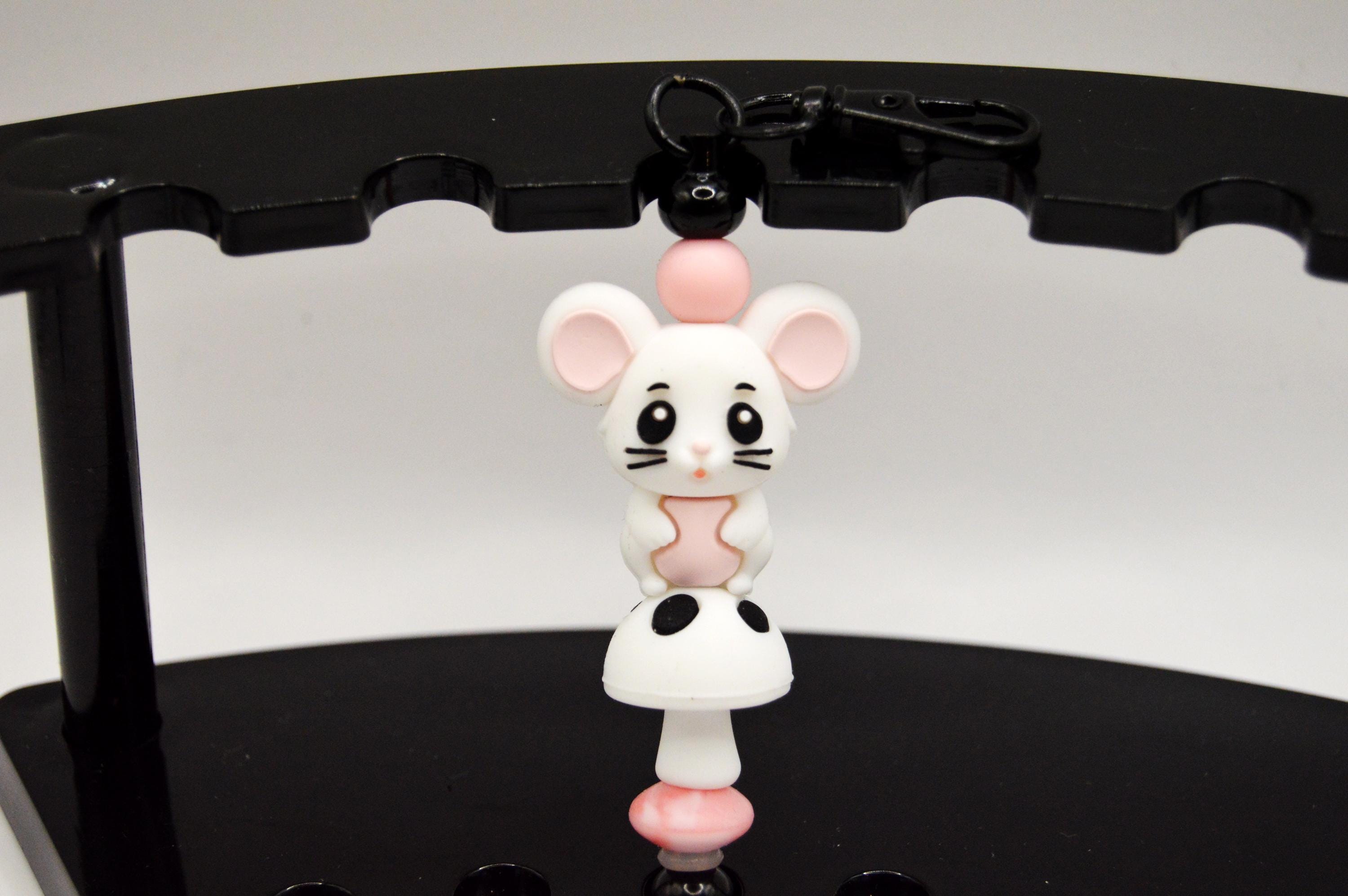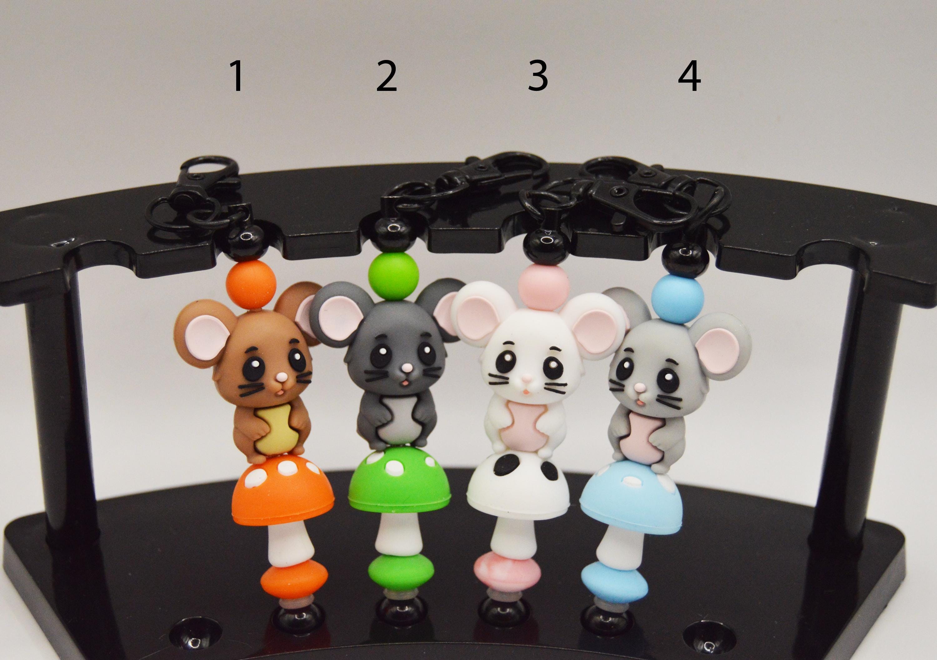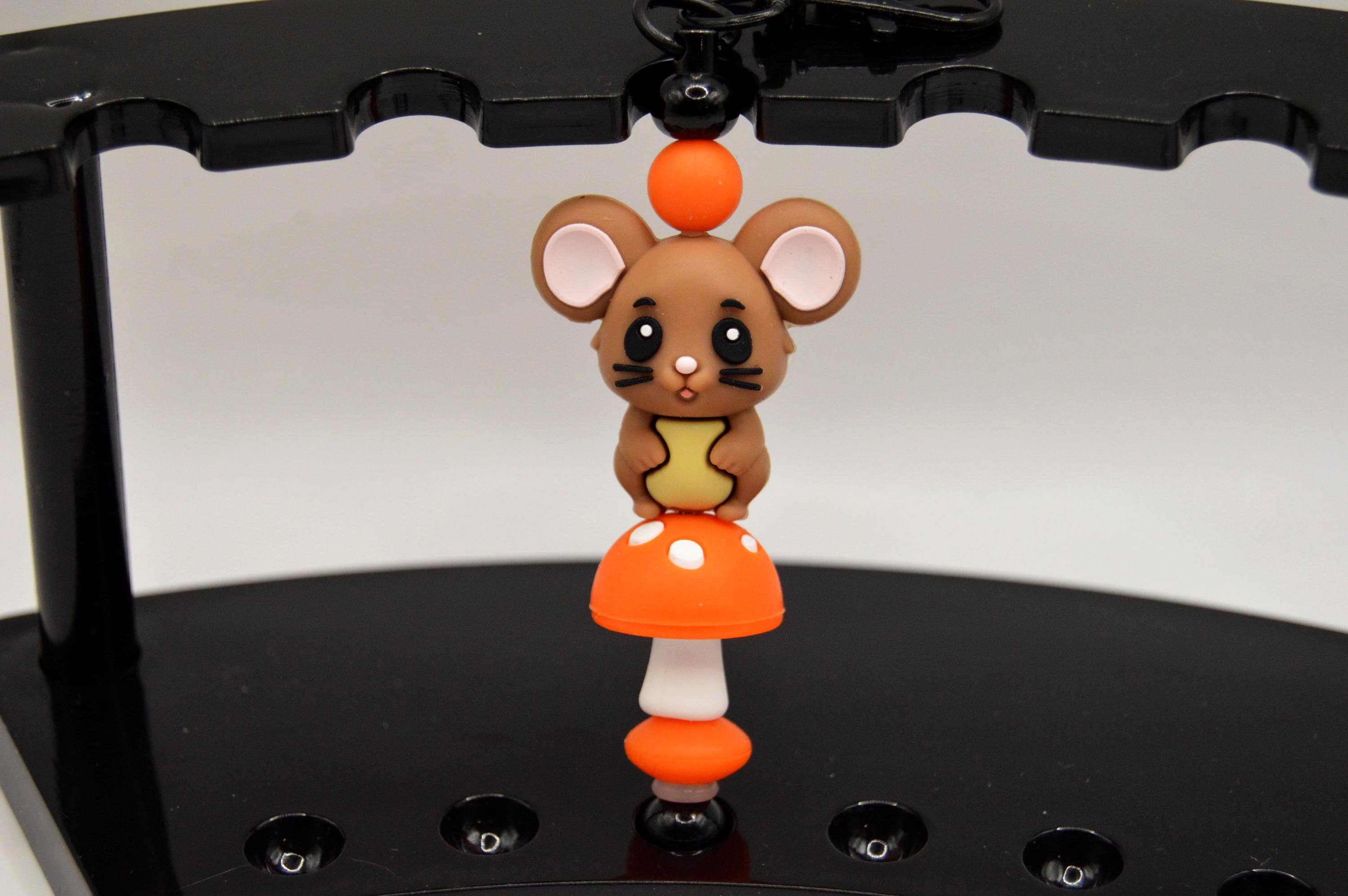 I just love these little mice! This time I put the mice with a cute little mushroom on a key chain for you!