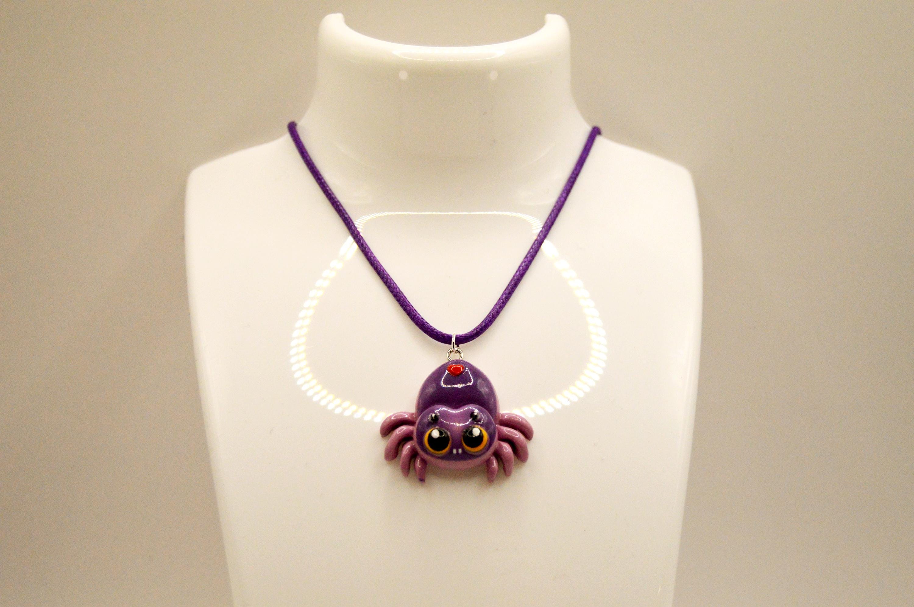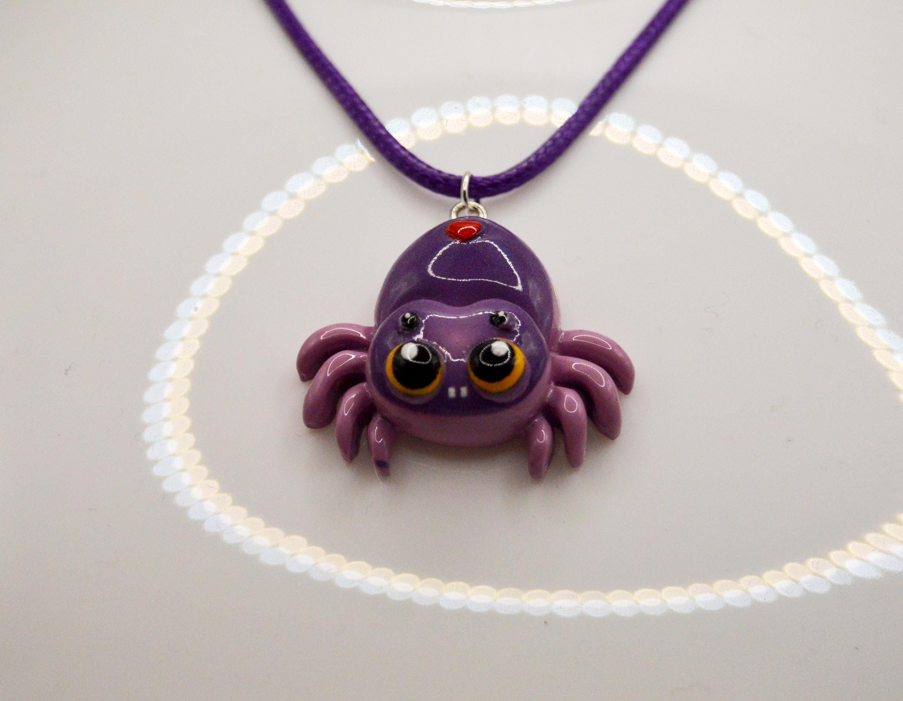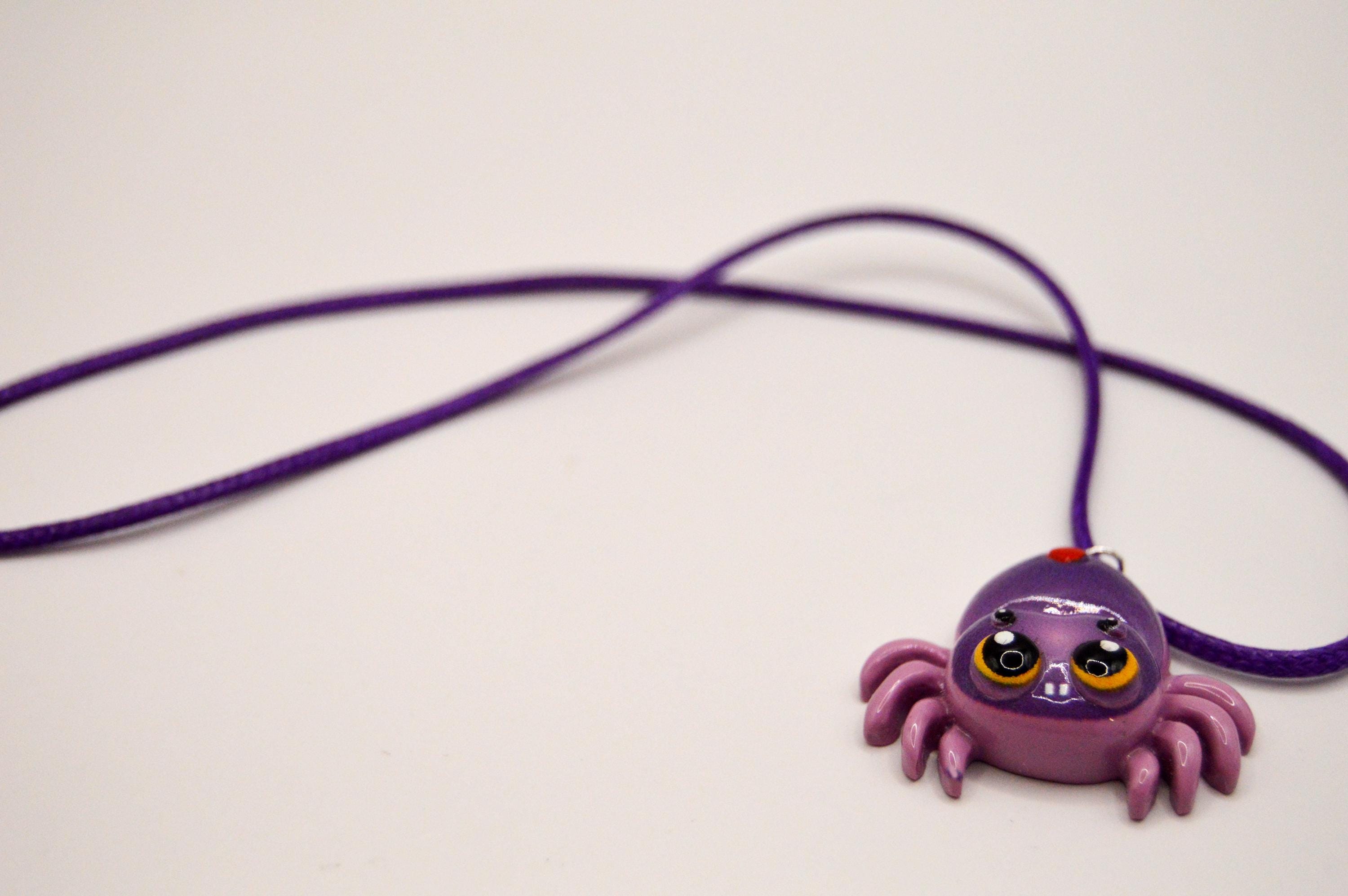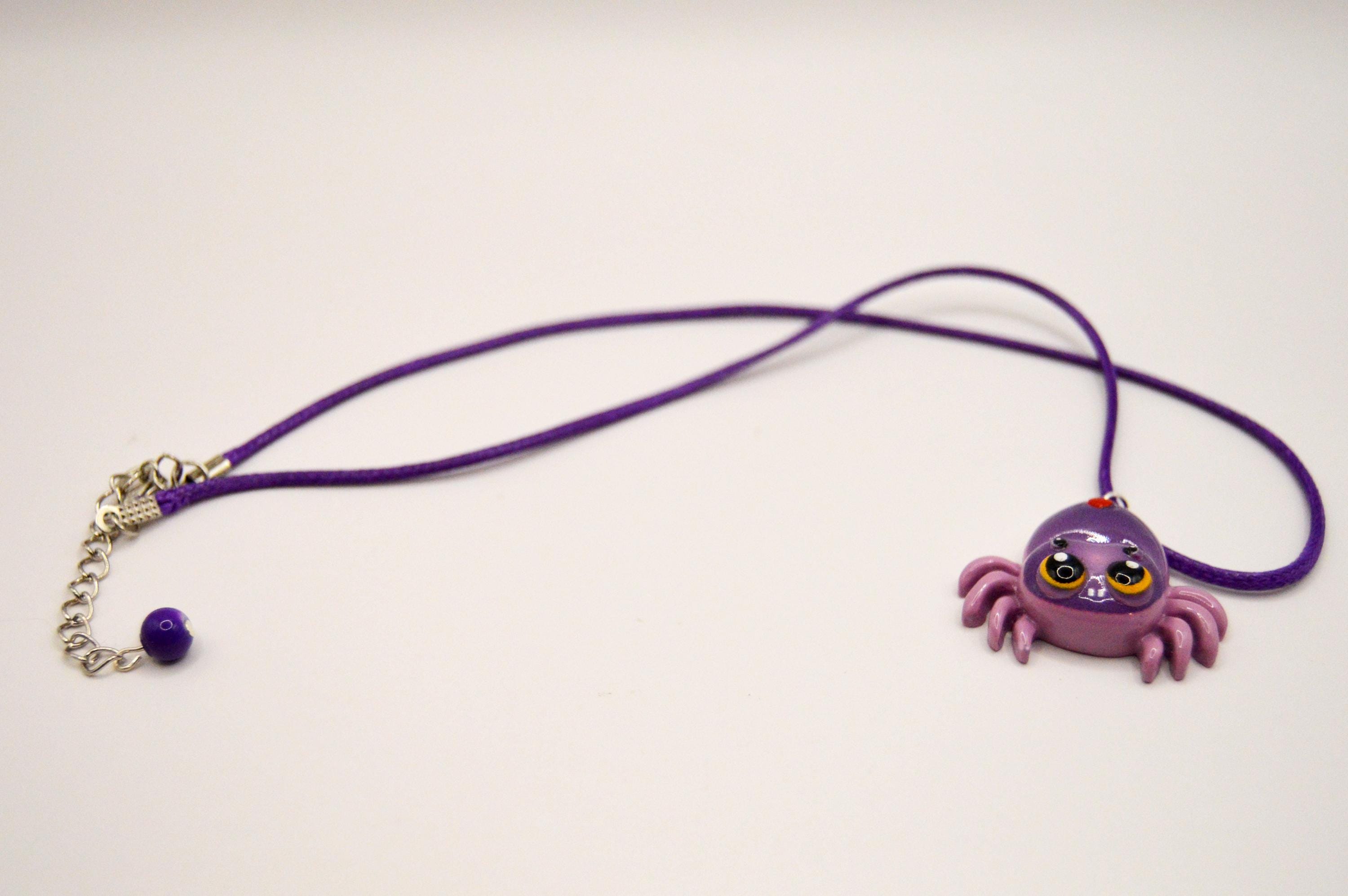 Sweet little purple spider on a purple satin cord necklace. I also made a set of earrings with this spider charm sold seperaly.