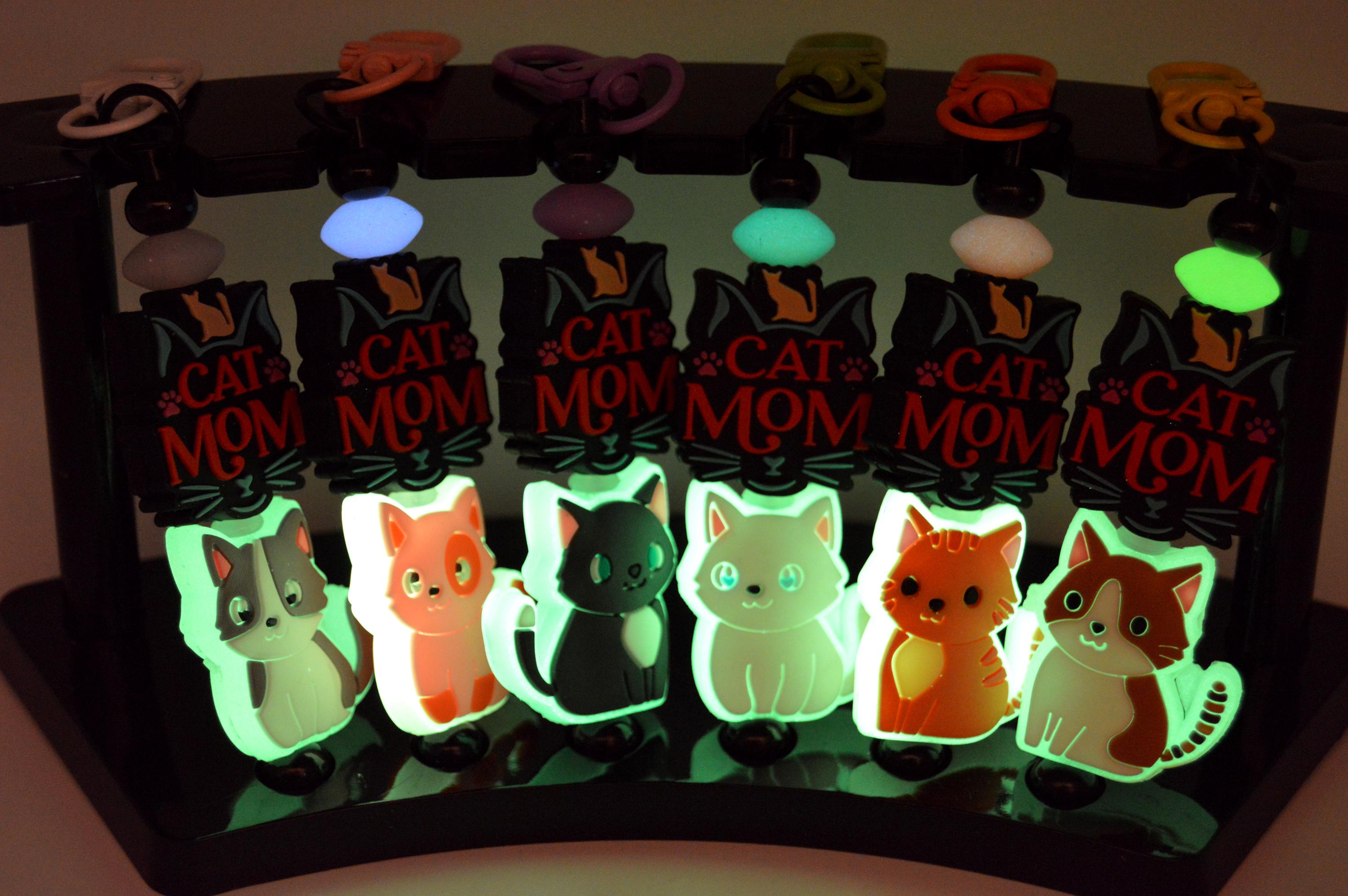 Cat mom, Key Chains with Glow in the dark cats, different colors to choose from.