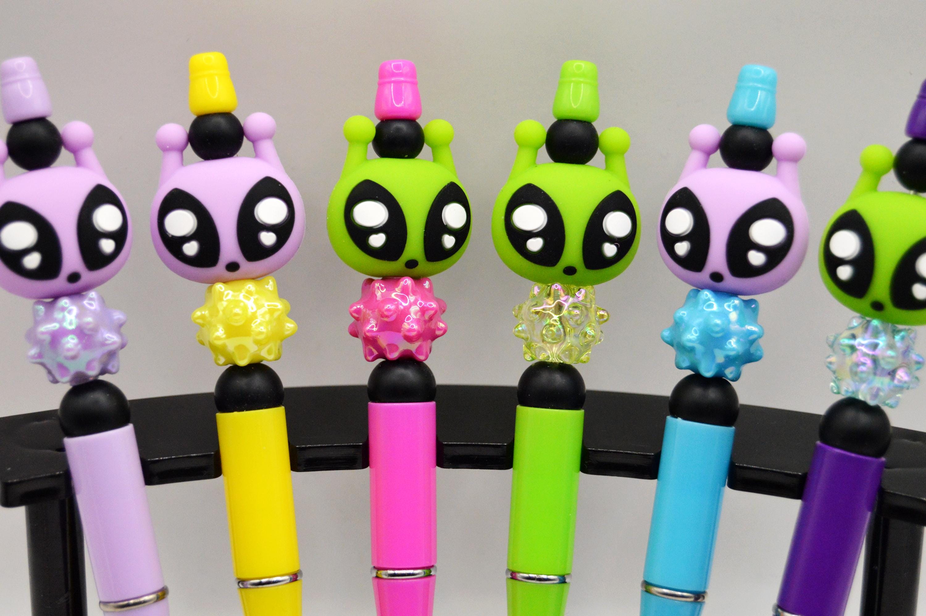 Bright and Colorful Alien head pens with refills.