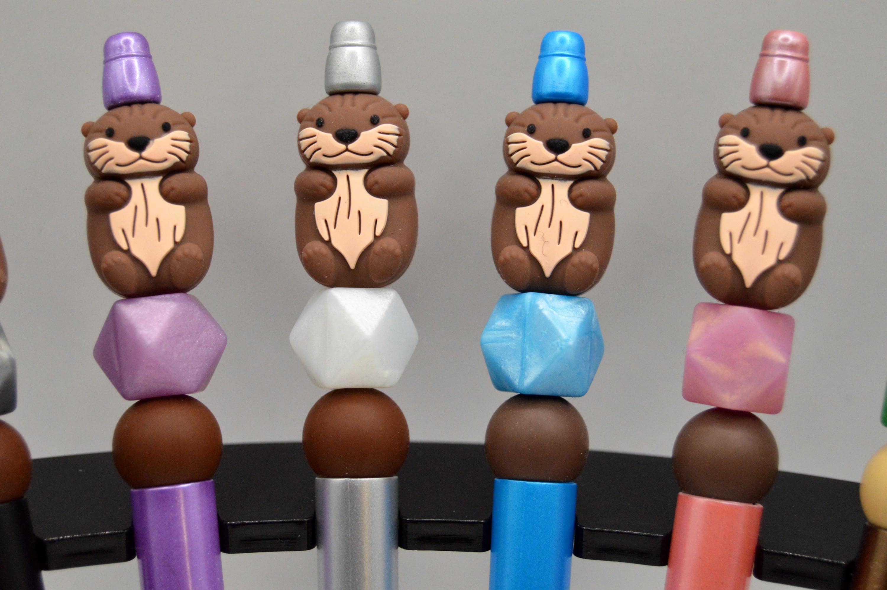 Cute Otter Pens with pearlescent silicone beads.