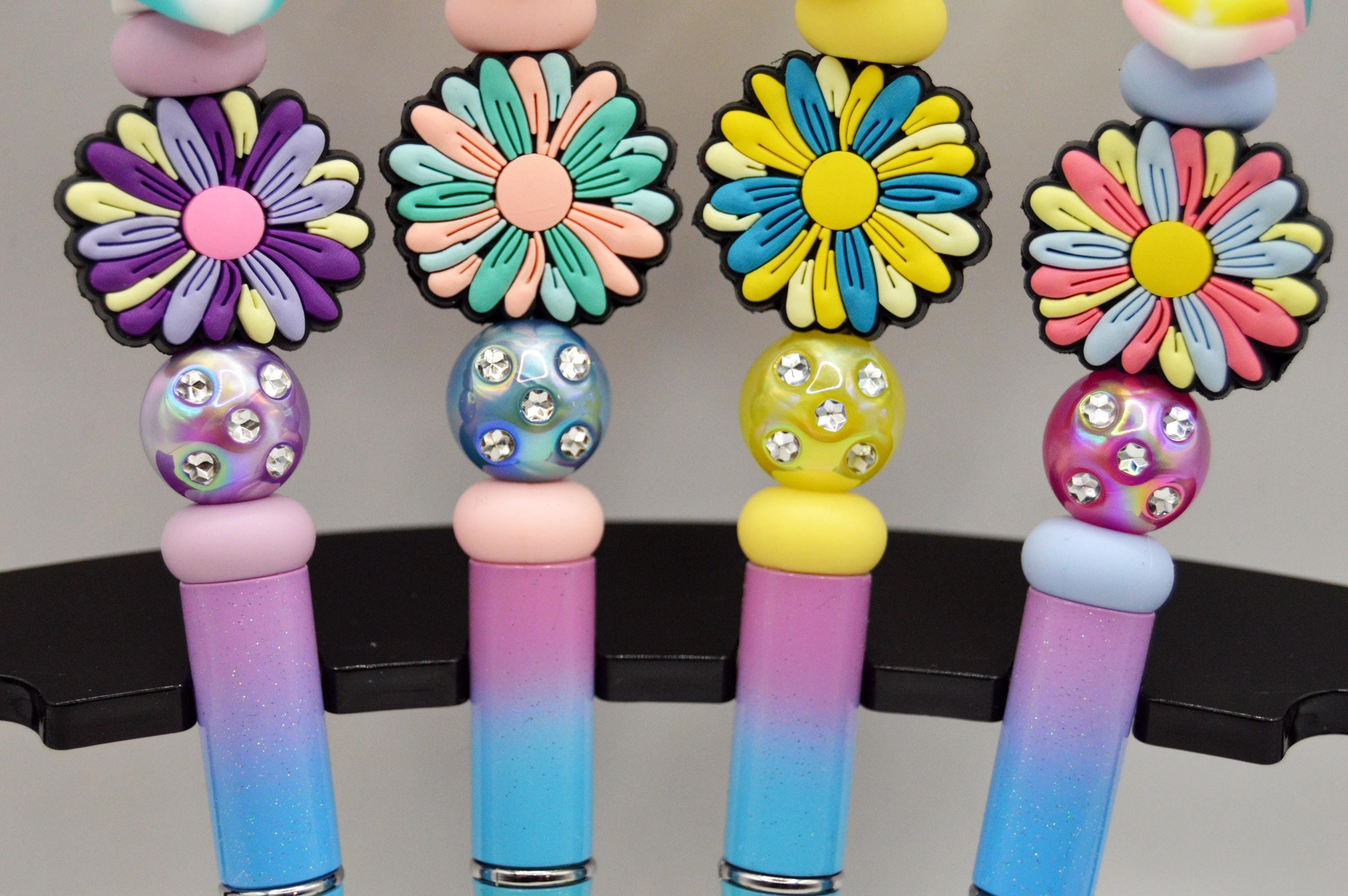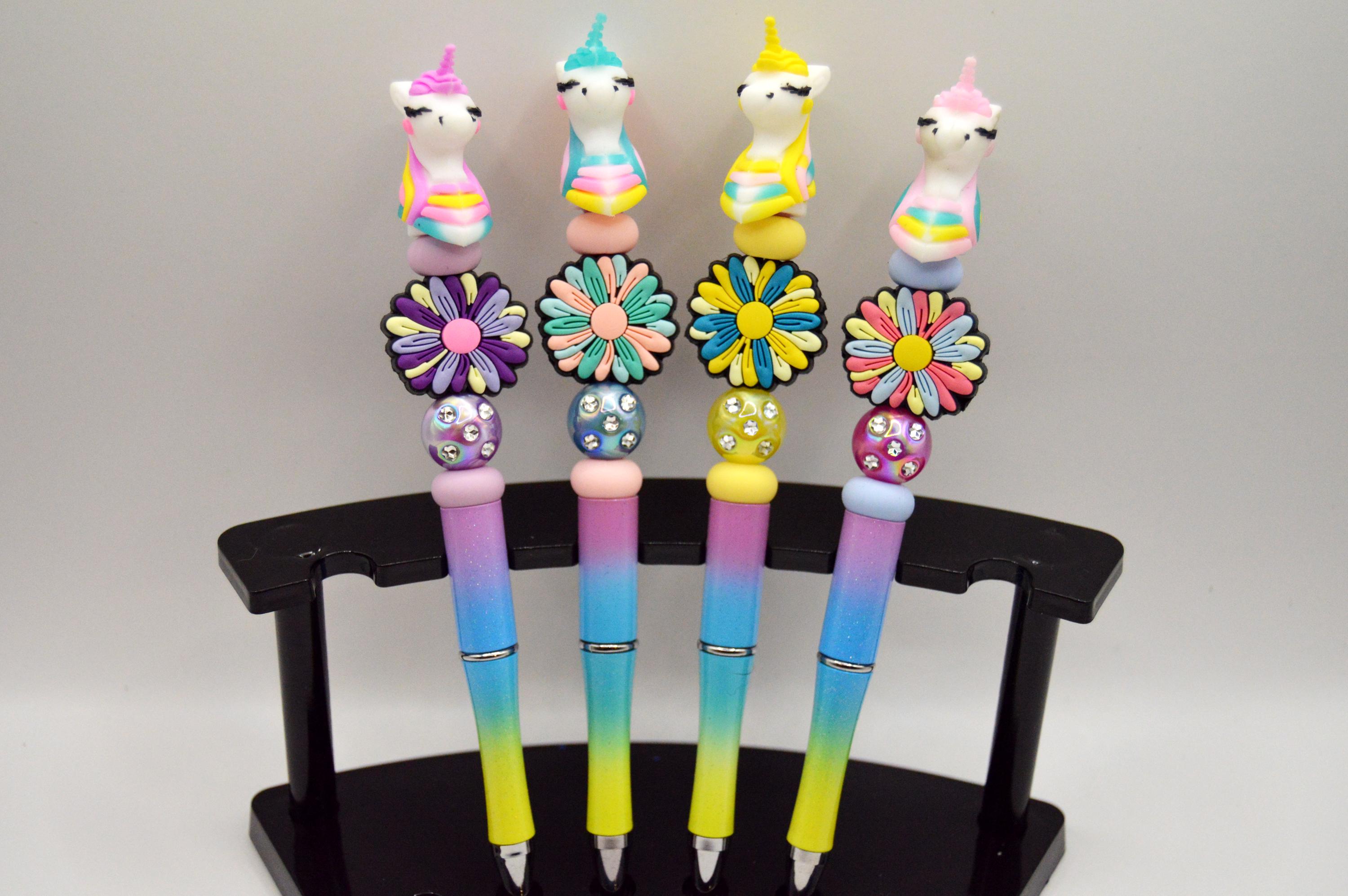 Pretty Unicorn pens with toppers, flowers and rhinestones beads.
