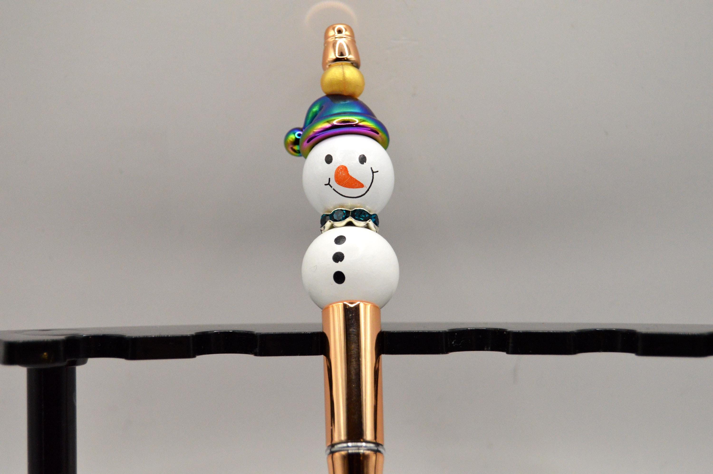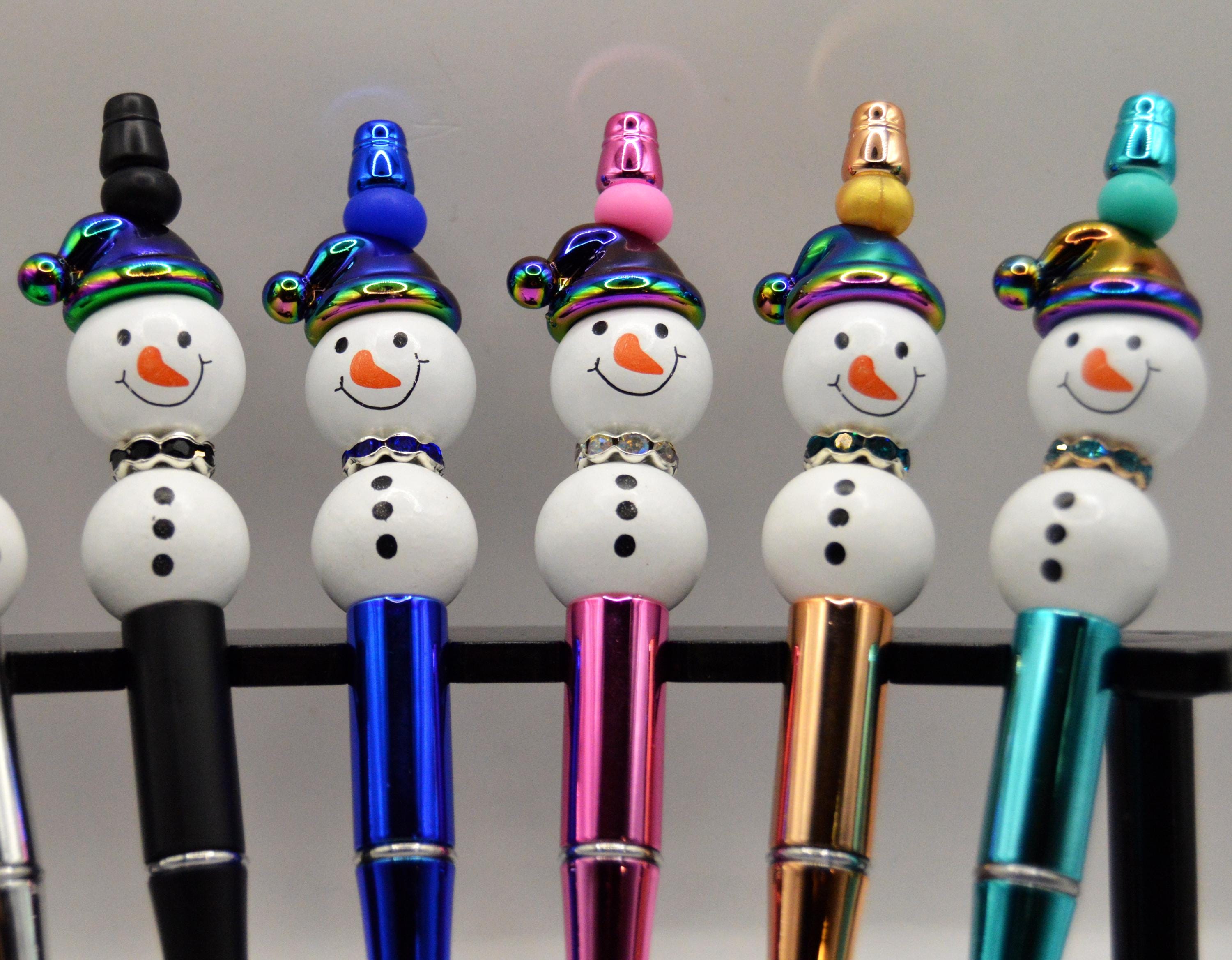 Beautiful metallic snowman pens with cute electroplated beanies.