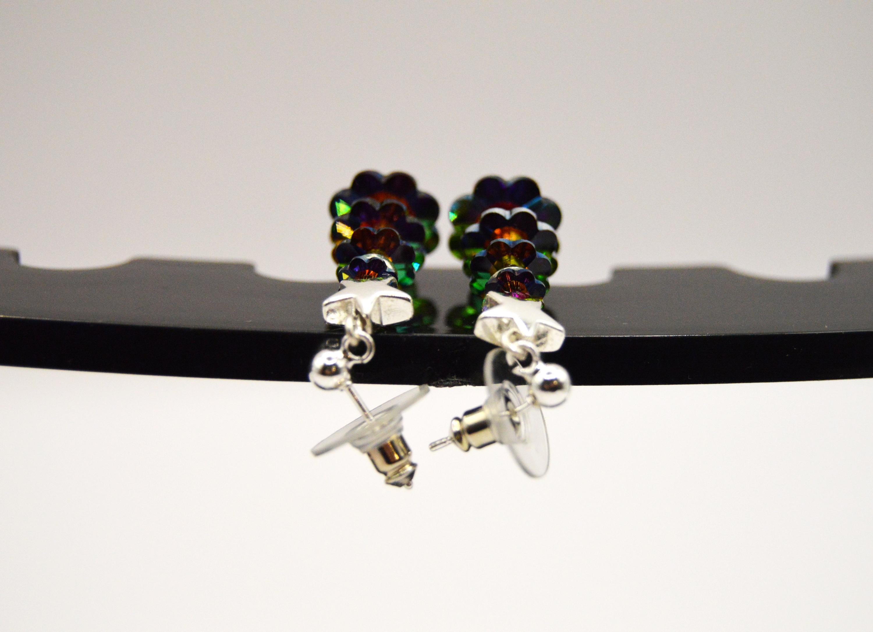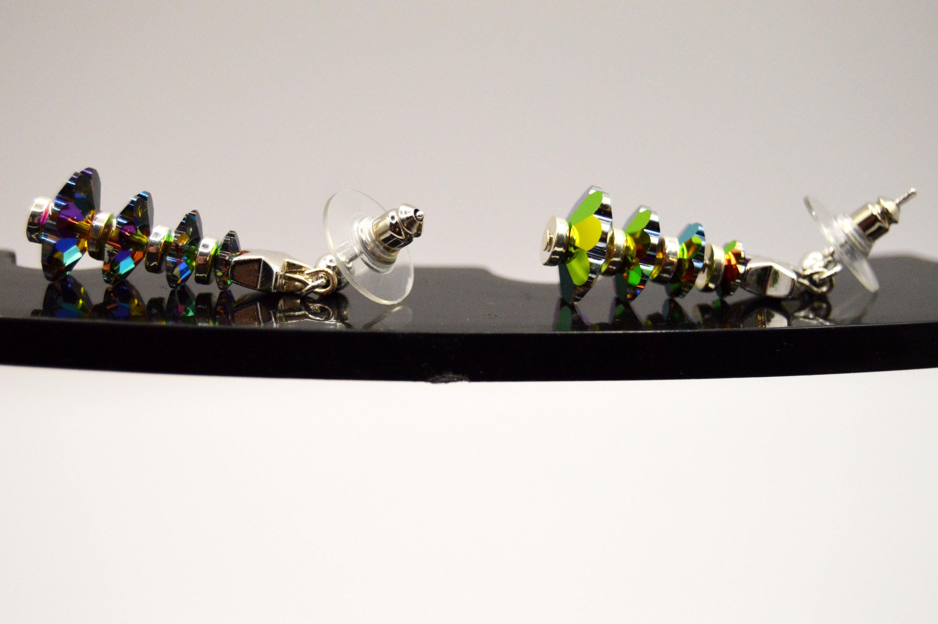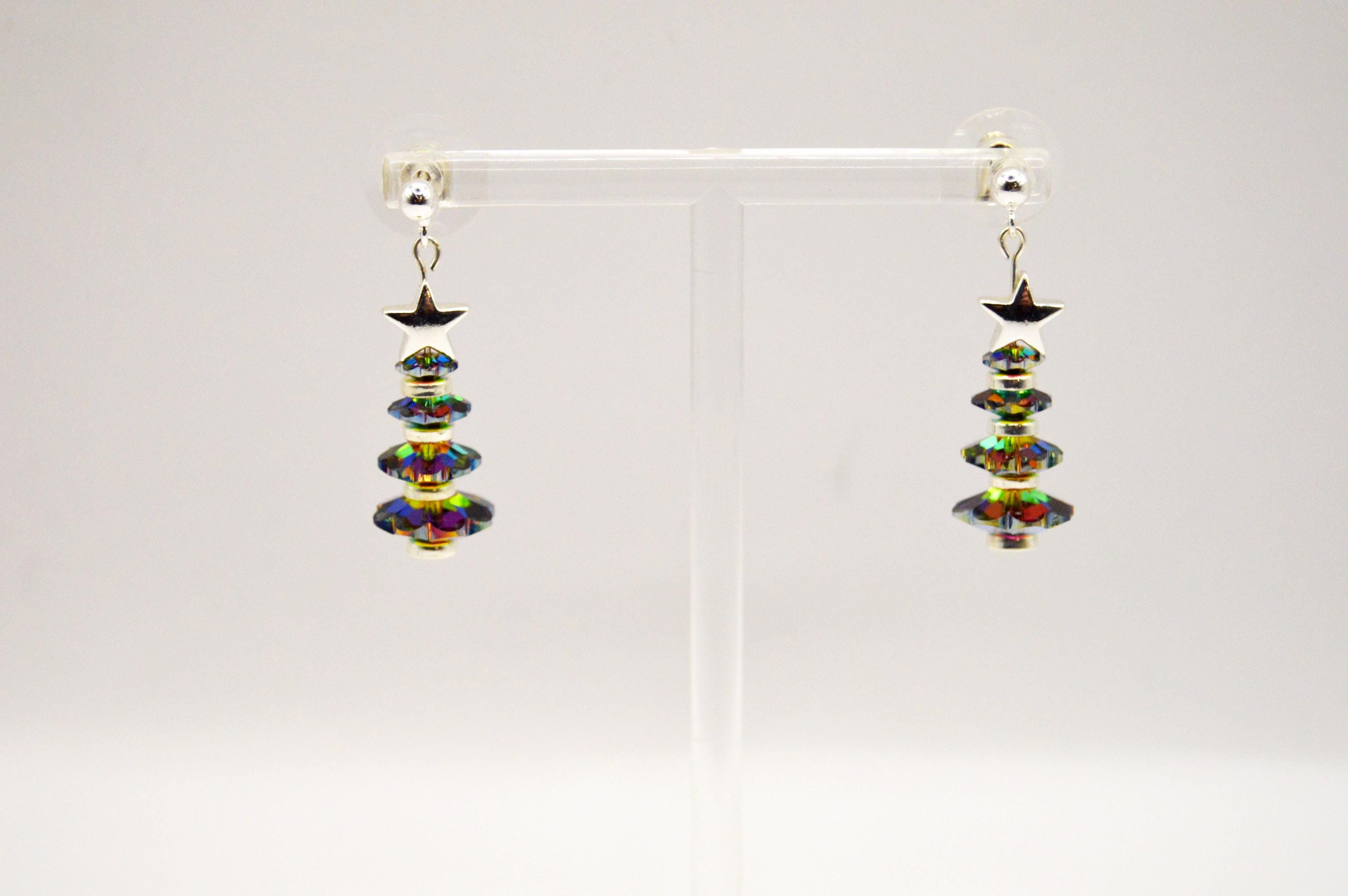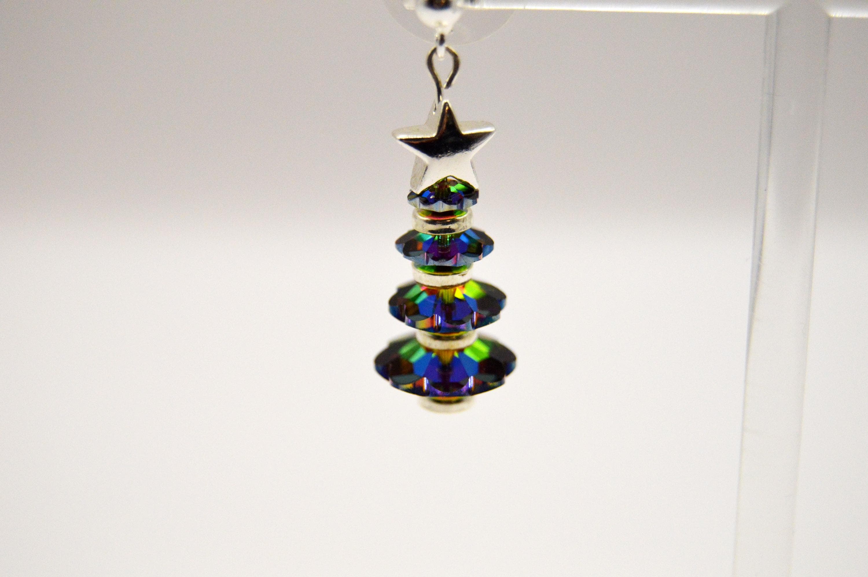 Beautiful stacked swarovski crystals form these beautiful eye catching, Christmas tree earrings.