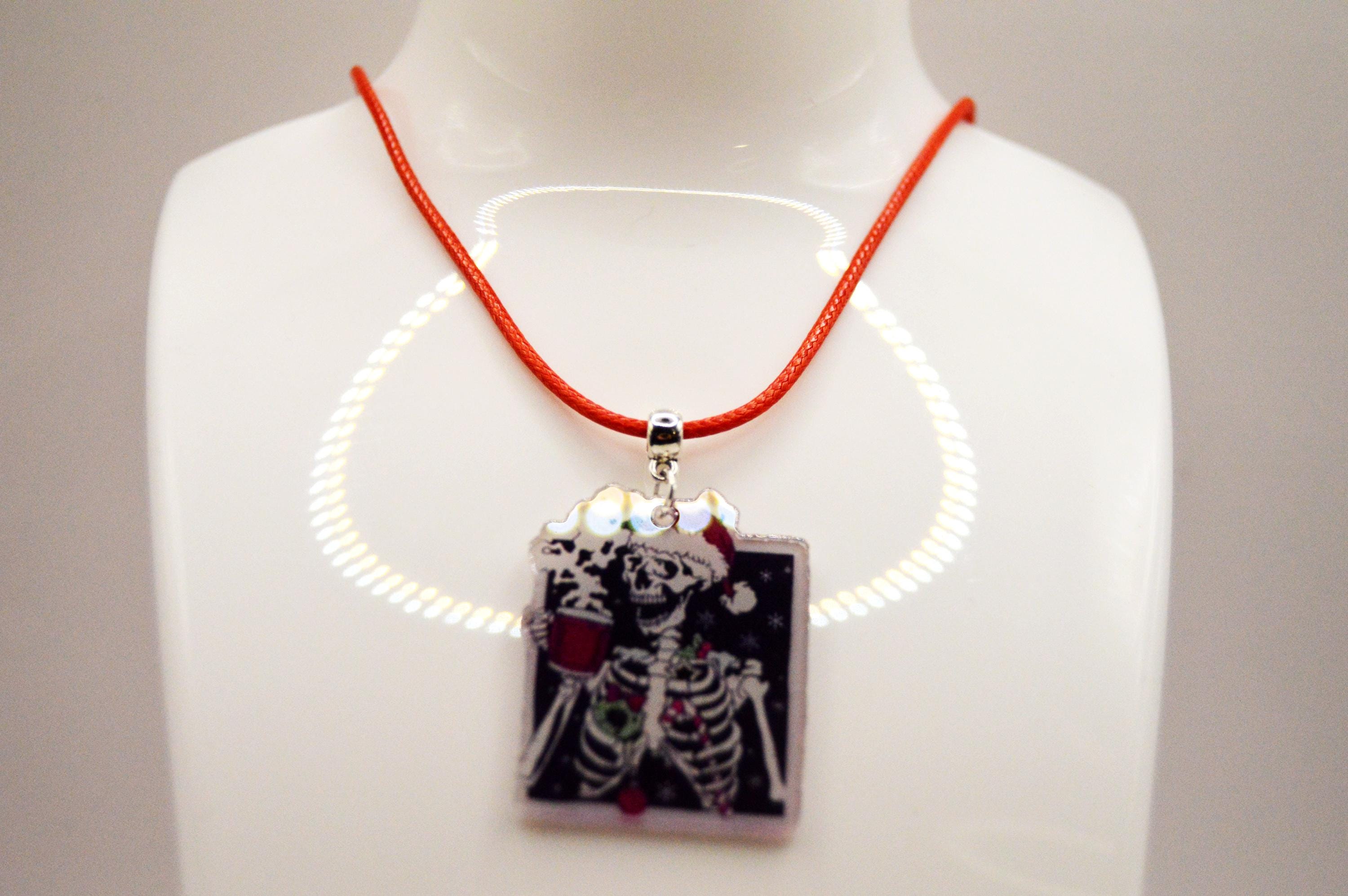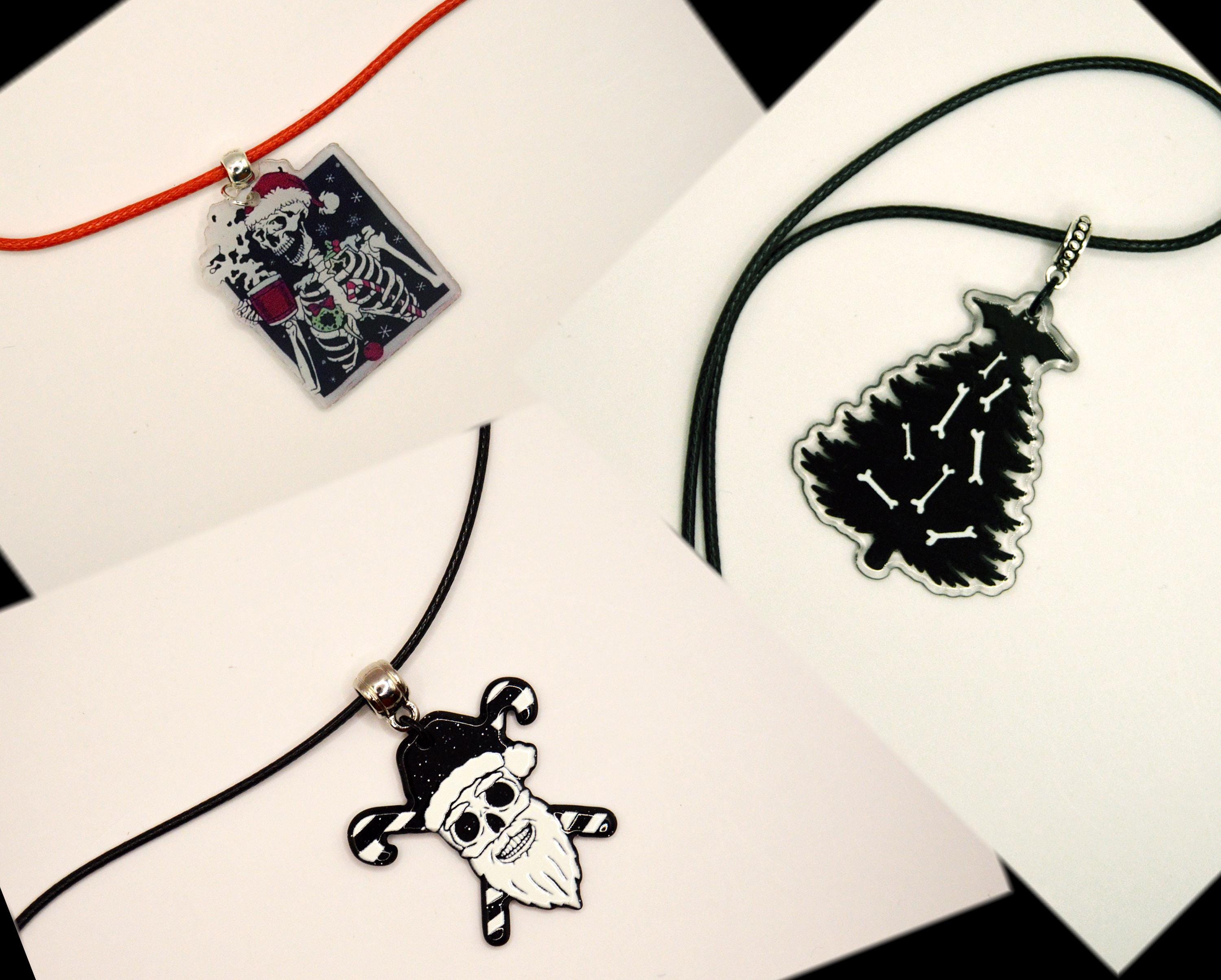 Dark and delightful Holiday necklaces. Skeletons and bones.