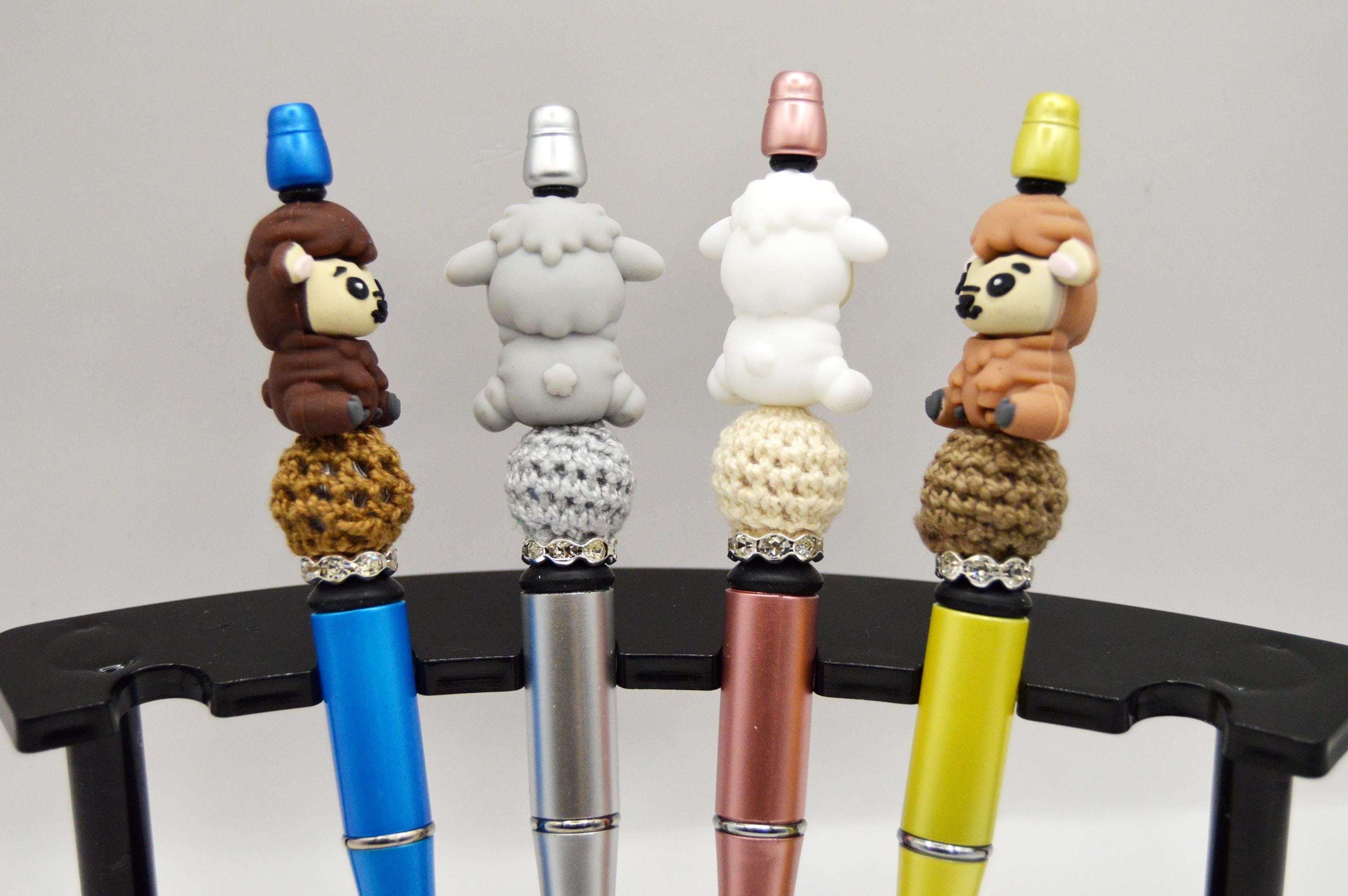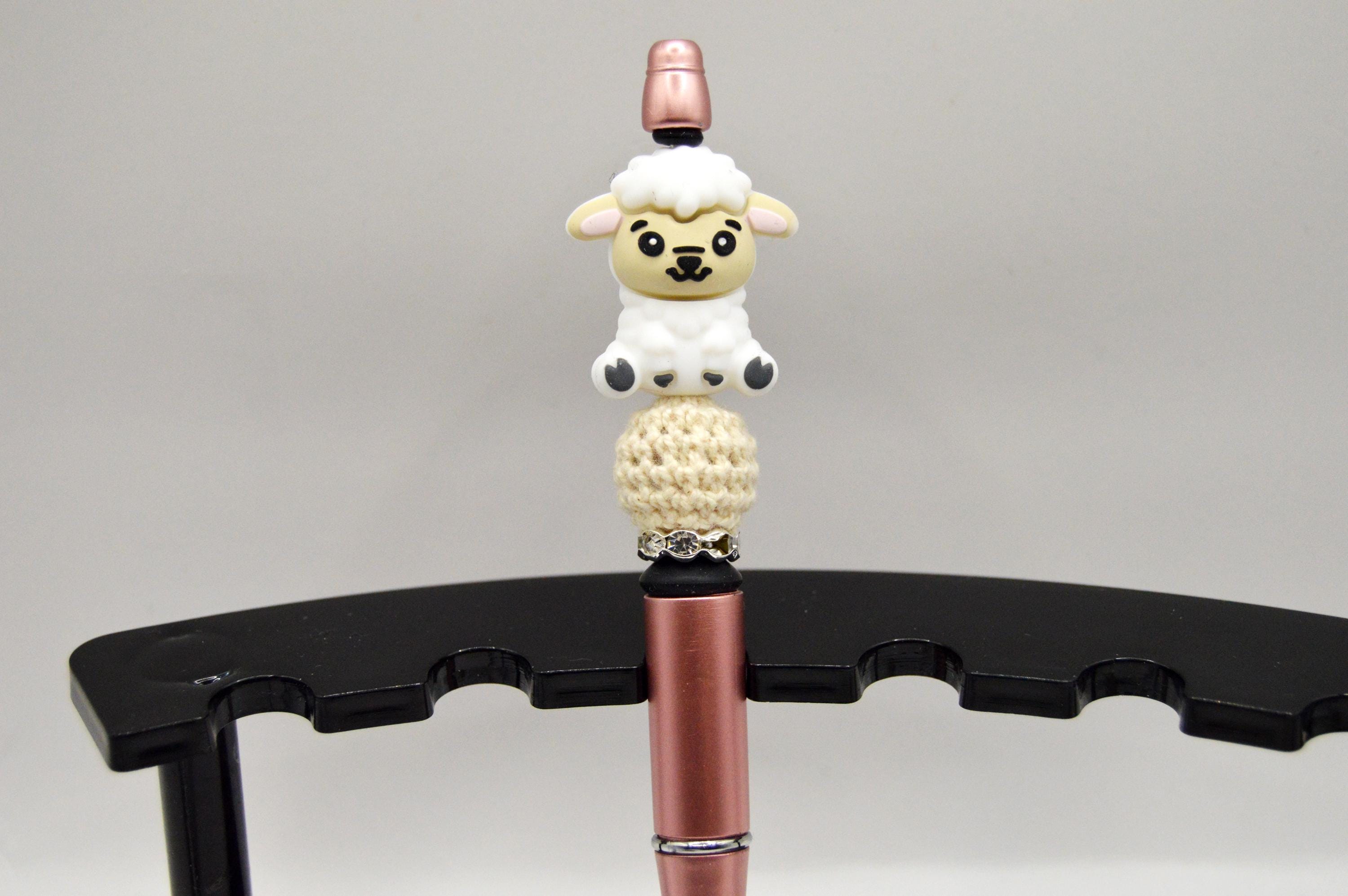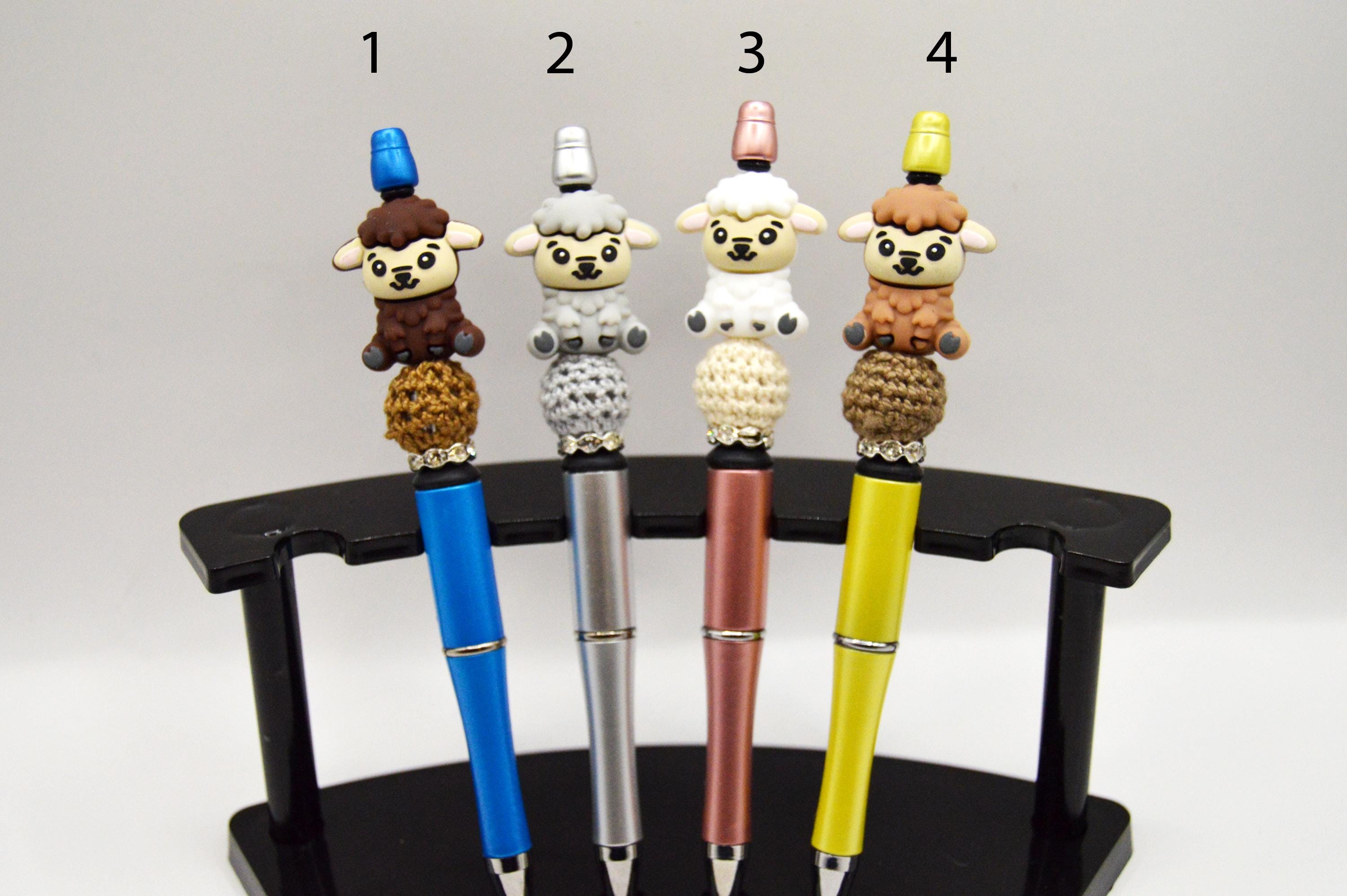Delicate little sheep stand on a wool yarn ball in these whimsical pens!