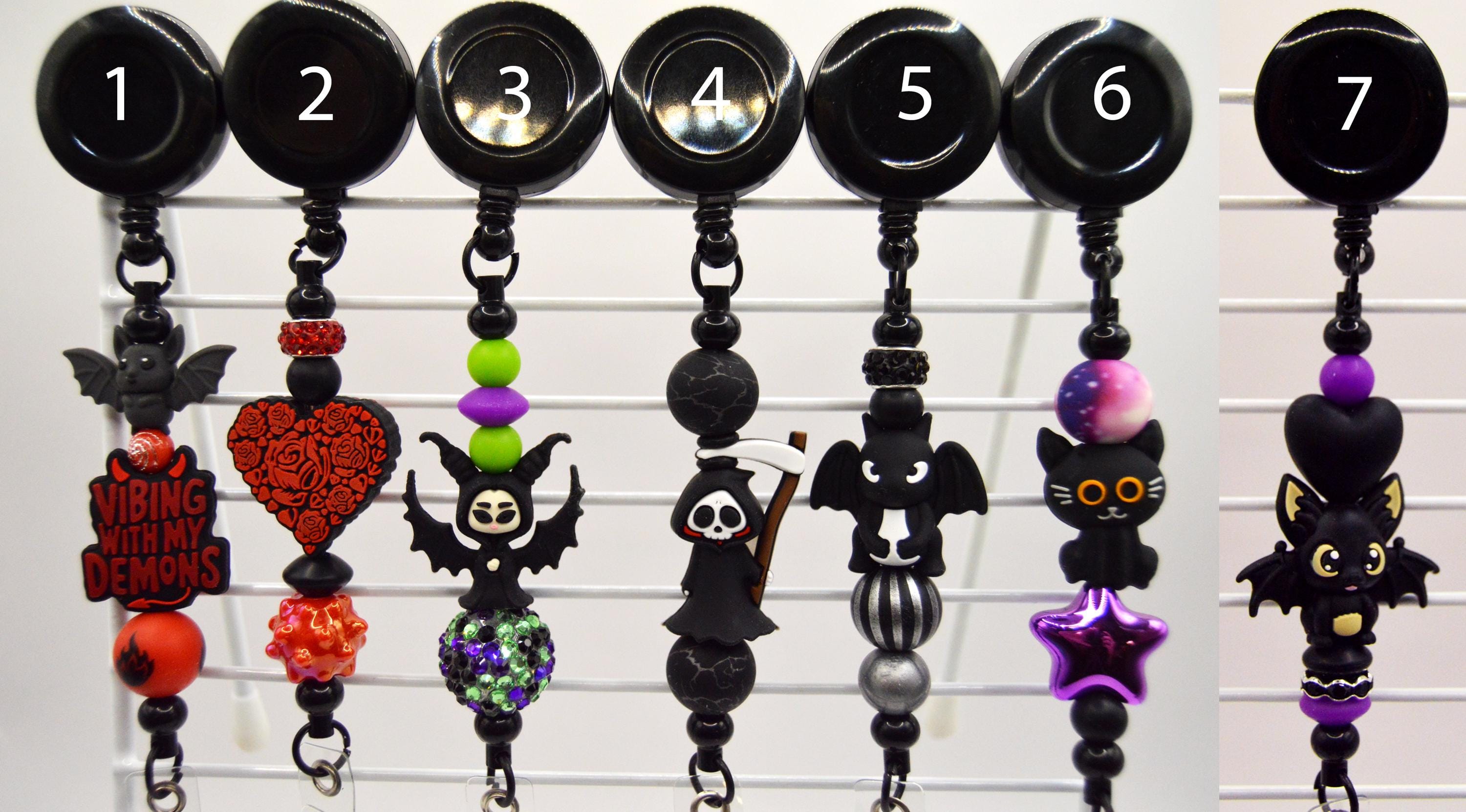 Gothic Reel Badge Holder. I have gathered my darkest and cutest little friends in this listing.