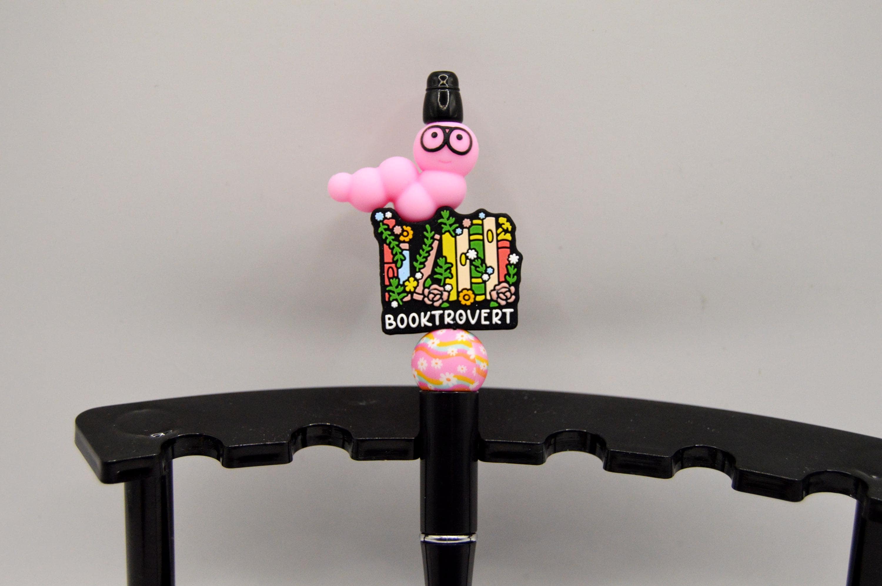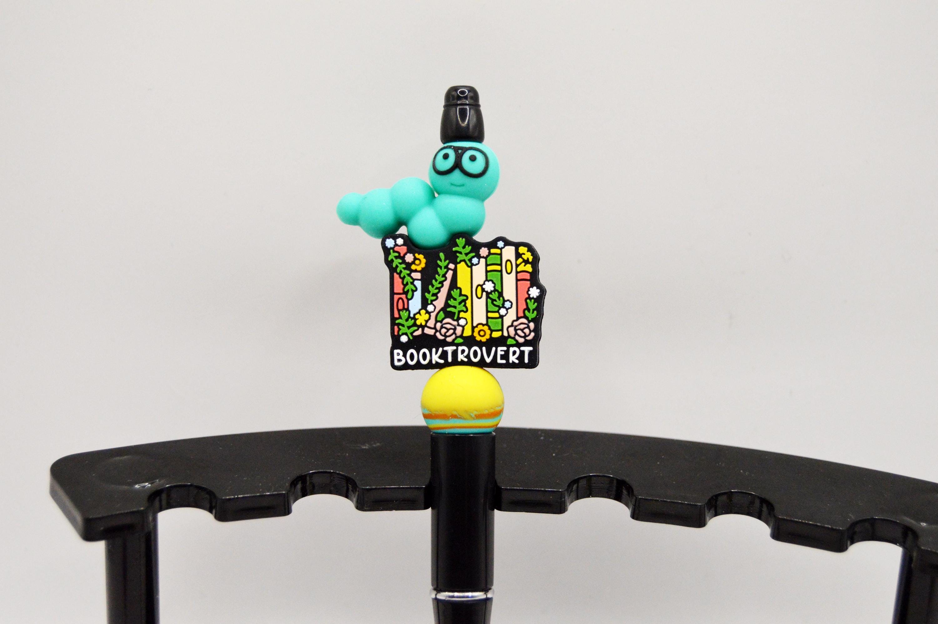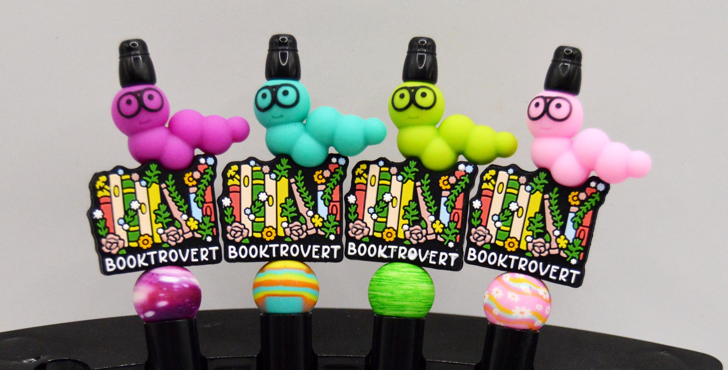 These cute little bookworms fit perfectly on top of a Booktrovert sign on these pens!