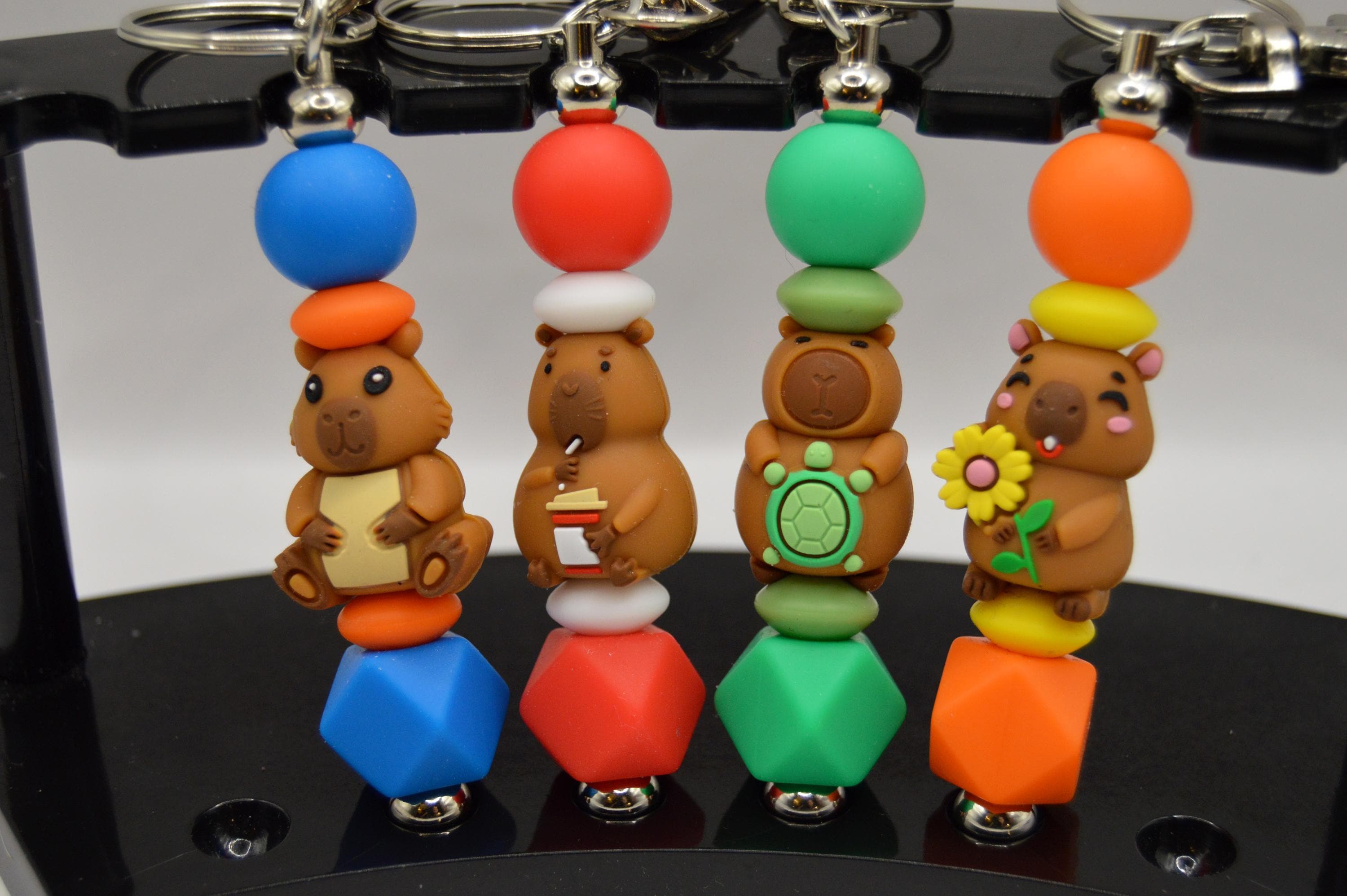 Capybara key chains, colorful, boba tea, sunflower, turtle