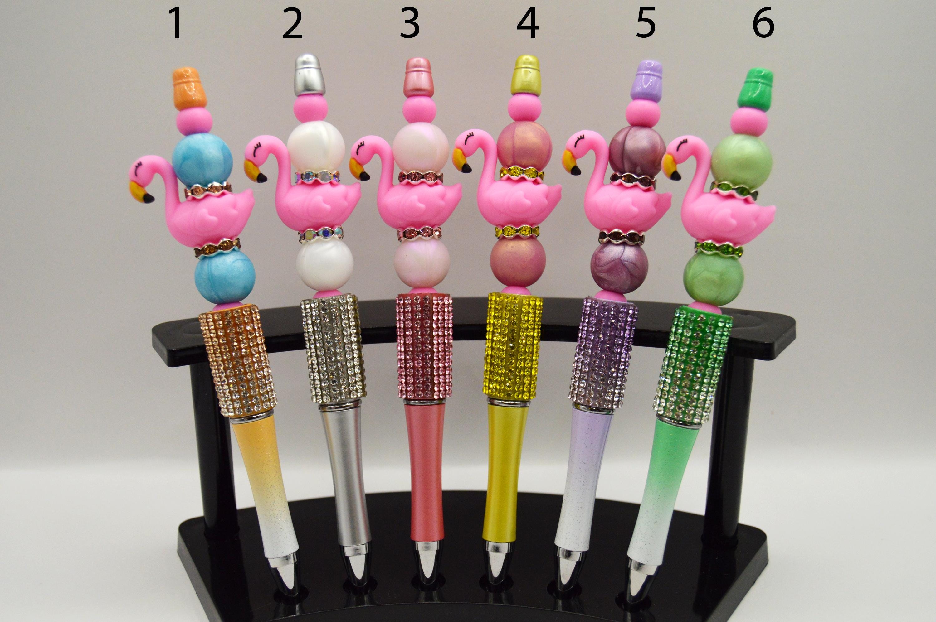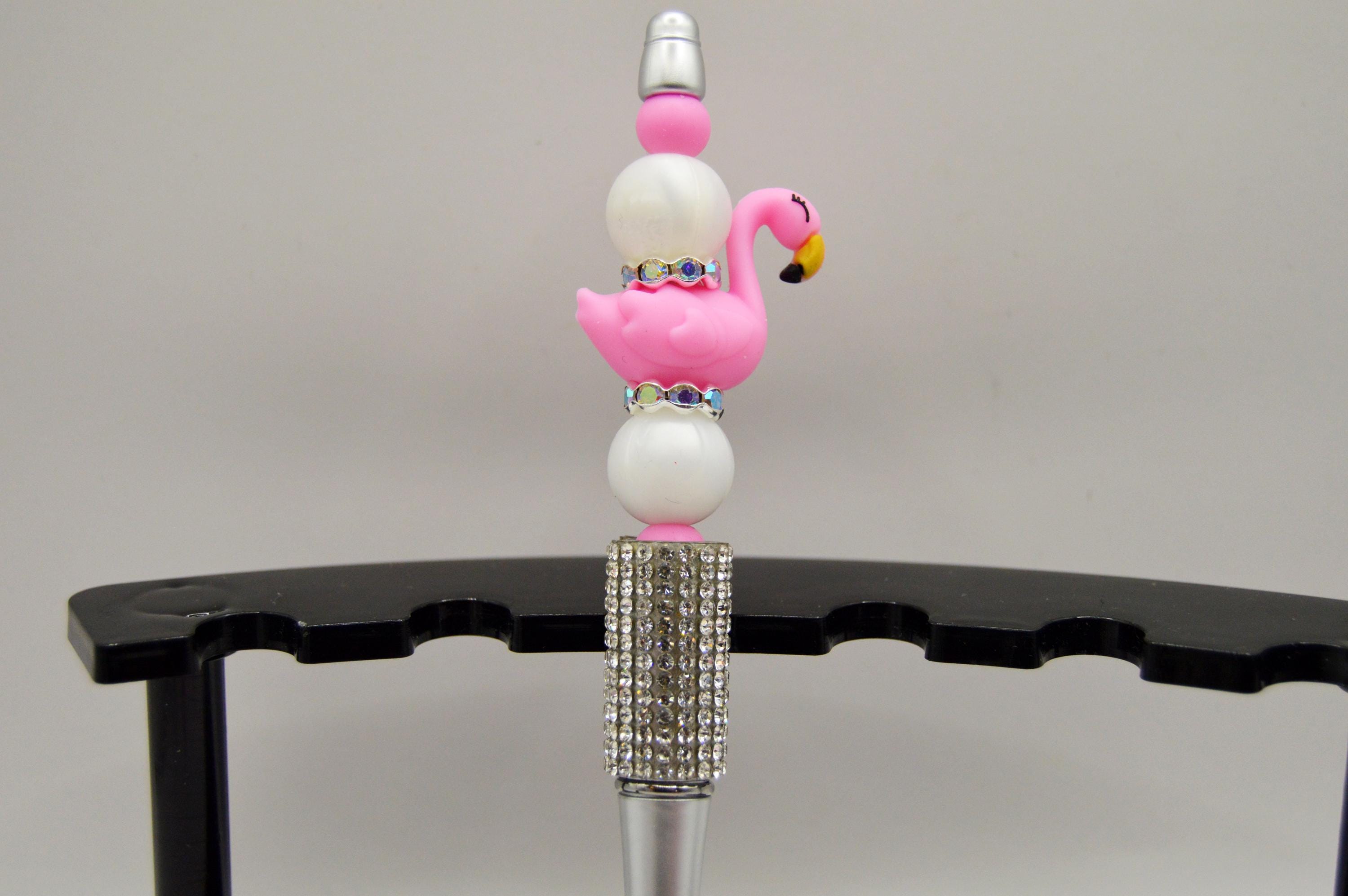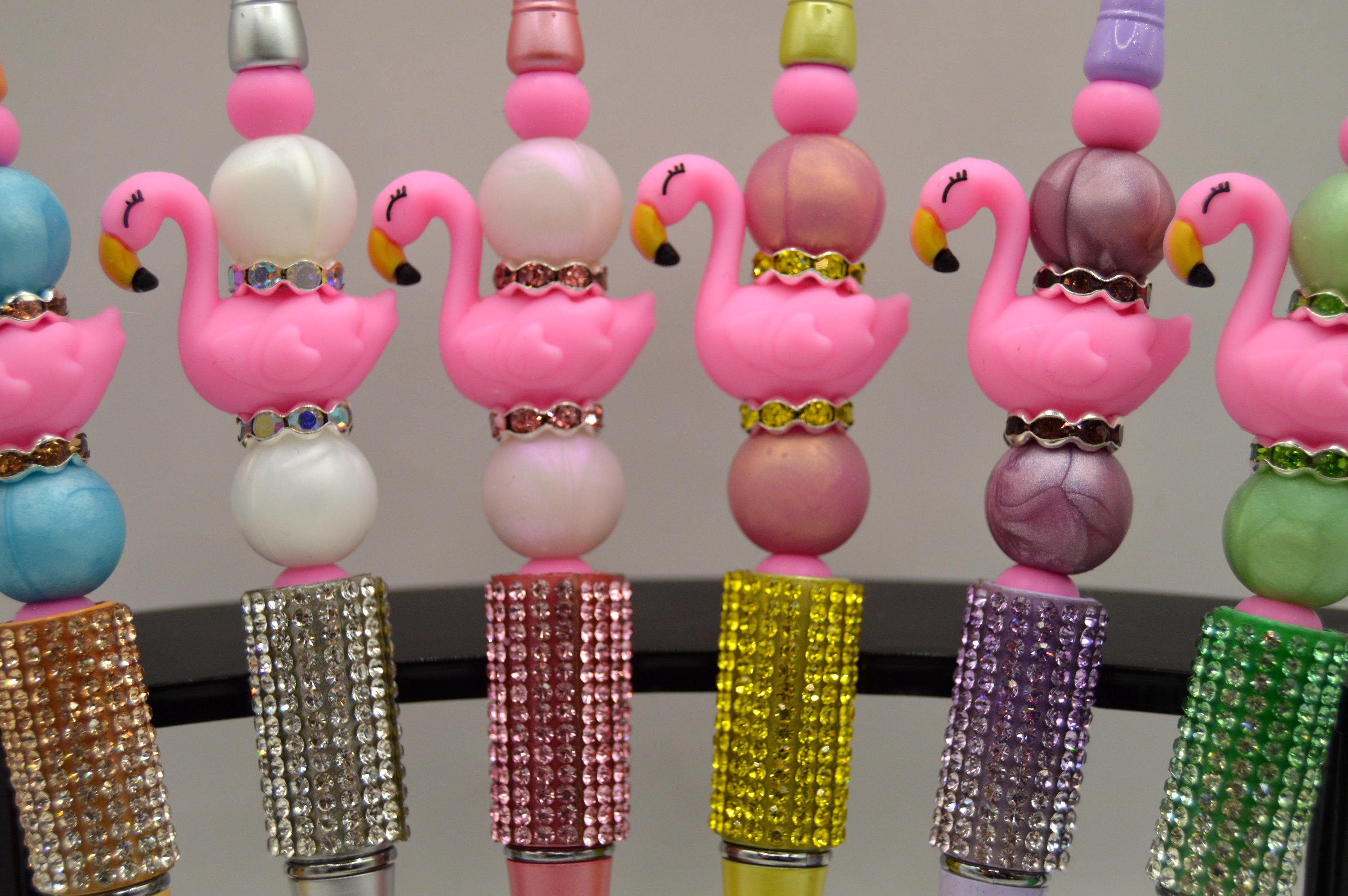 Beautiful Flamingo Pens with Rhinestones and pearlescent silicone beads.
