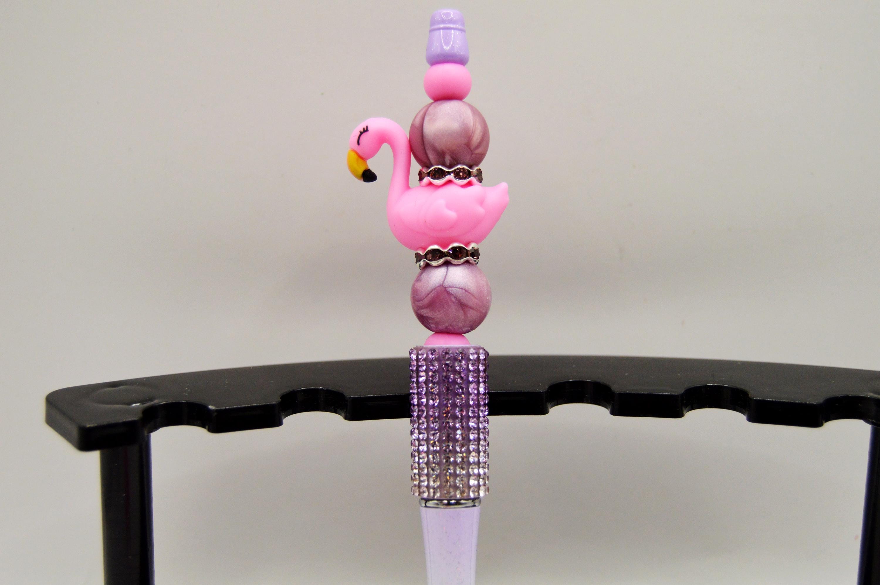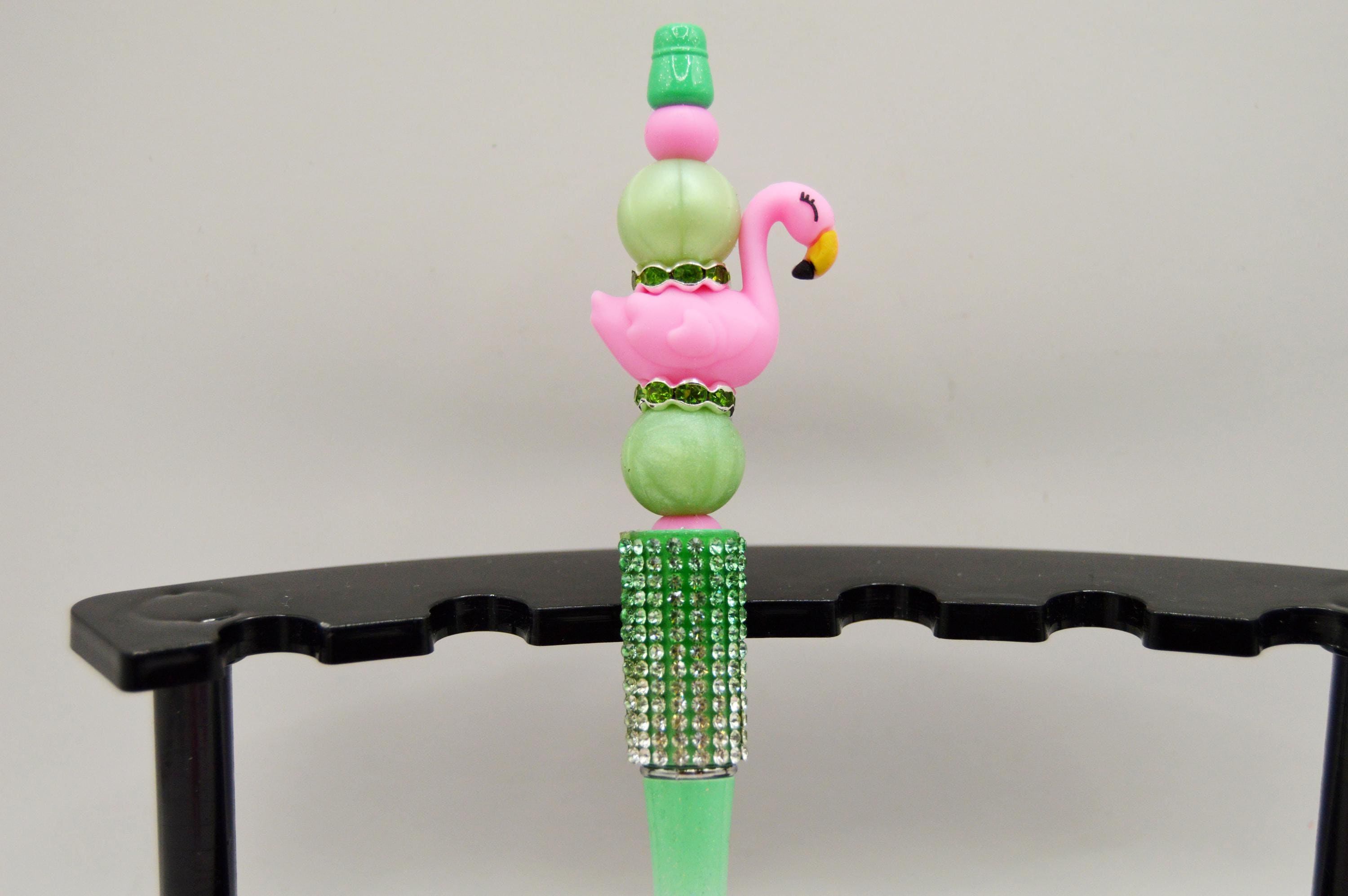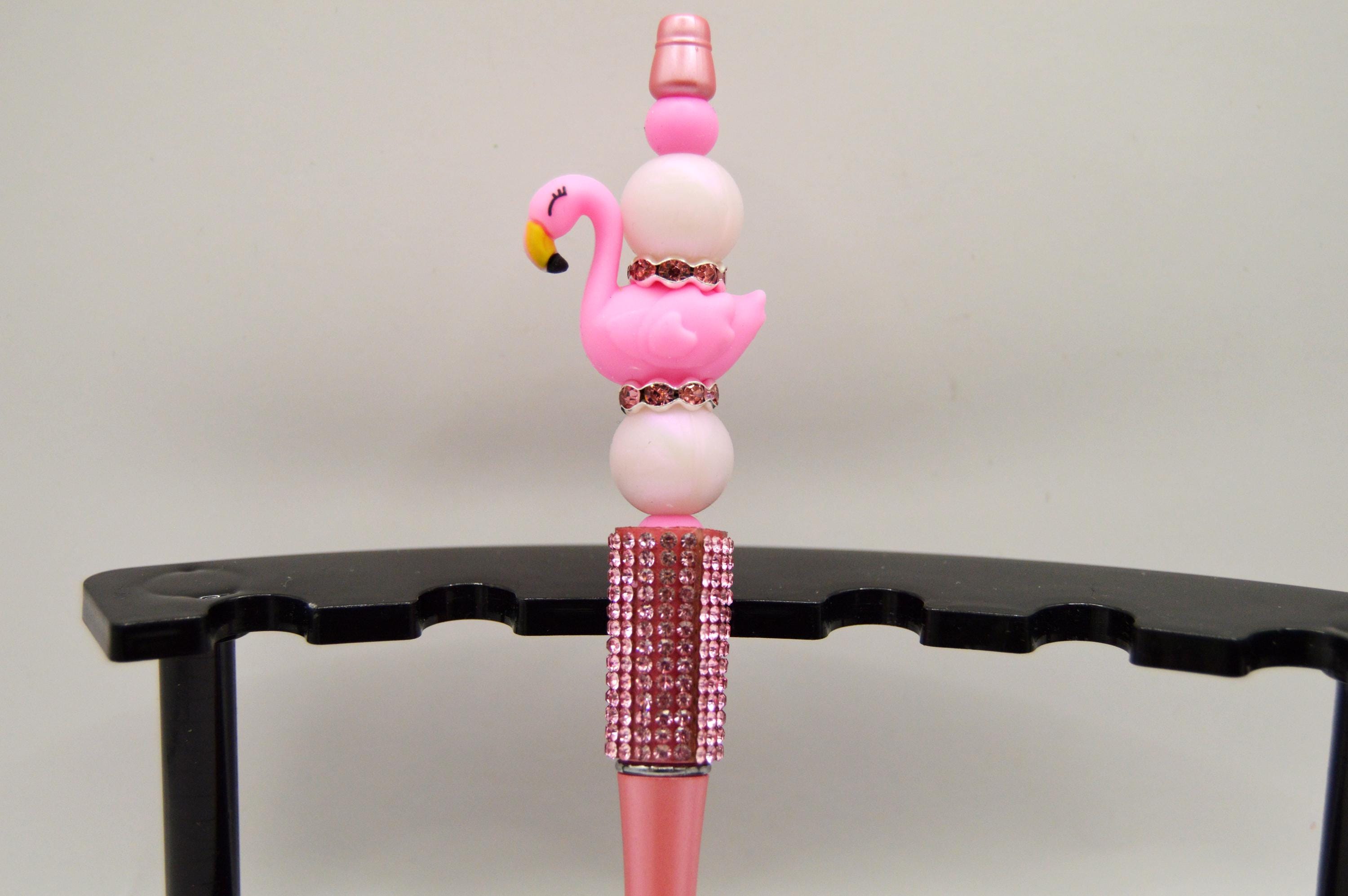 Beautiful Flamingo Pens with Rhinestones and pearlescent silicone beads.