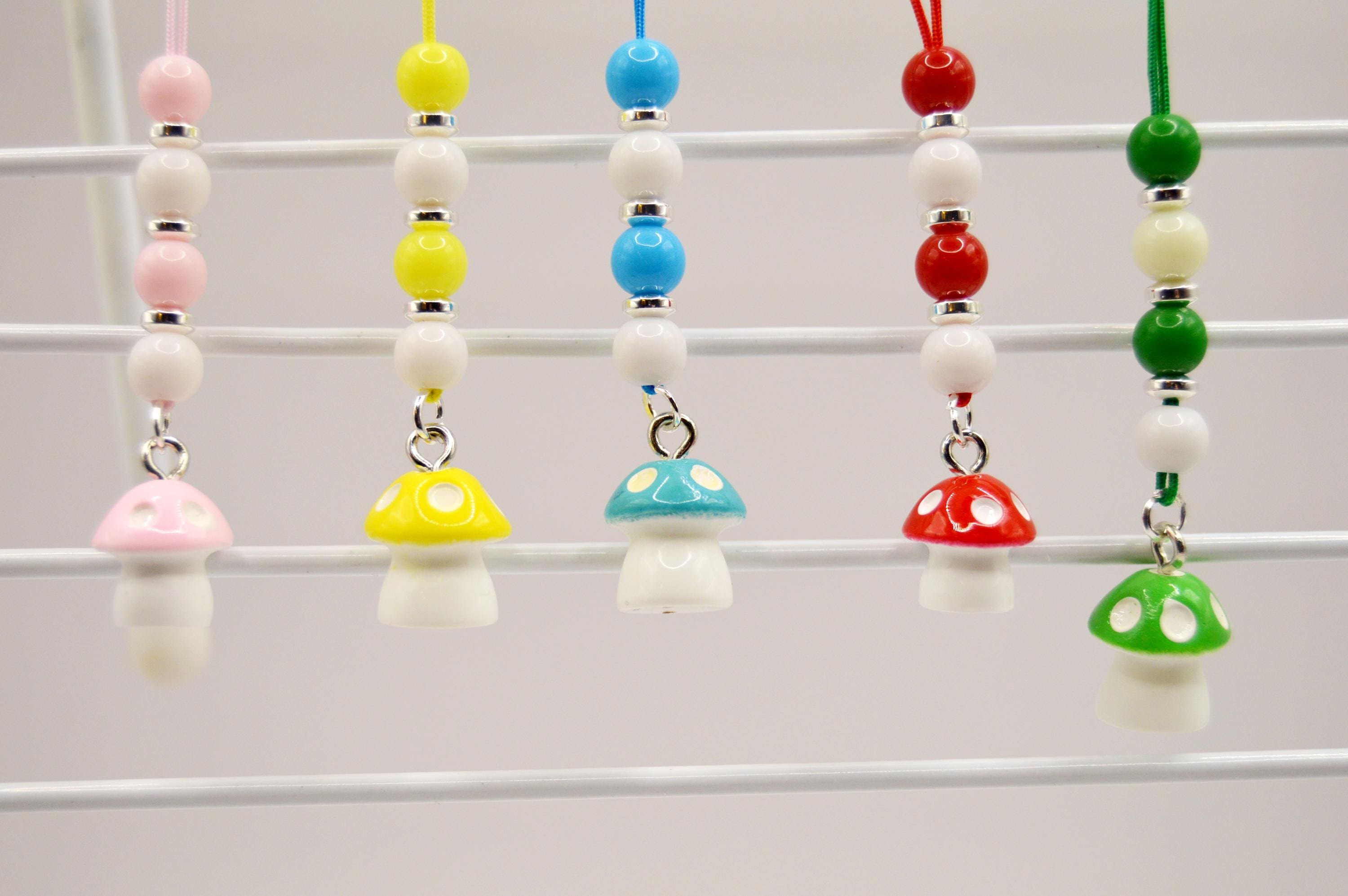 Whimsy little Mushroom Phone Charms in; Pink, Yellow, Blue, Red or Green.
