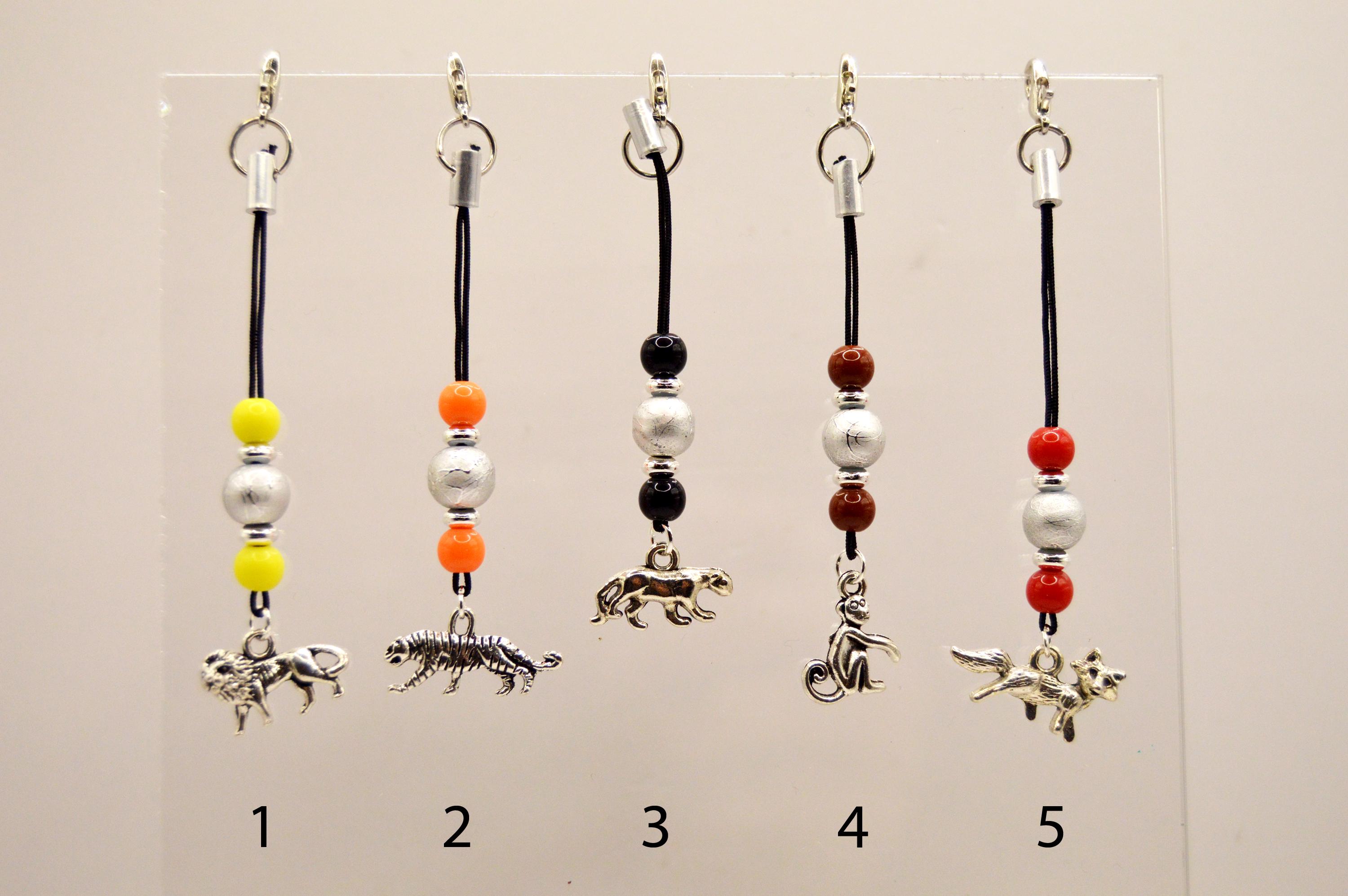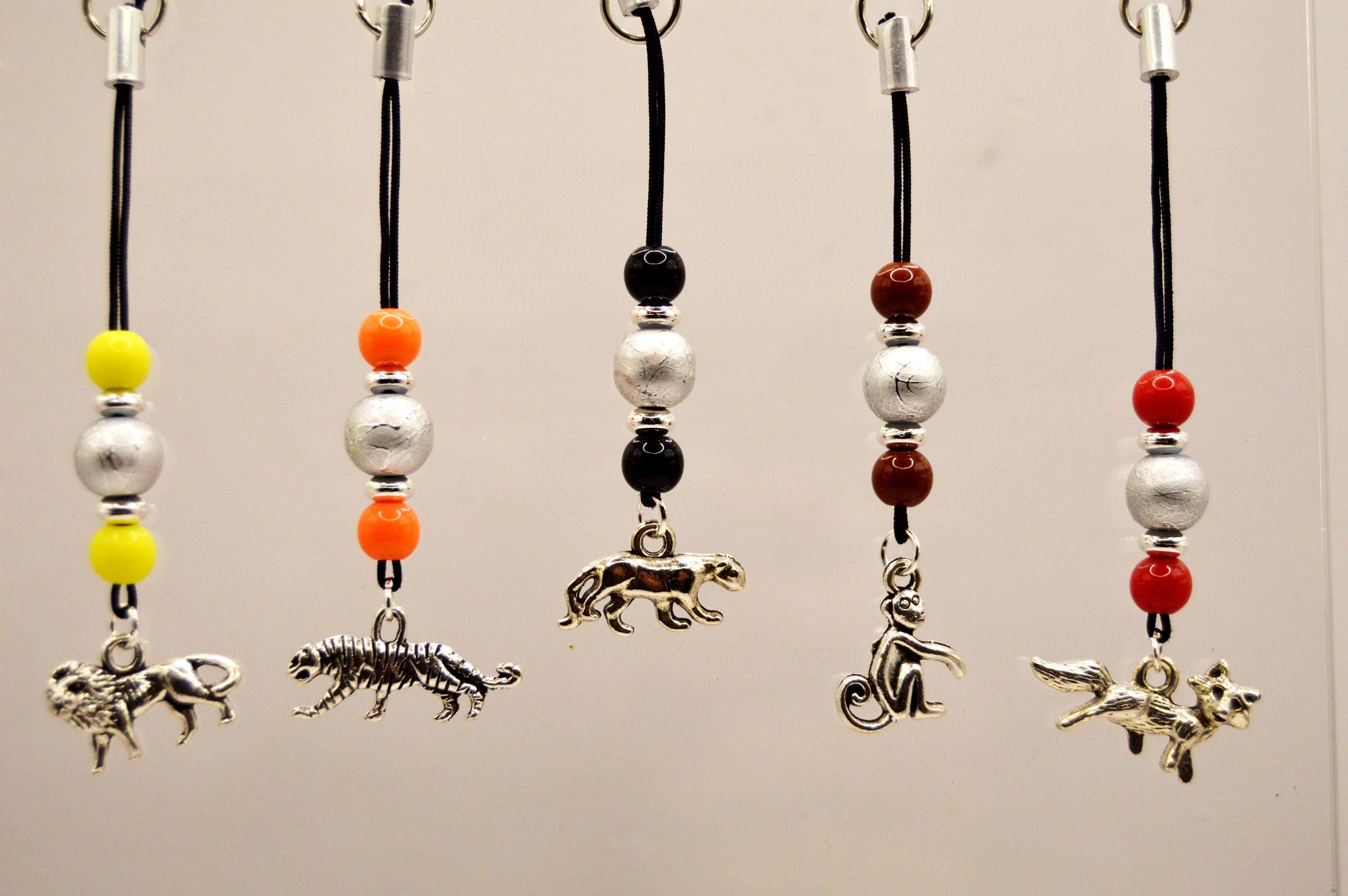Wild Animals Phone Charms, Lion, Tiger, Panther, Monkey, Fox.