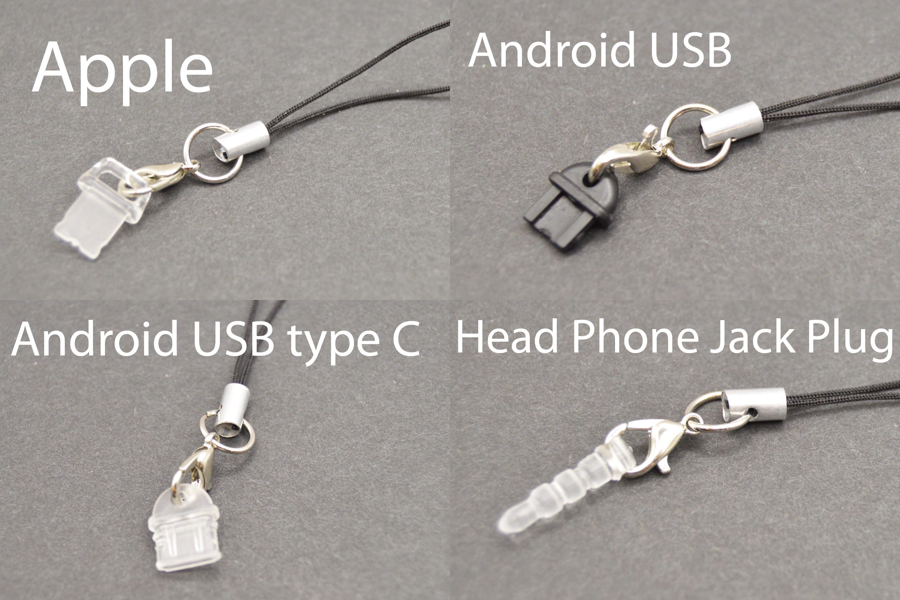 Dust Plug Included! Choose from Apple, Android USB, Android USB-C Dust Plug or Headphone jack plug, in the second drop down window.