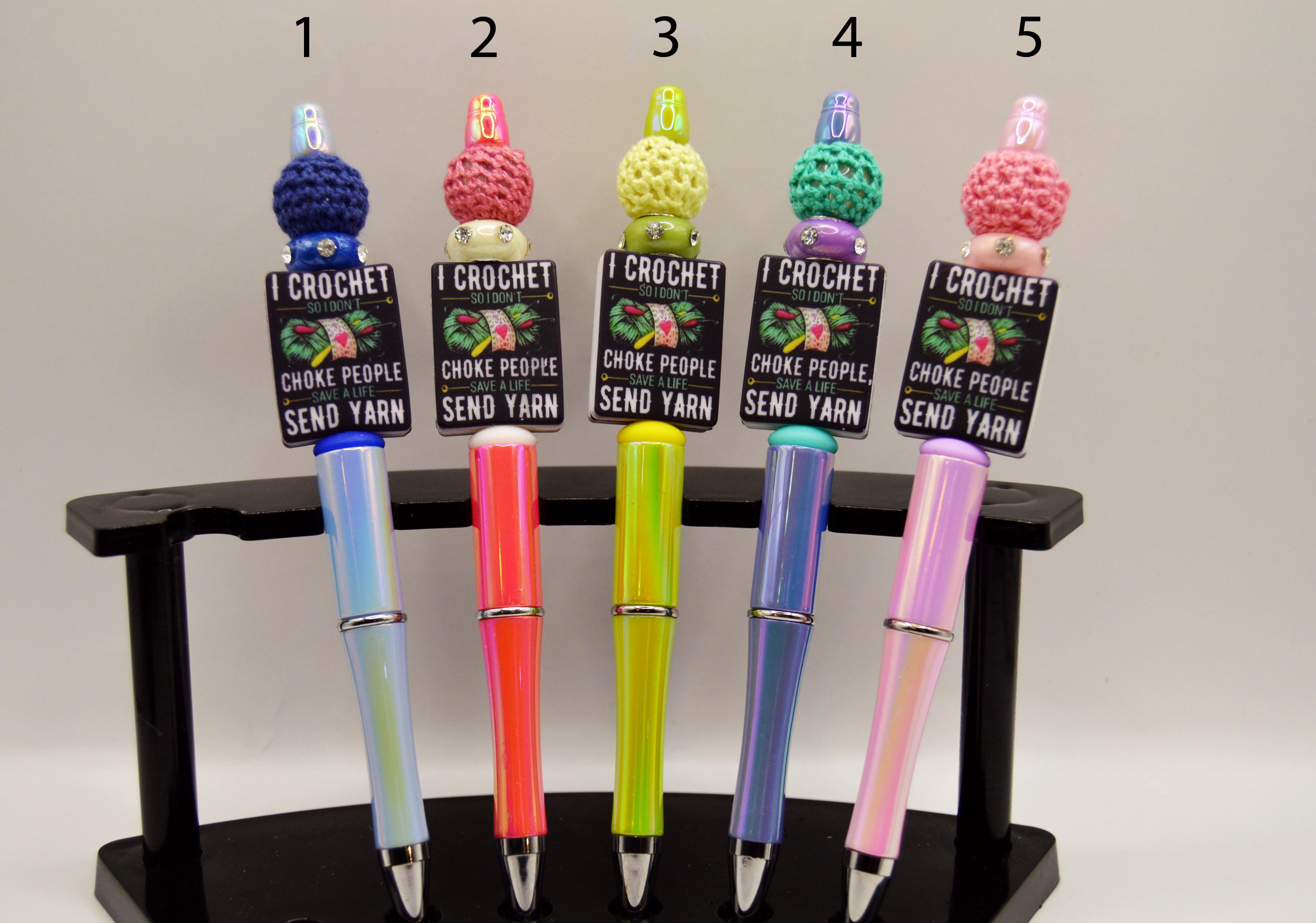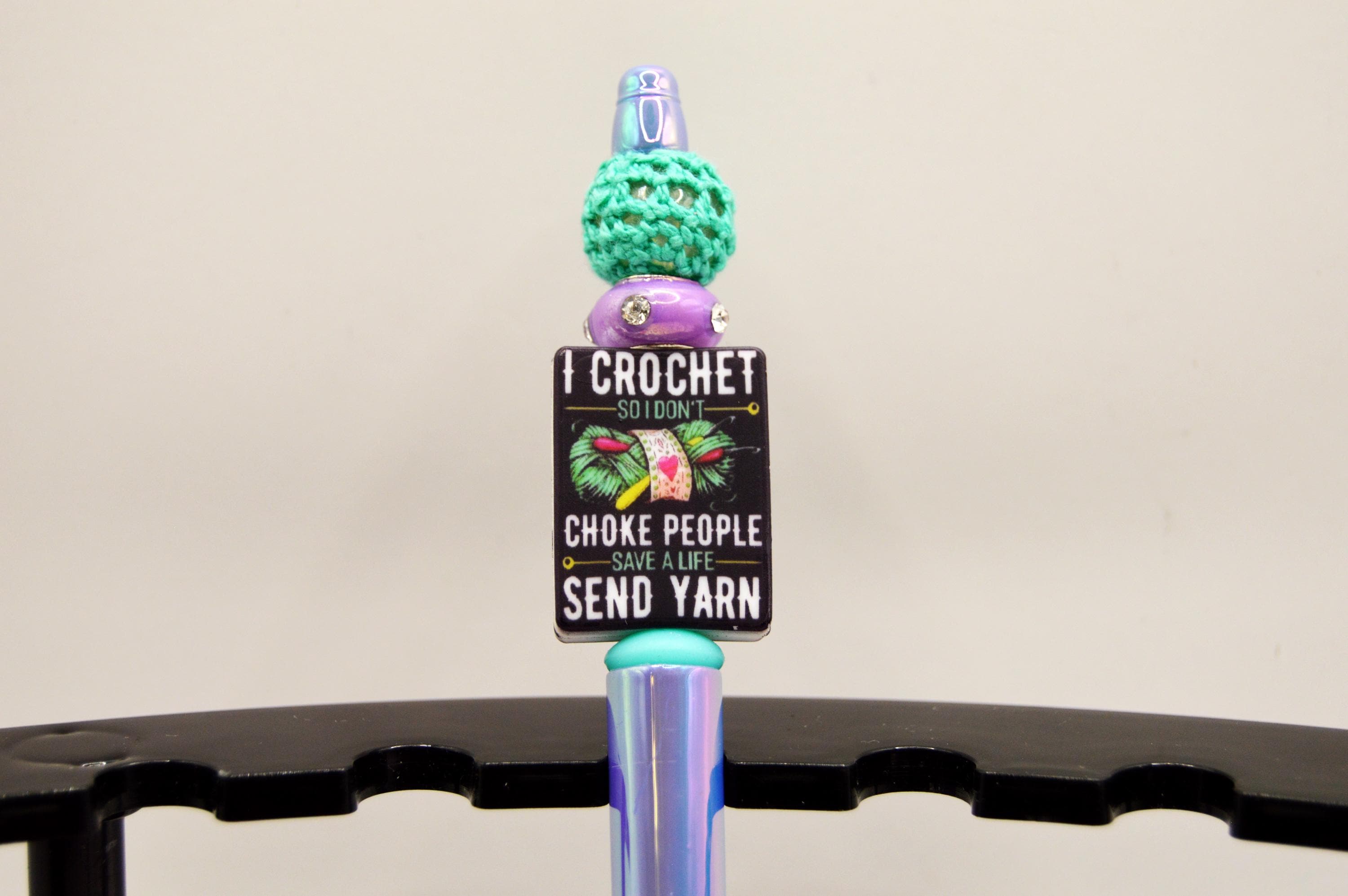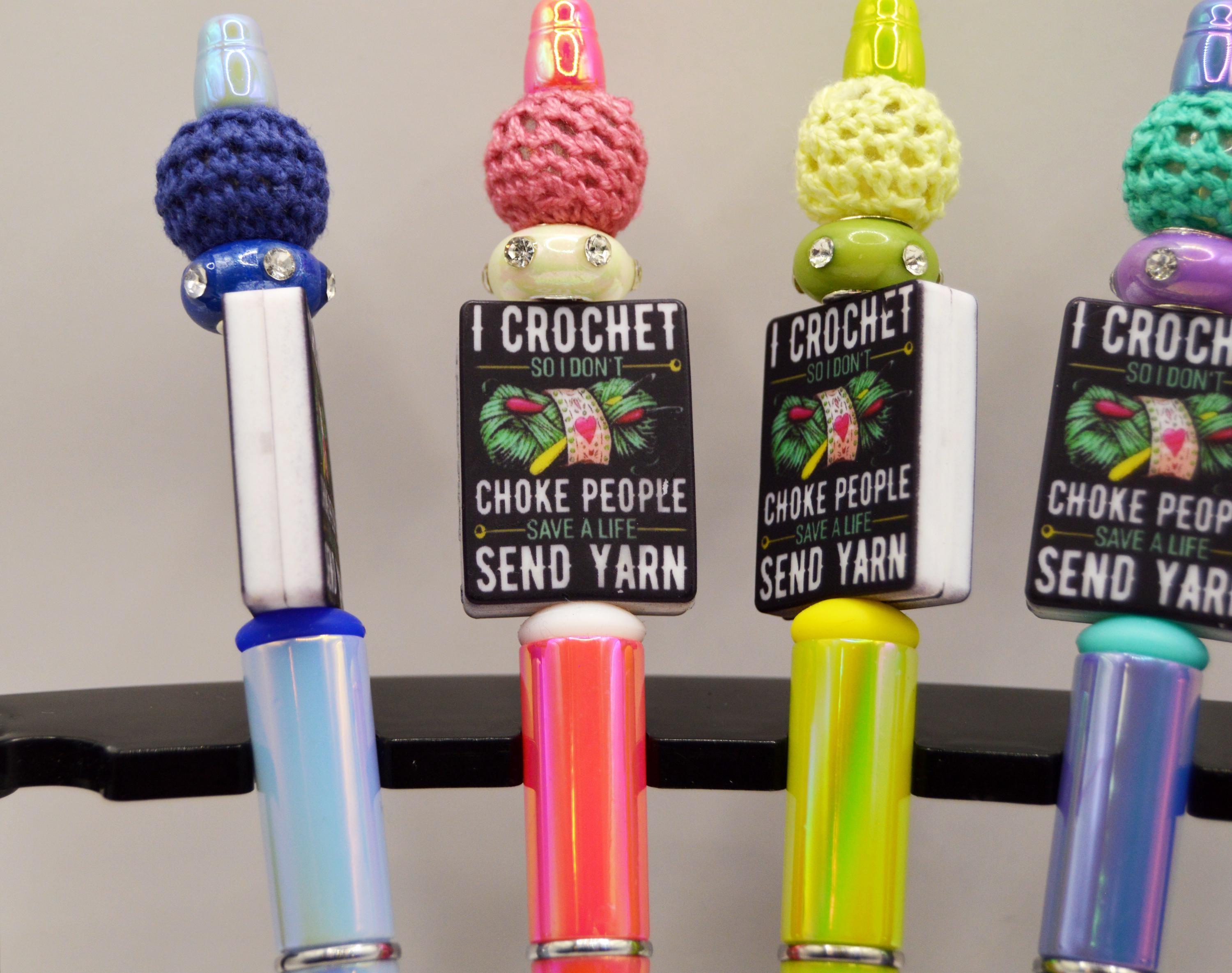 Crochet dark humor on beautiful iridescent pens. Great gift for the yarn obsessed! ;)