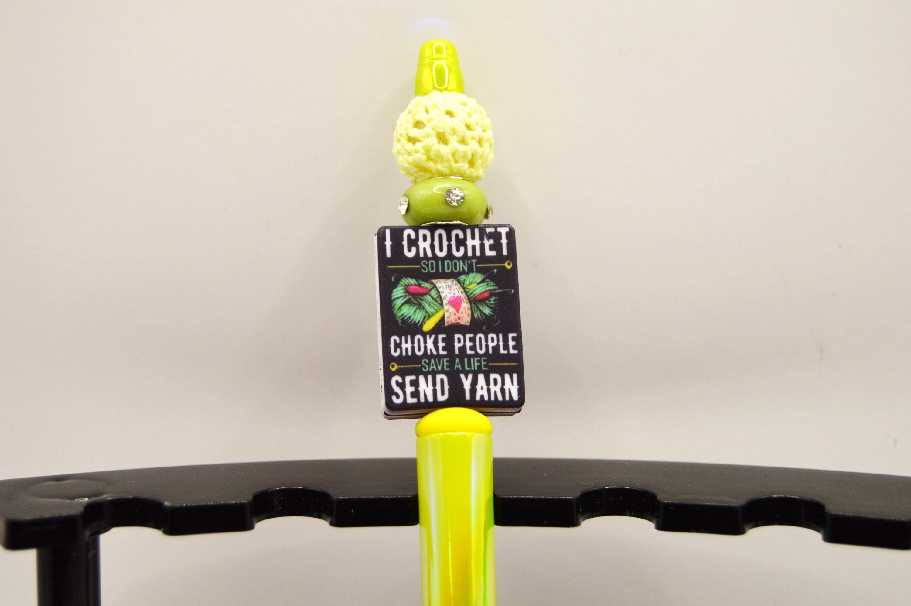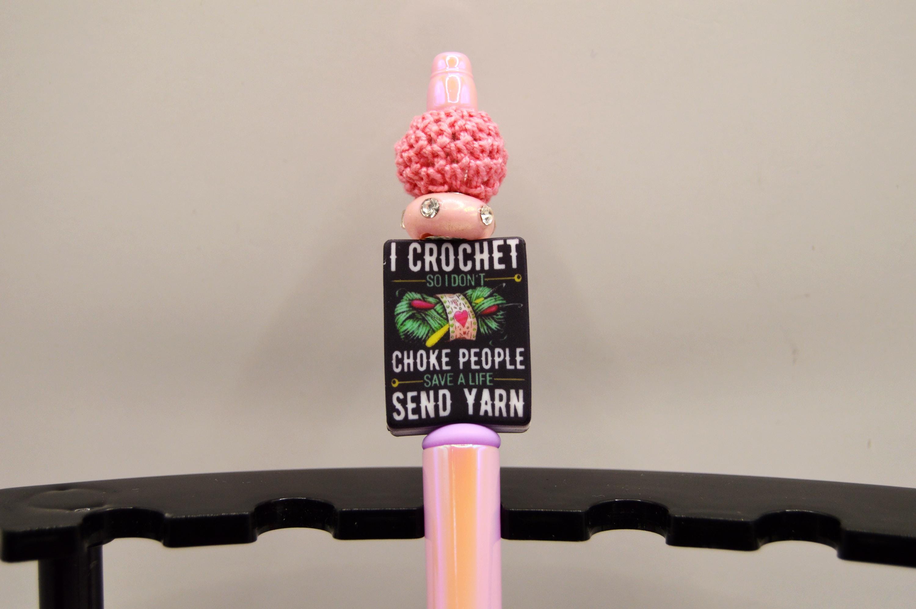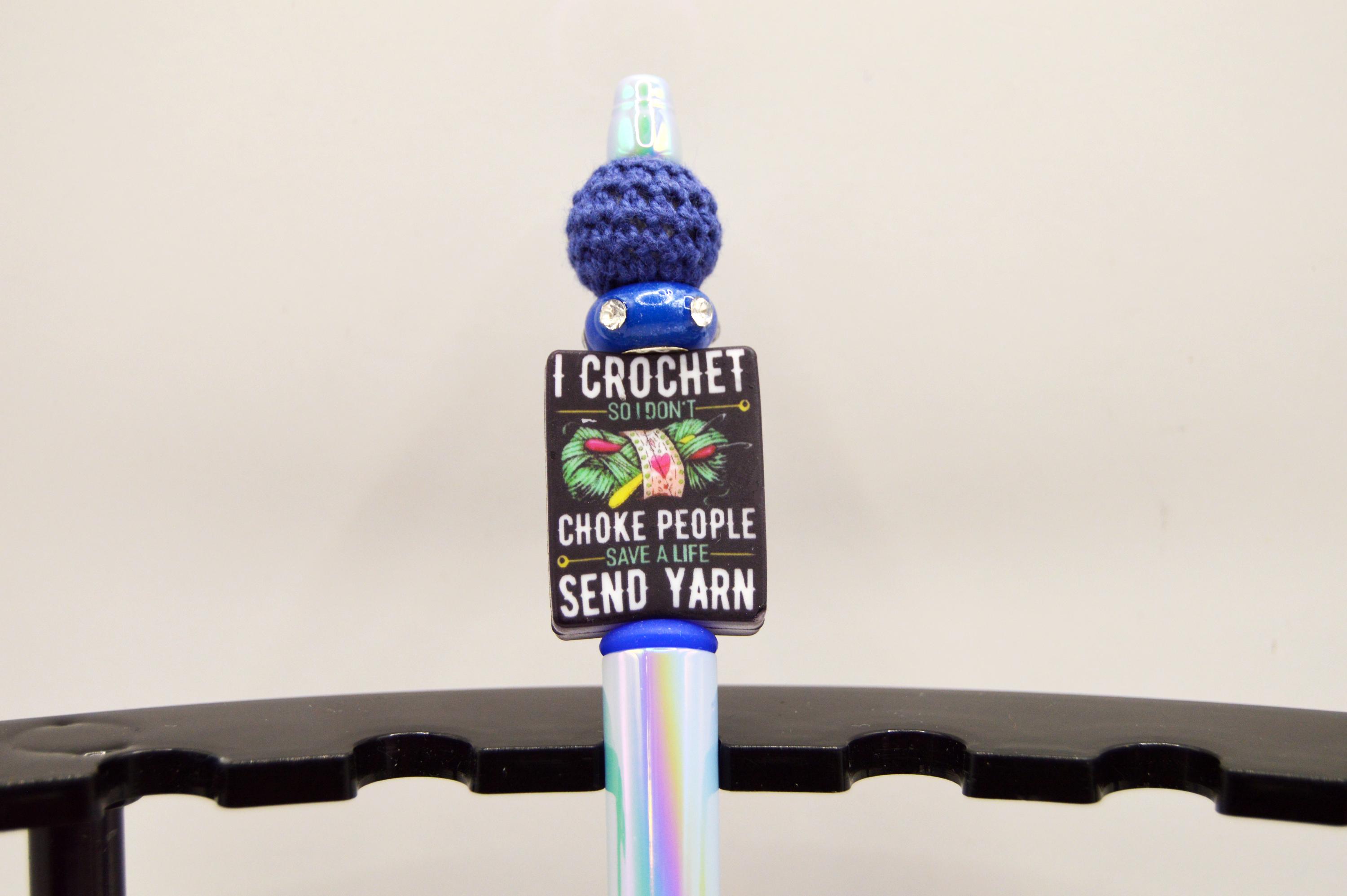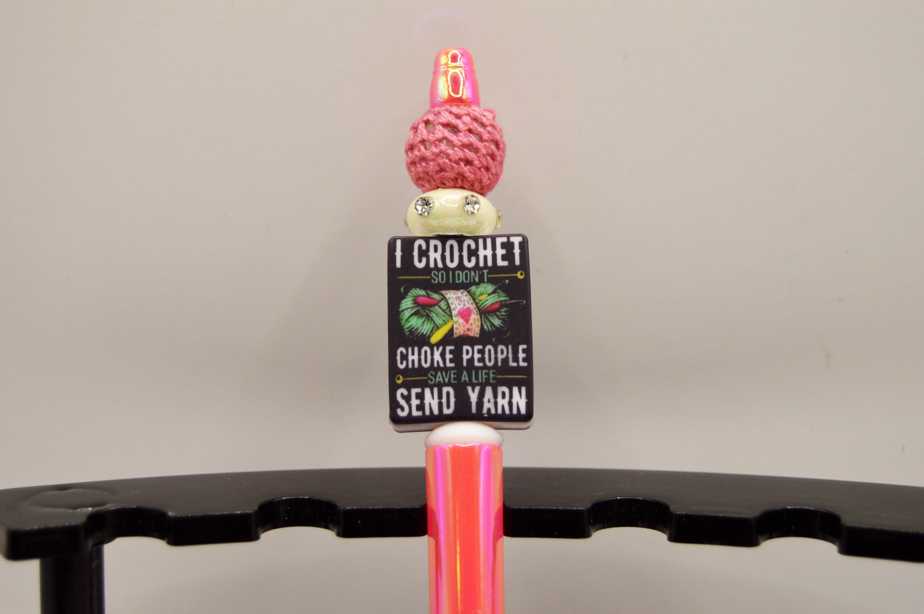 Crochet dark humor on beautiful iridescent pens. Great gift for the yarn obsessed! ;)