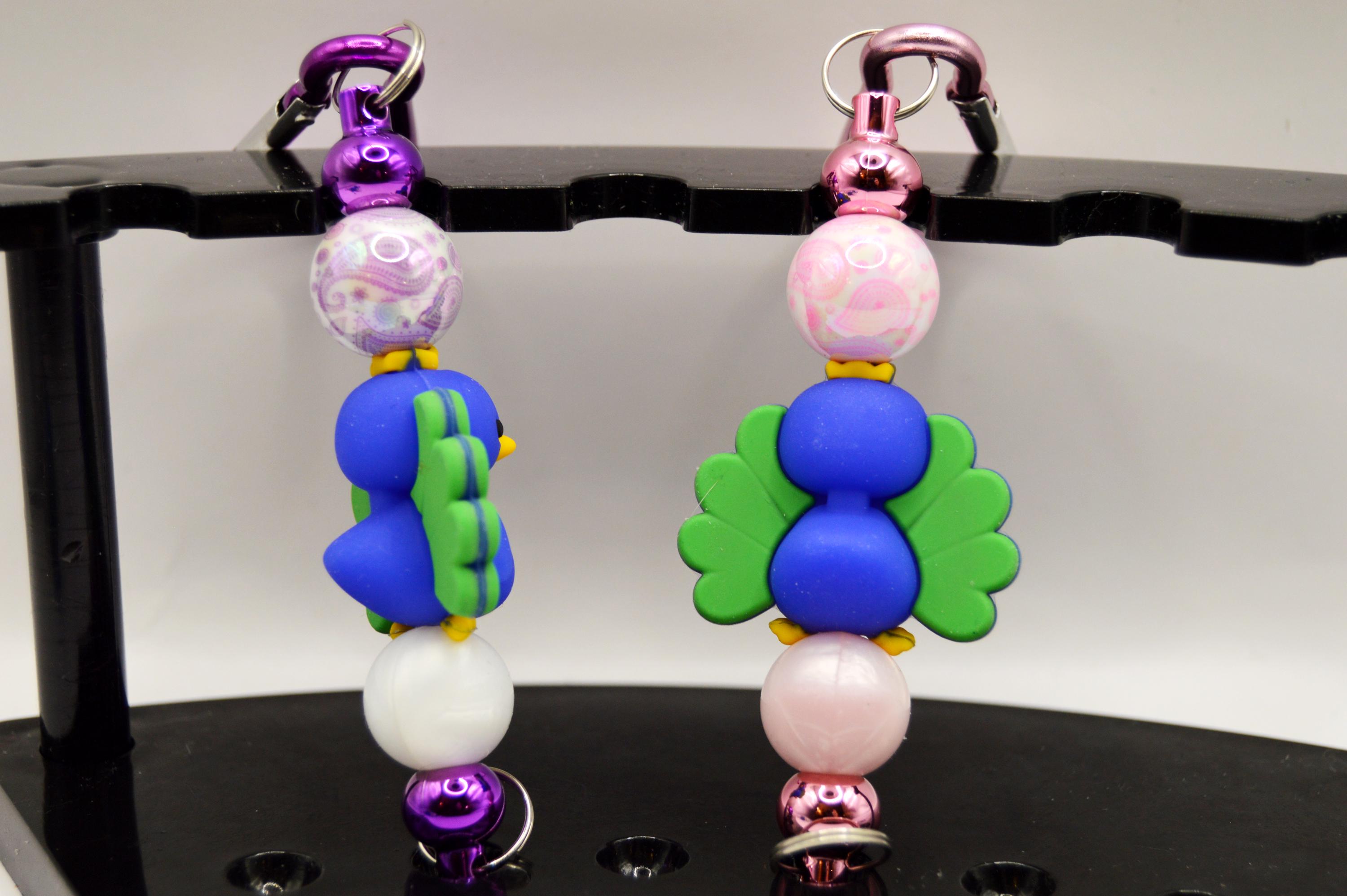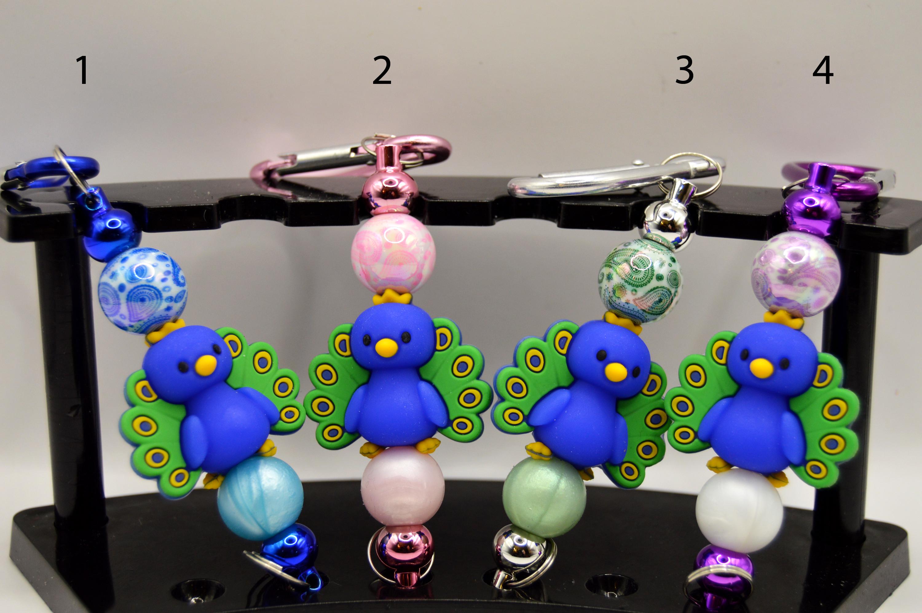 Gorgeous and Cute Peacock Key Chains, Car Hanger, Backpack Clip, Purse Clip.