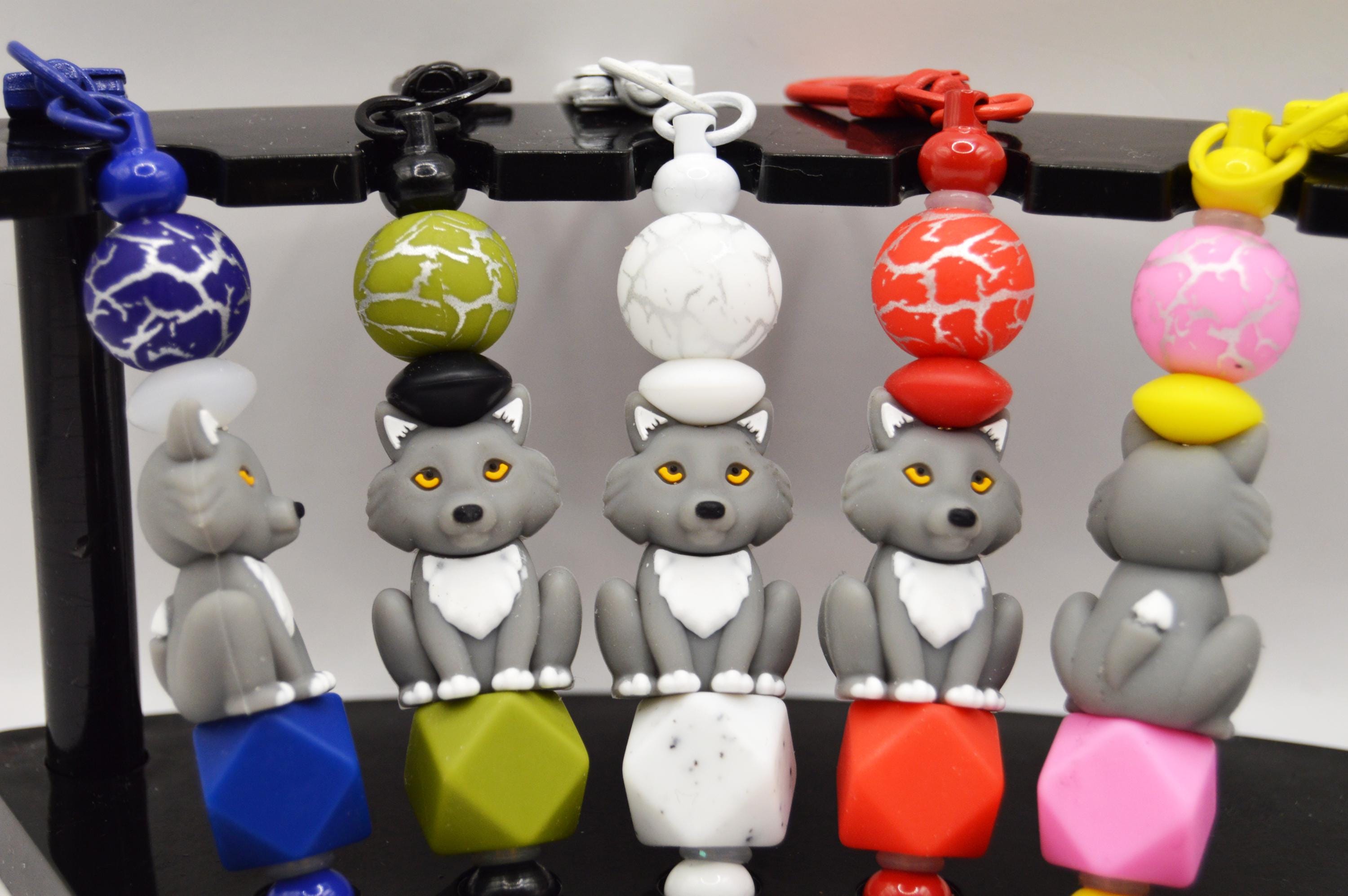 Gray Wolves Key Chains with Lightning and Octagon beads.
