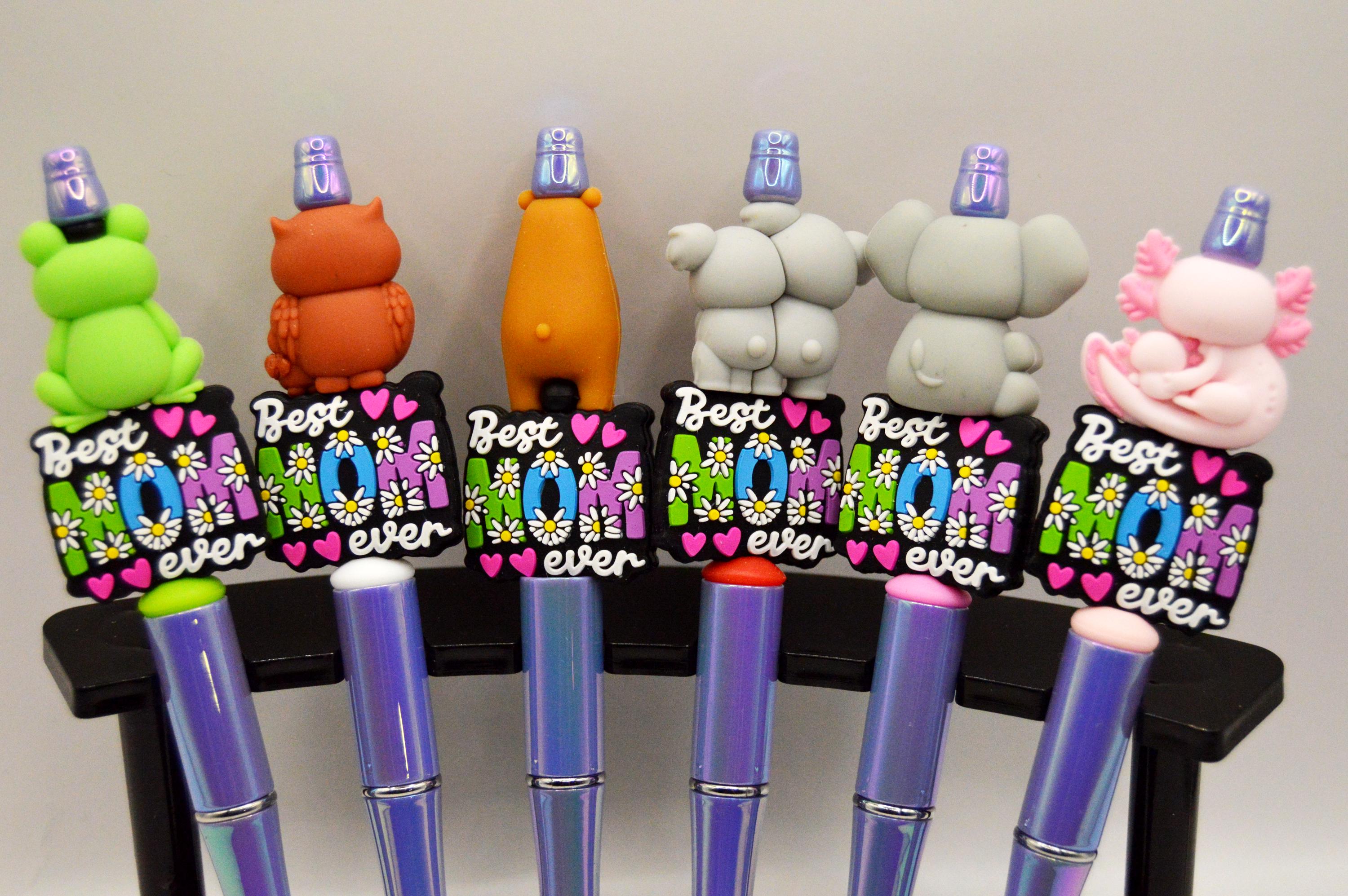 Mother and Child "Best Mom Ever" Pens with refills. Animals featuring; Frogs, Owls, Koala bears, Bears, Elephants and Axolotl.