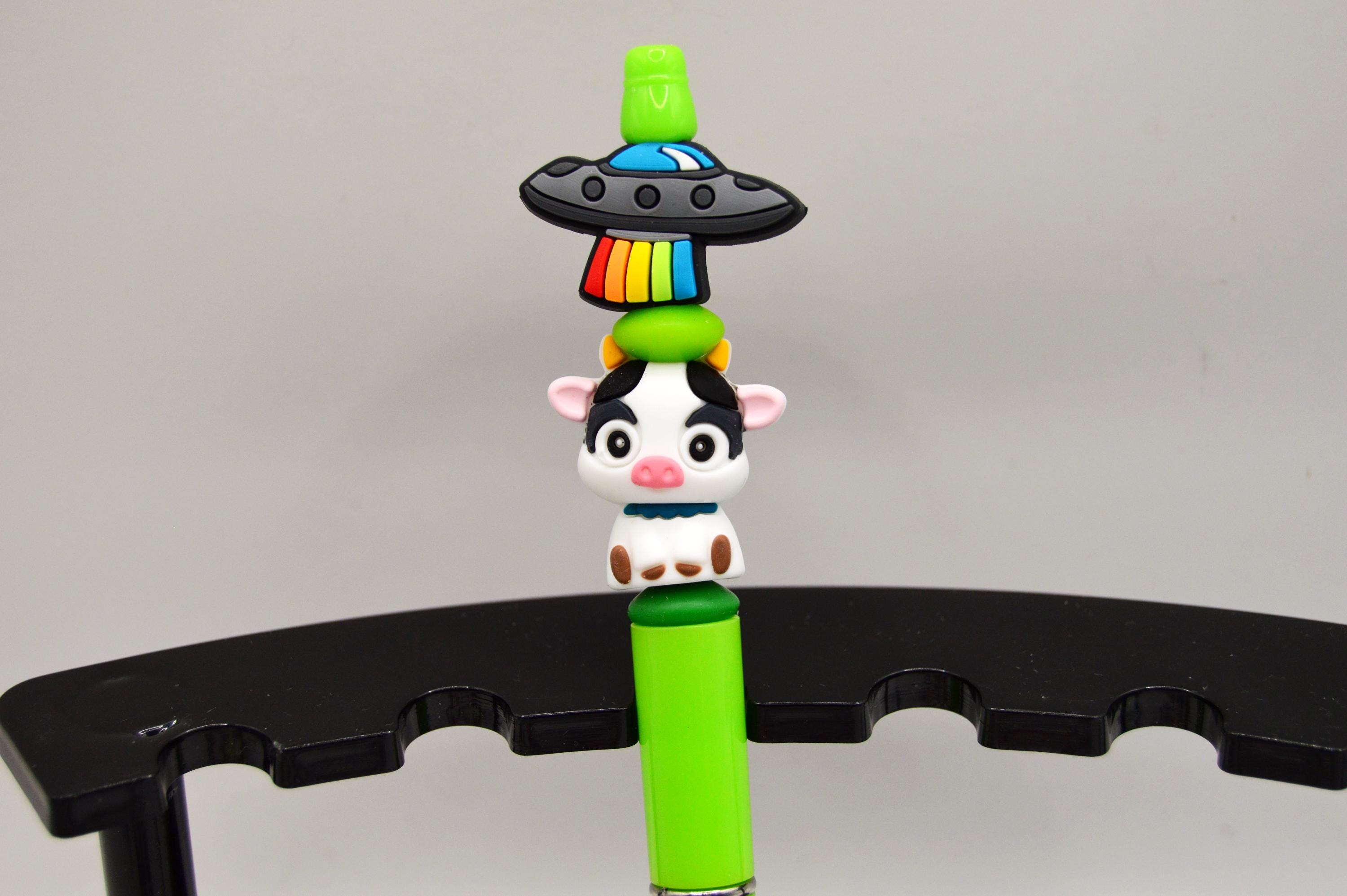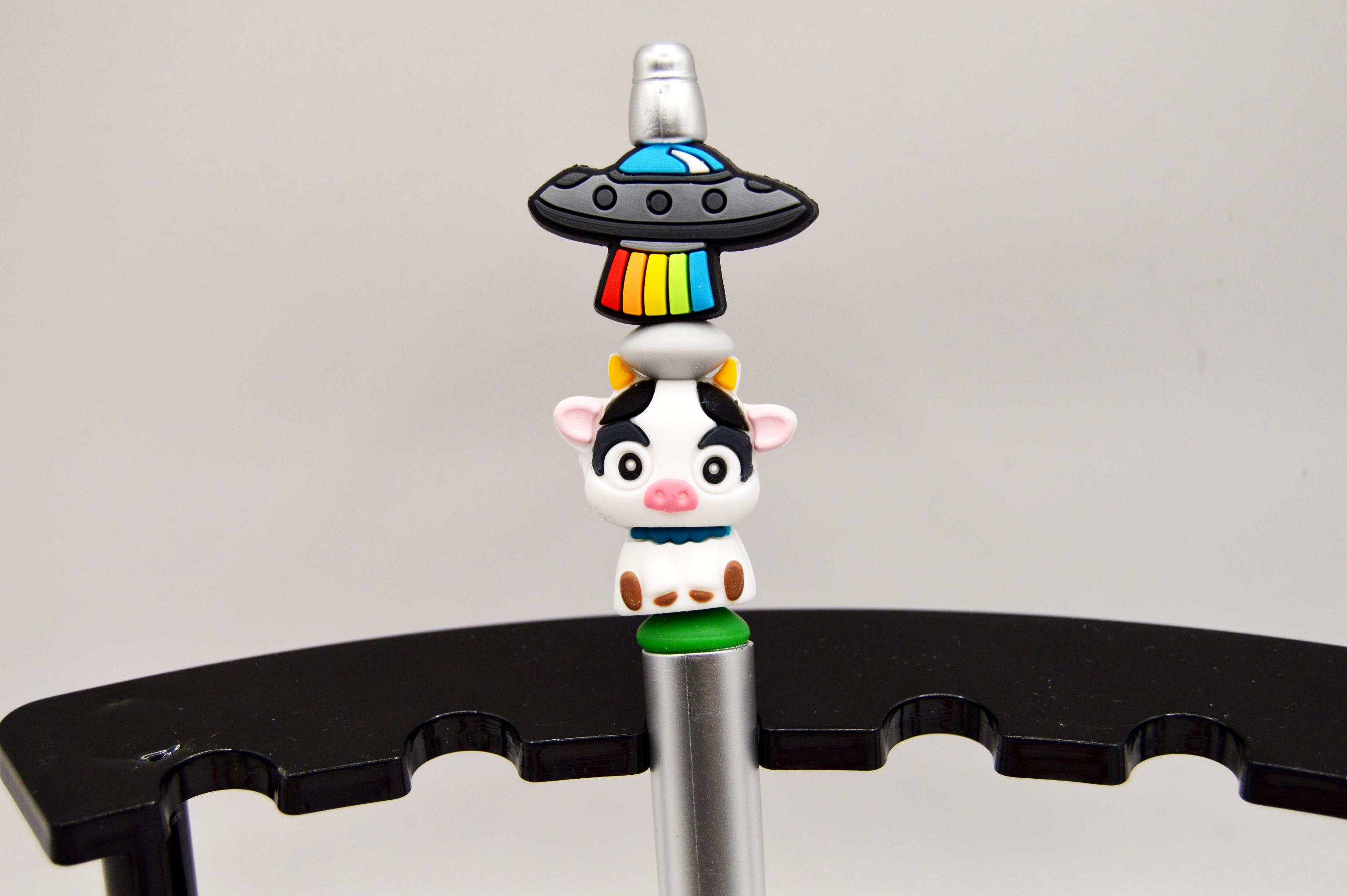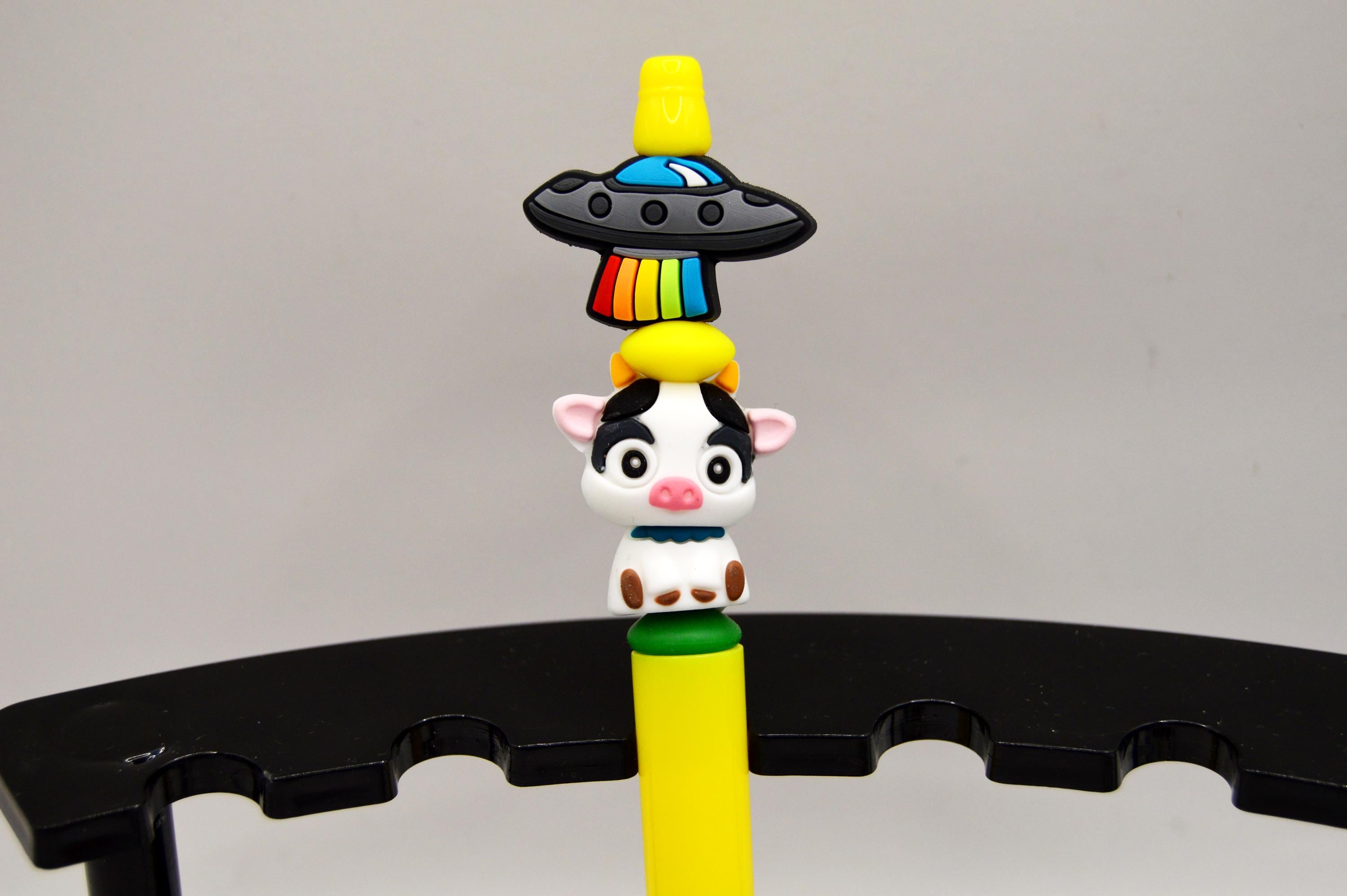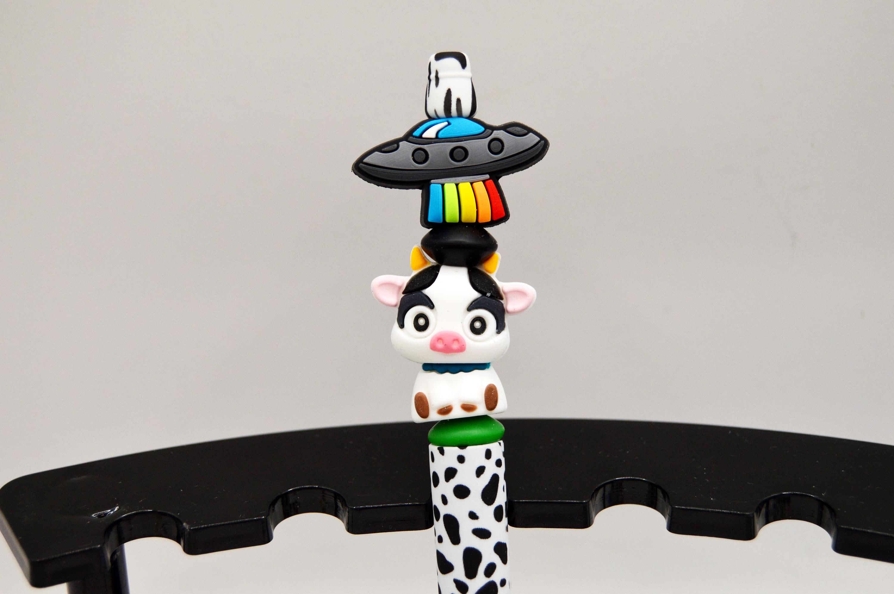 An Adorable little cow sits on a grass hill ready to be beamed up by a UFO in these fun Pens!