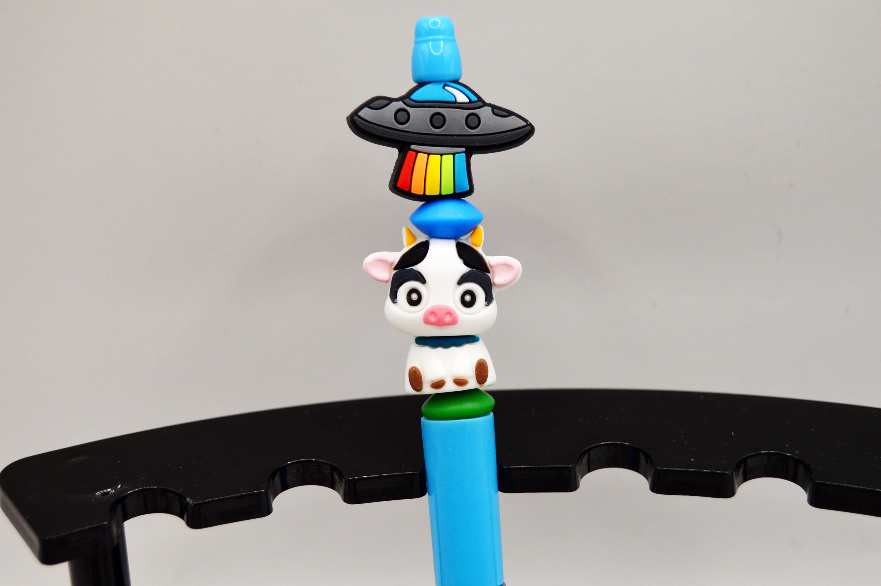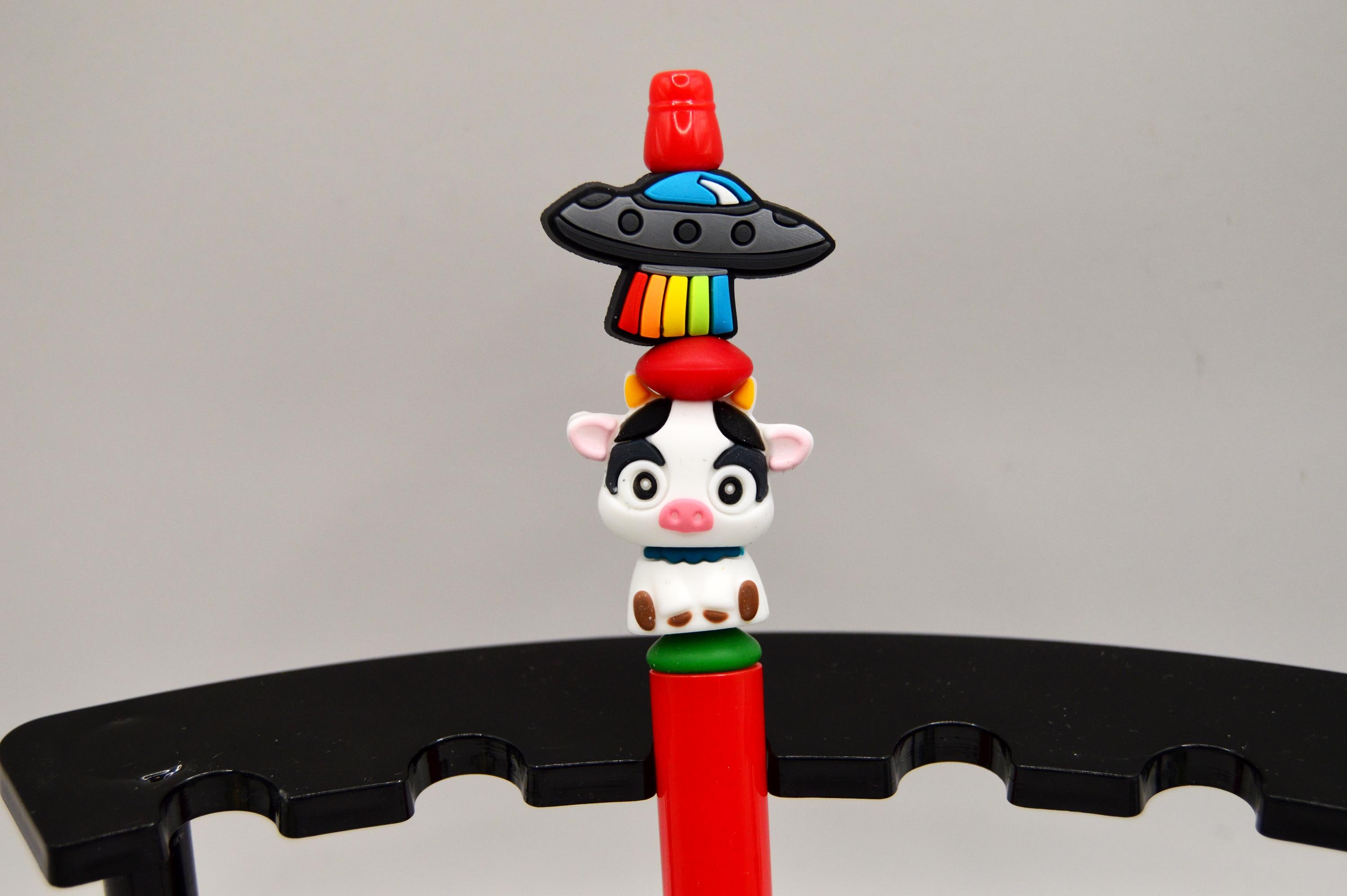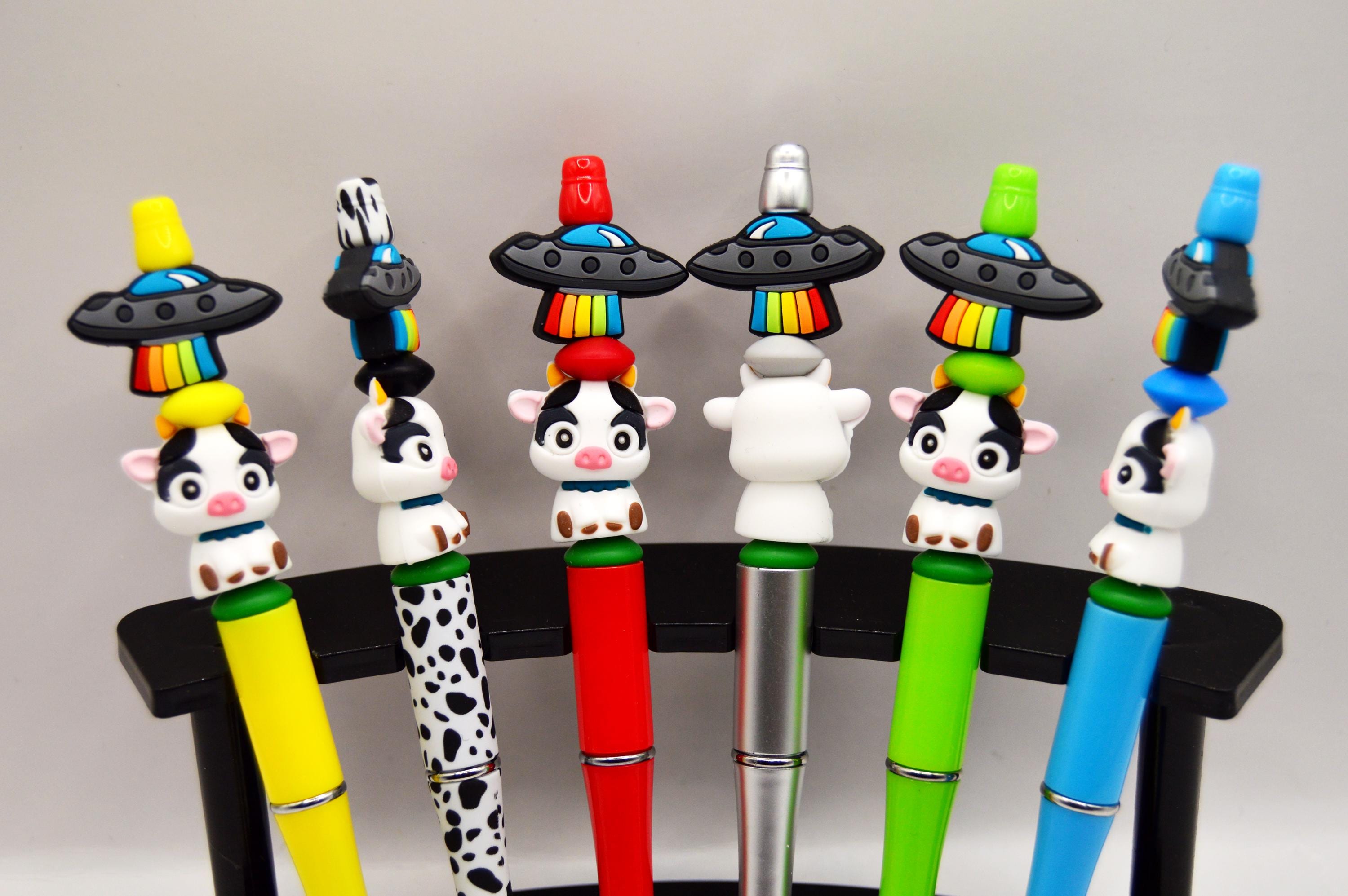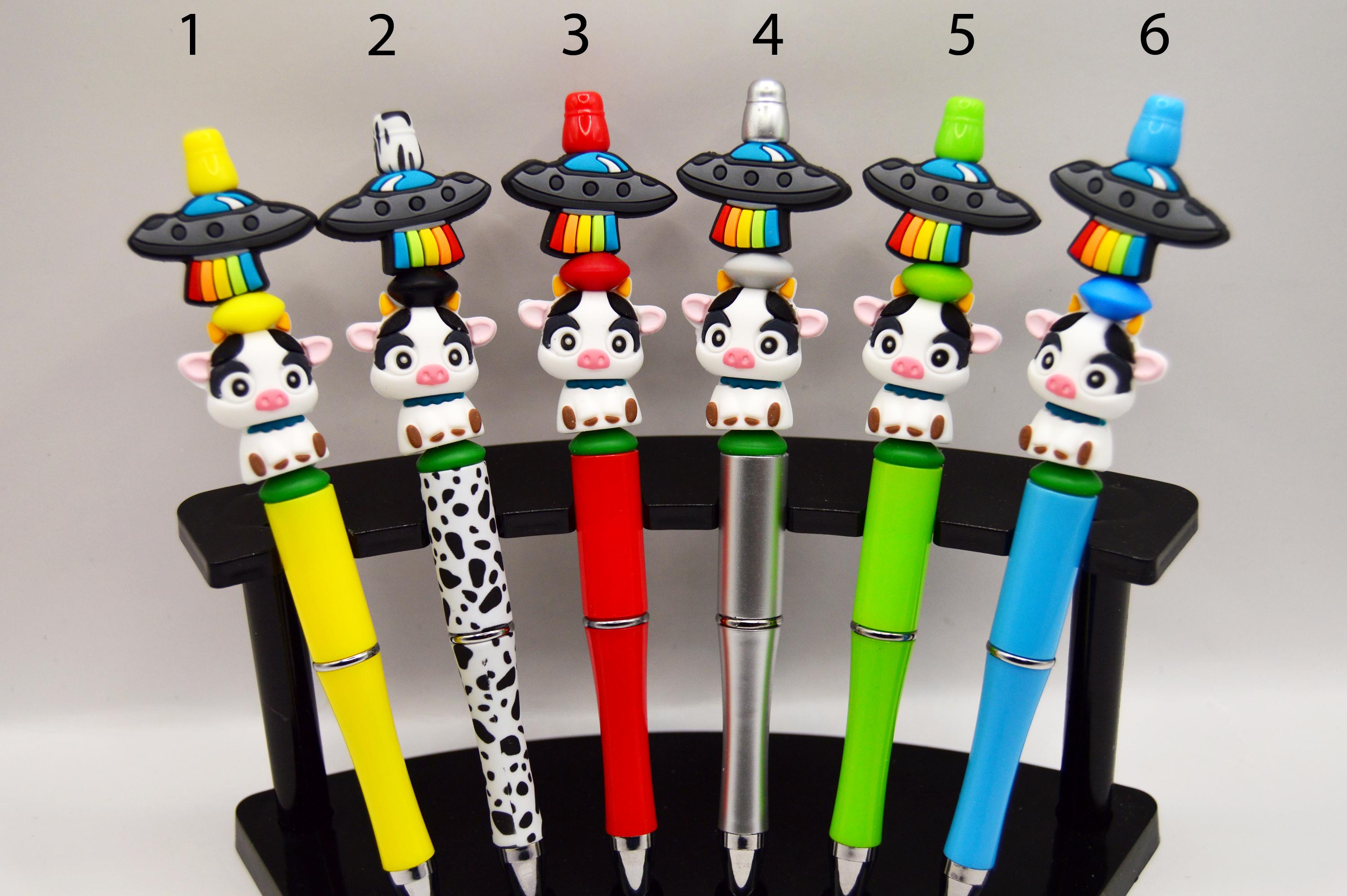 An Adorable little cow sits on a grass hill ready to be beamed up by a UFO in these fun Pens!