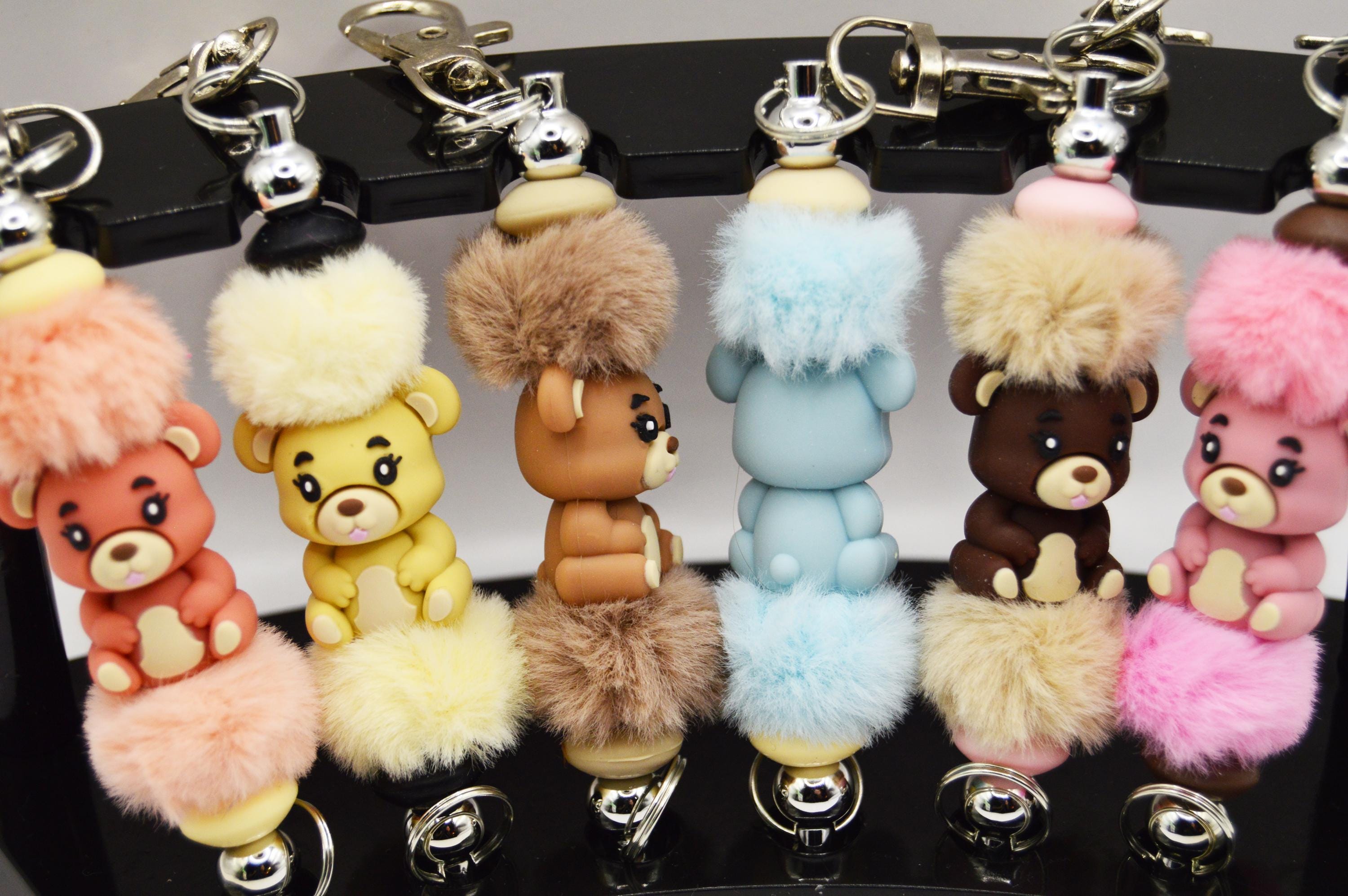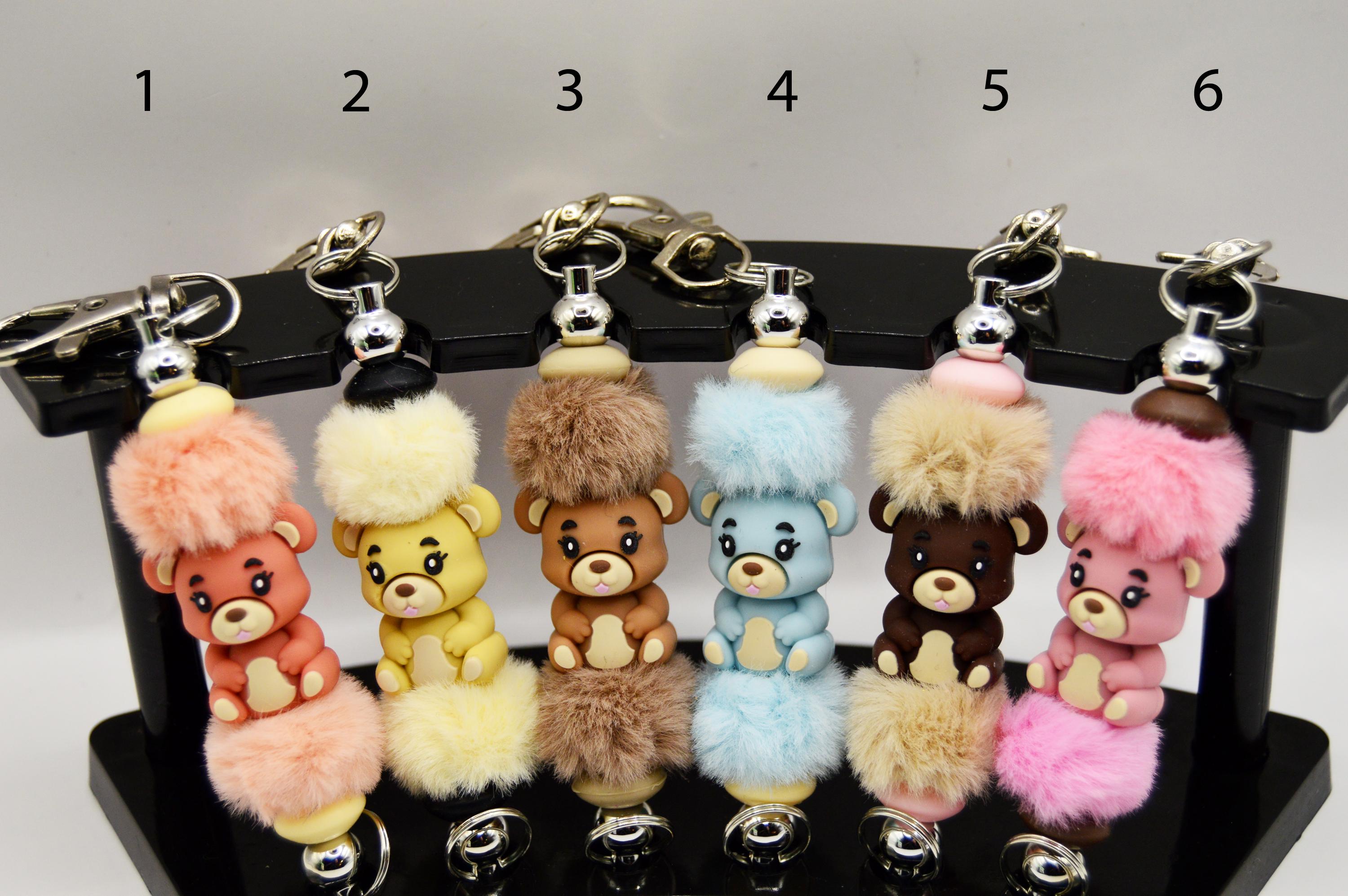 Beautiful Pastel Teddy Bear Key Chains, or bag clips with Faux Fur.