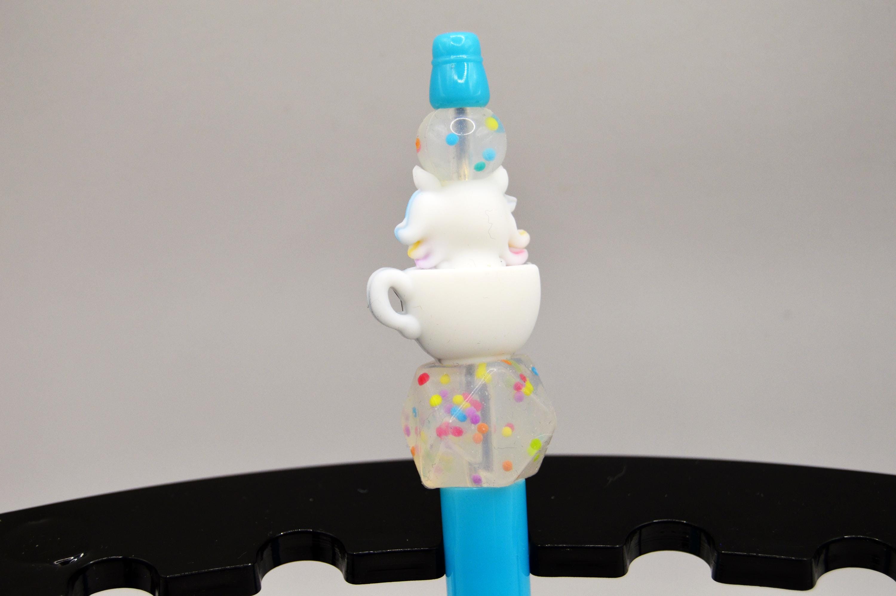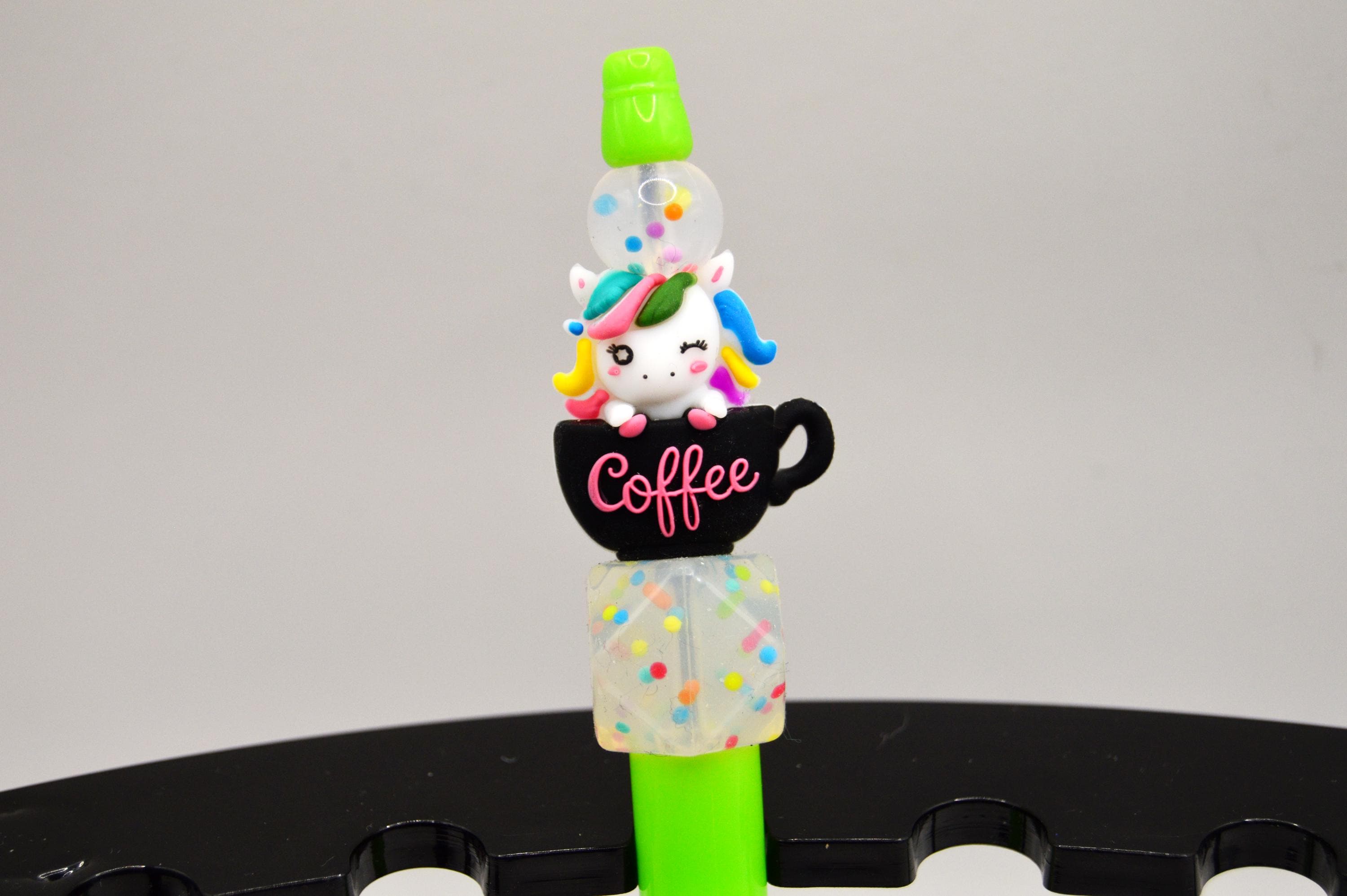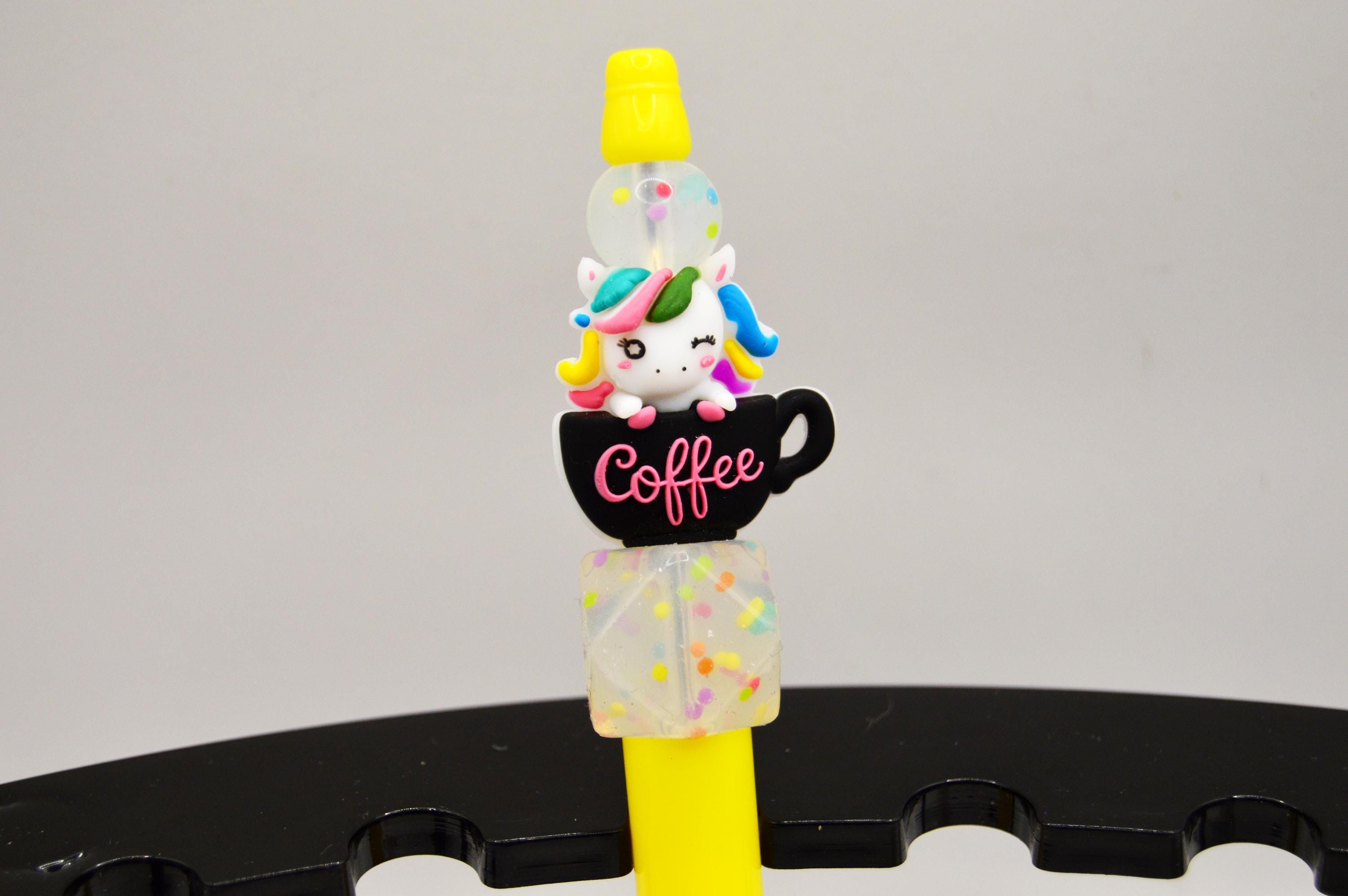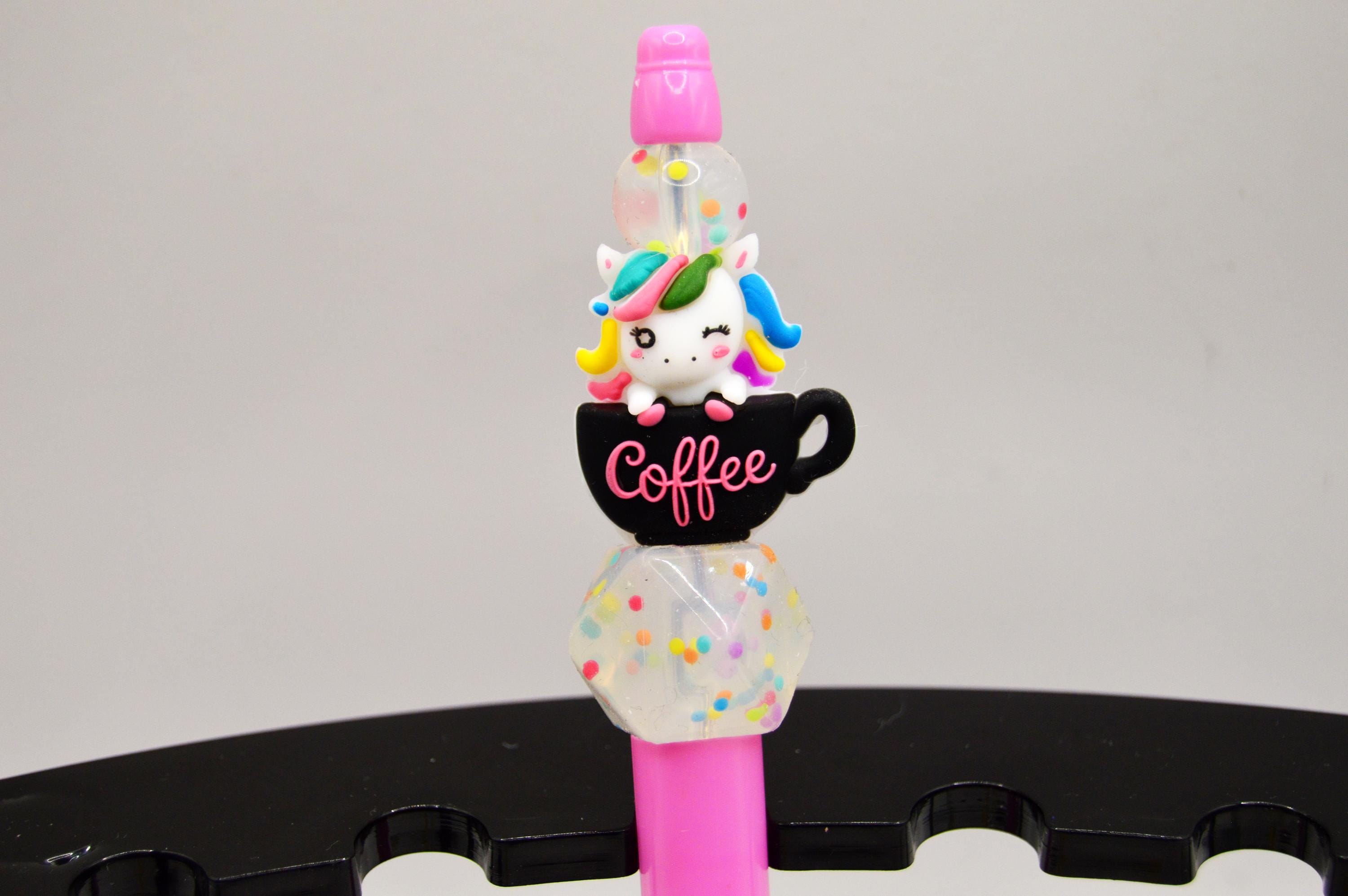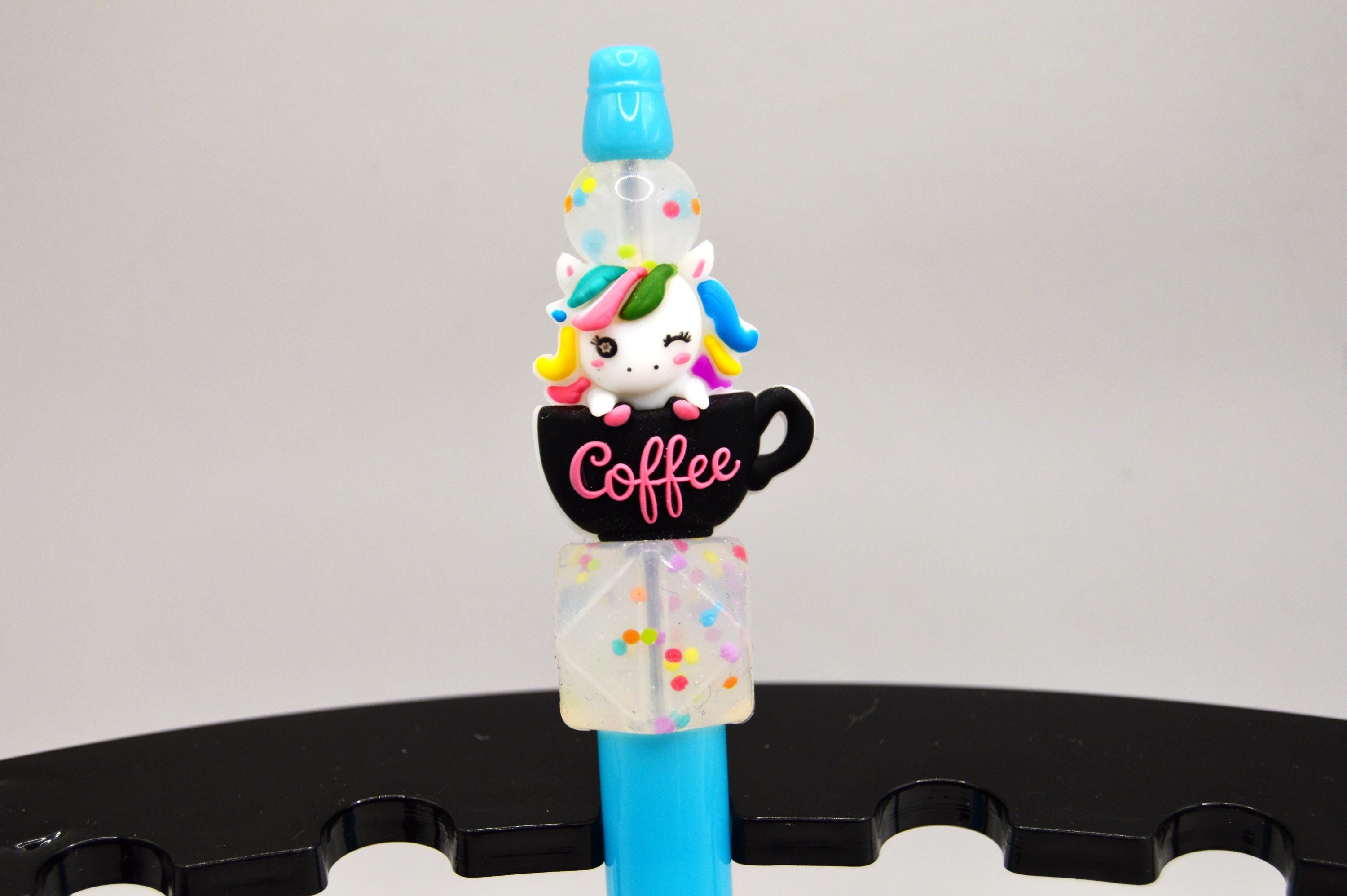 Just the cutest little rainbow unicorn sitting in a coffee cup pens! With Sprinkle beads, I love sprinkles! :D
