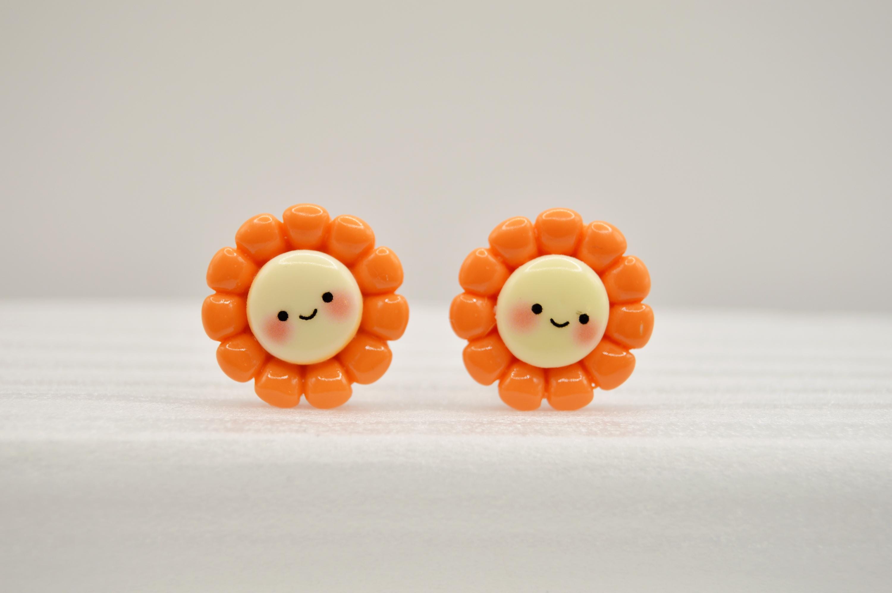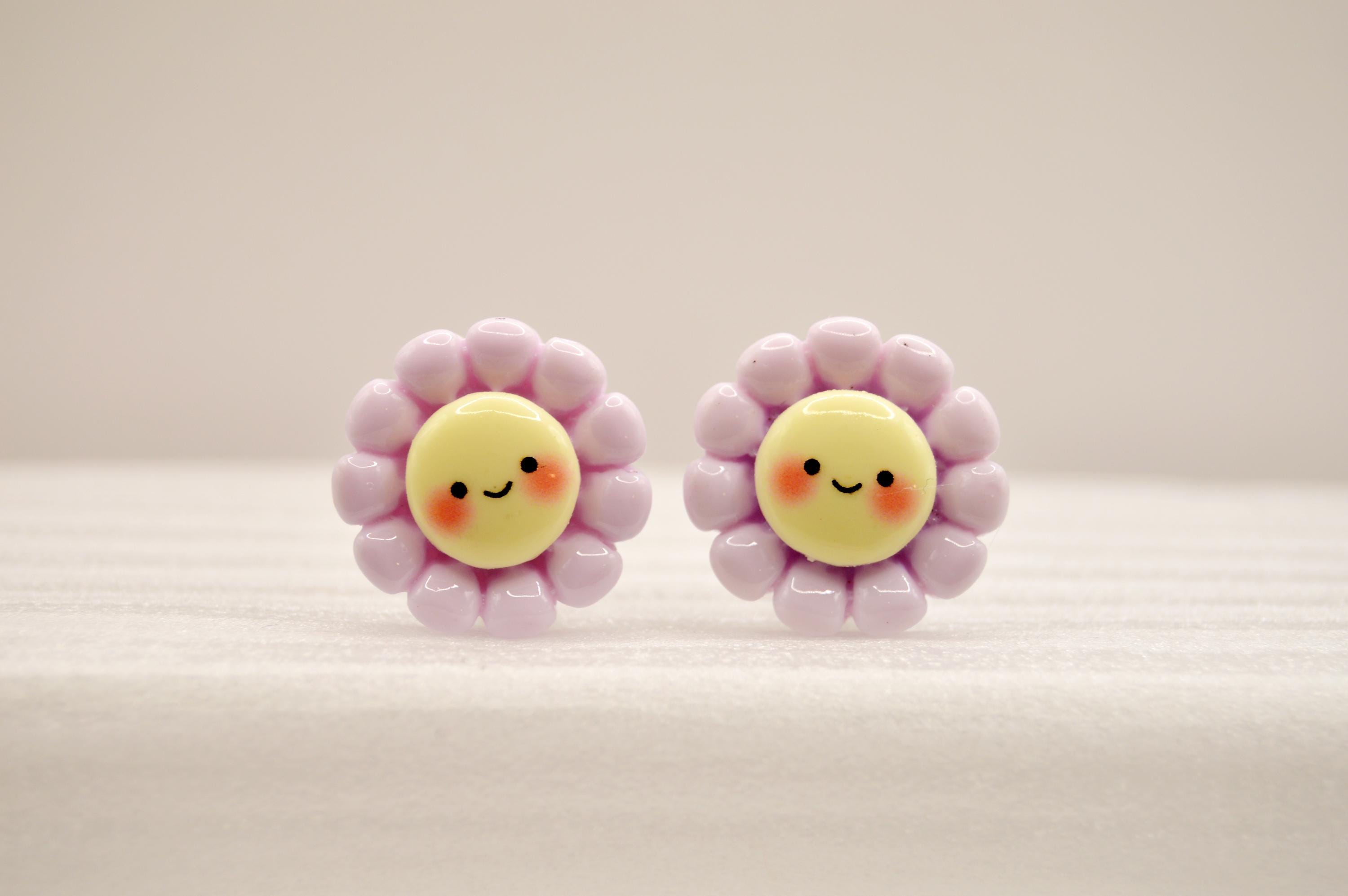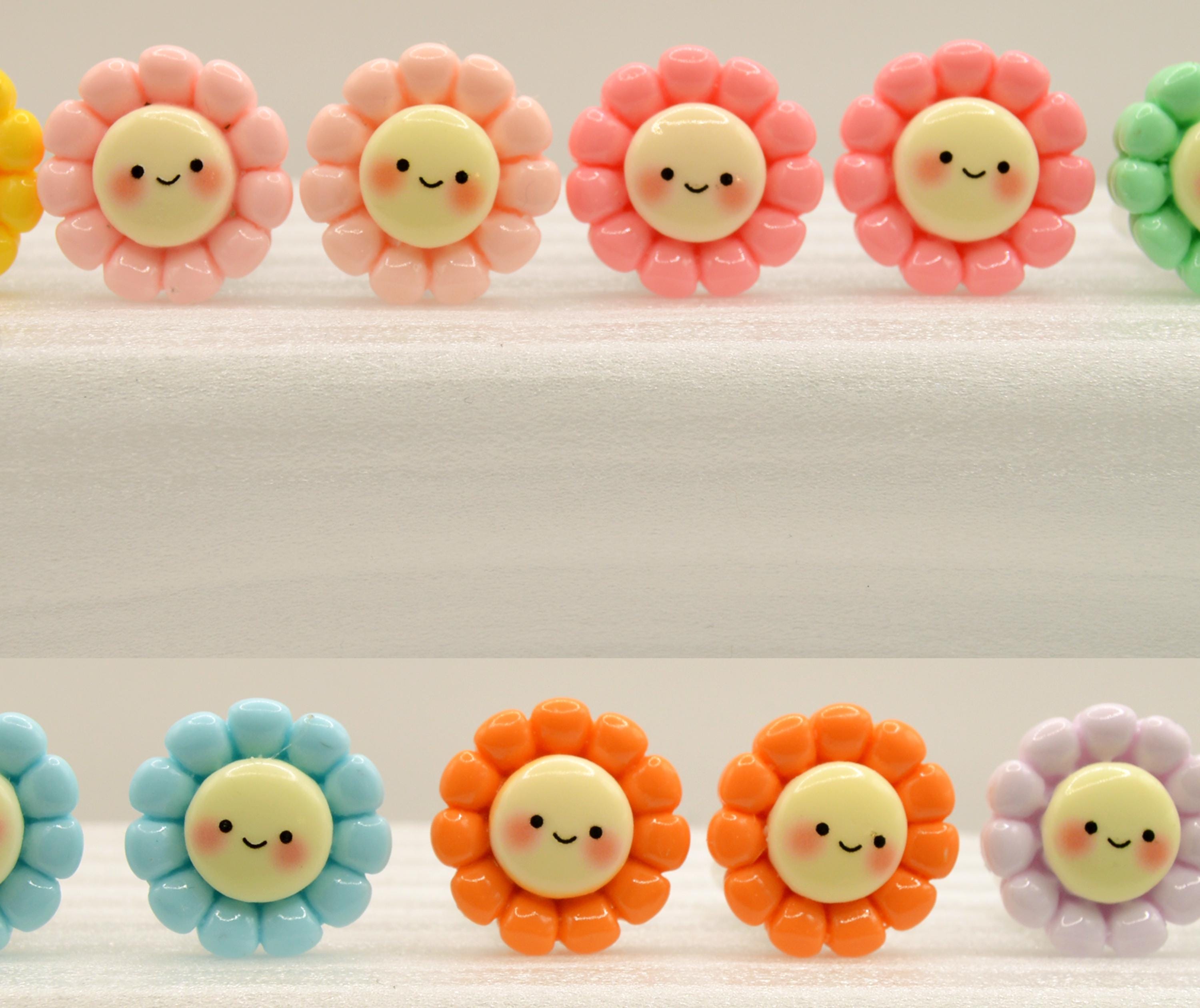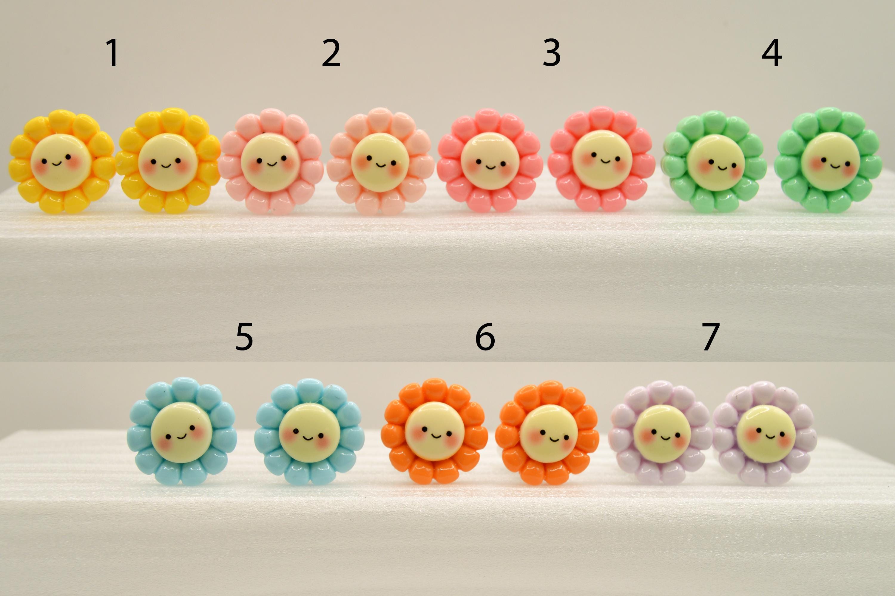 Adorable Smiling Flowers Clip-on Earrings in many colors to choose from.