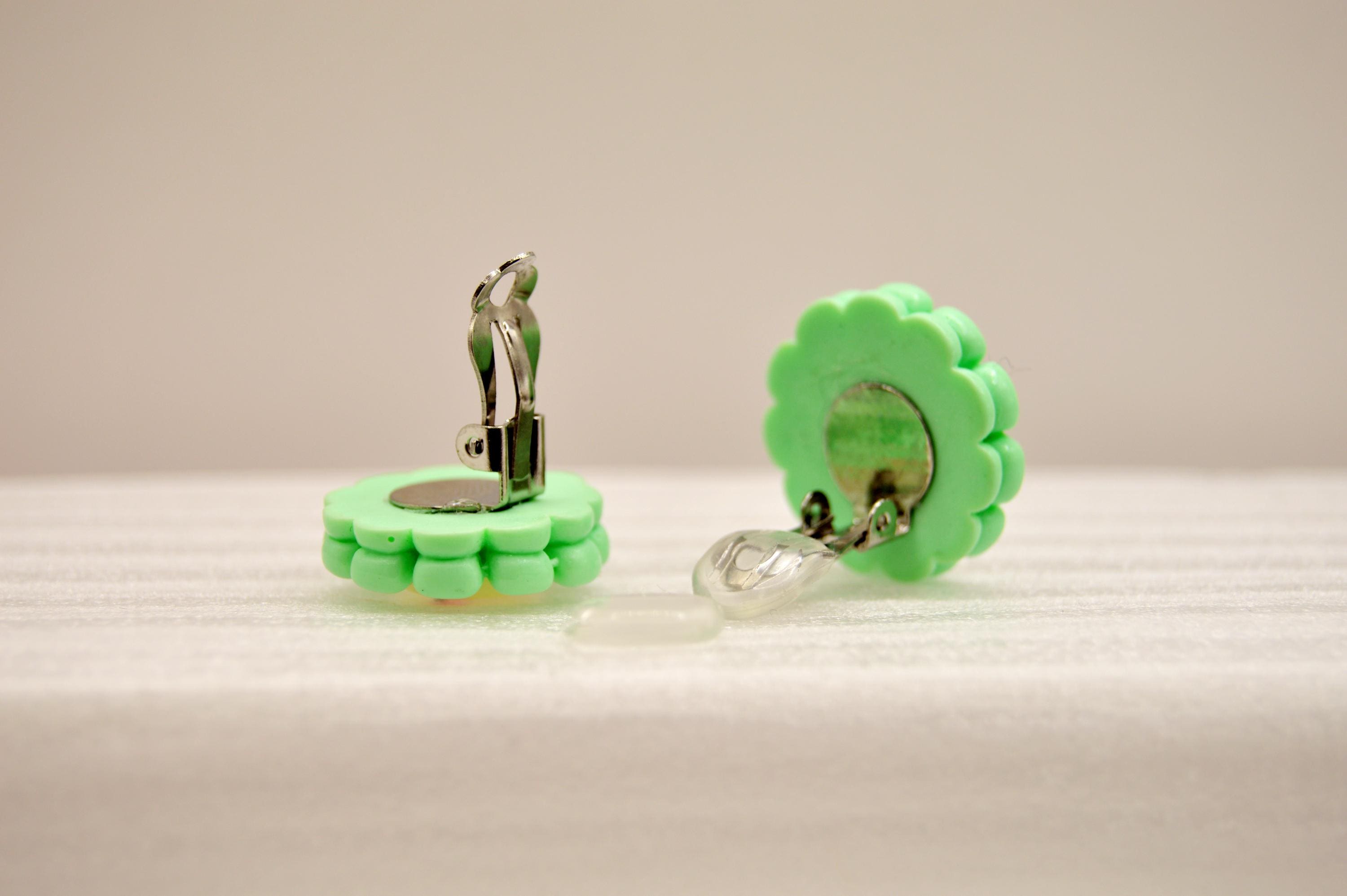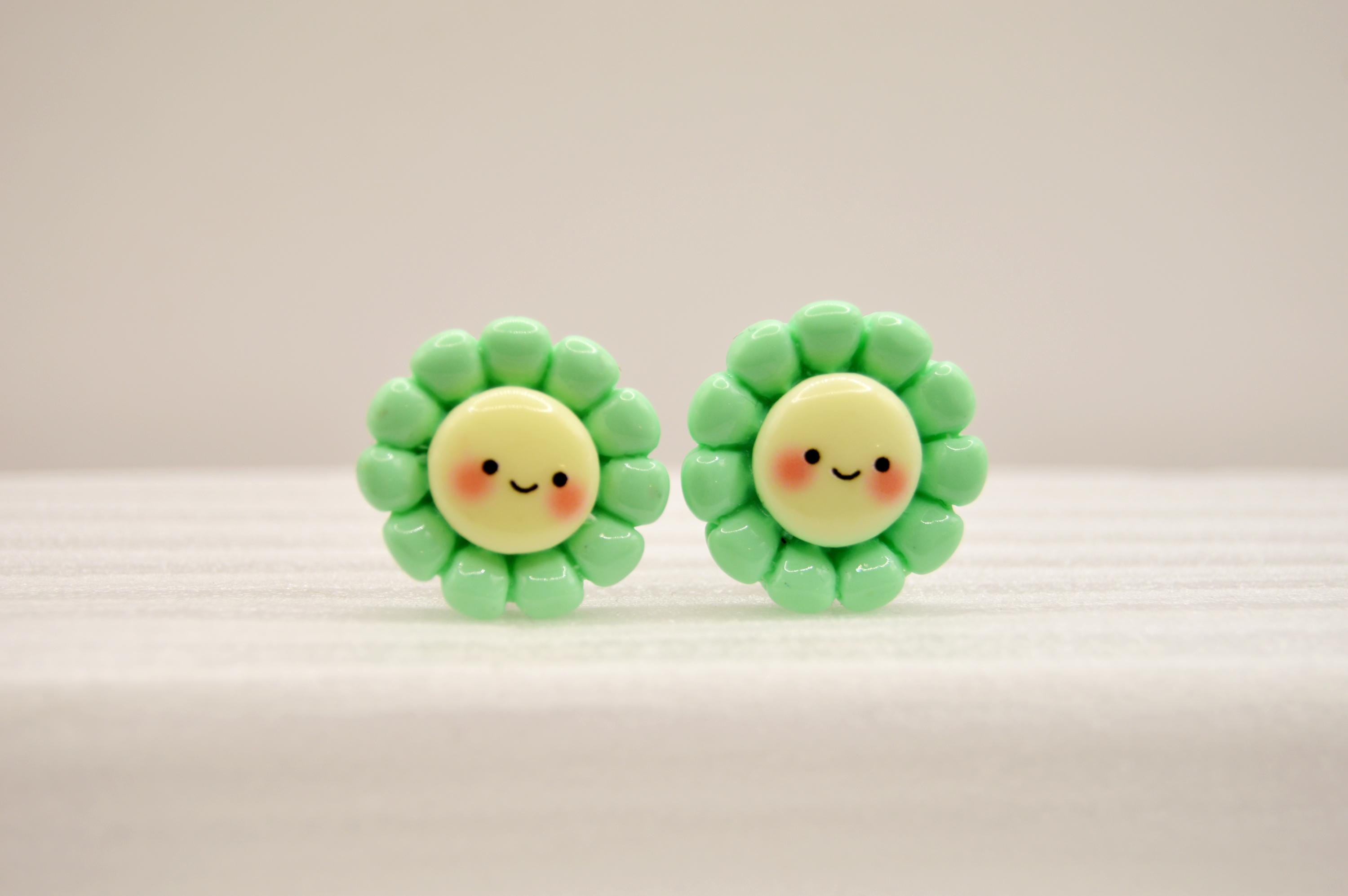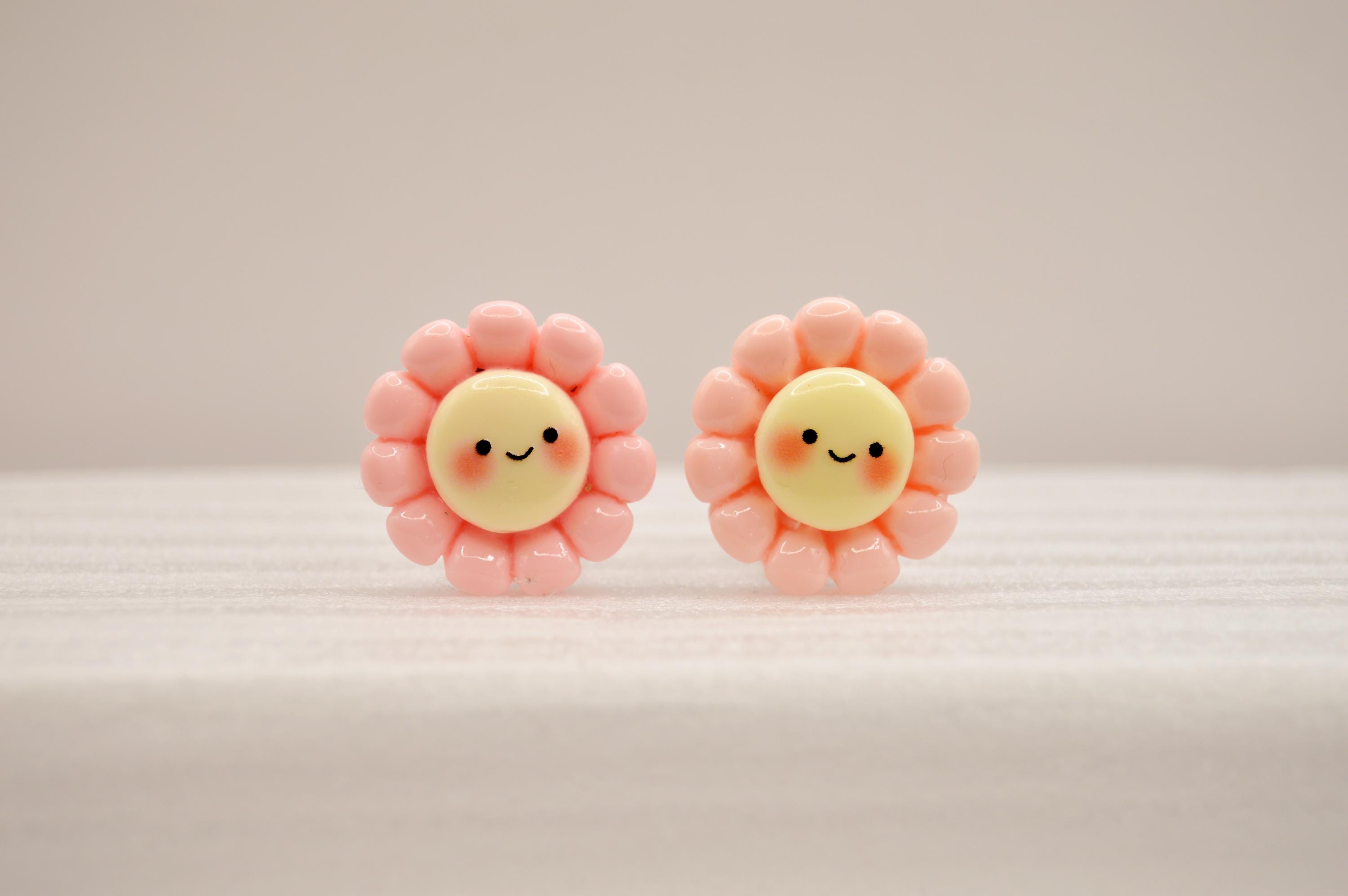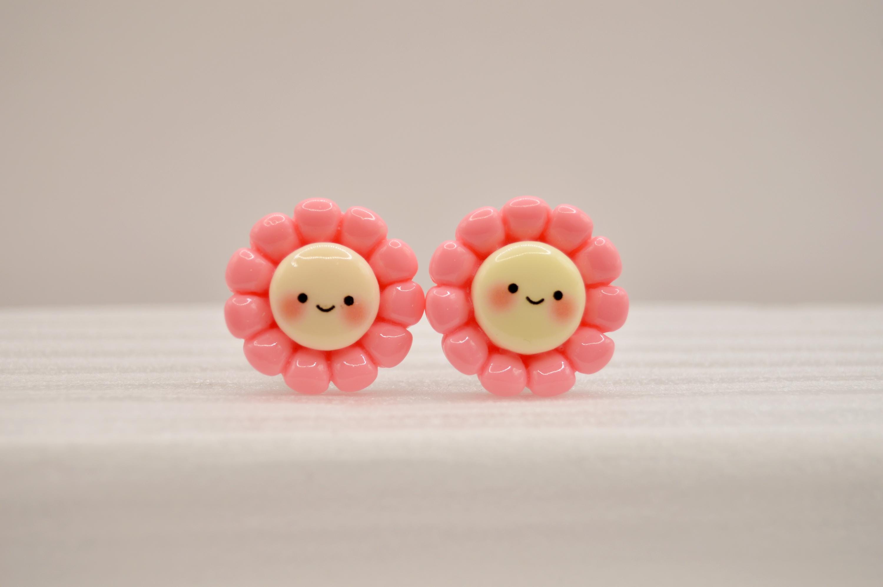 Adorable Smiling Flowers Clip-on Earrings in many colors to choose from.