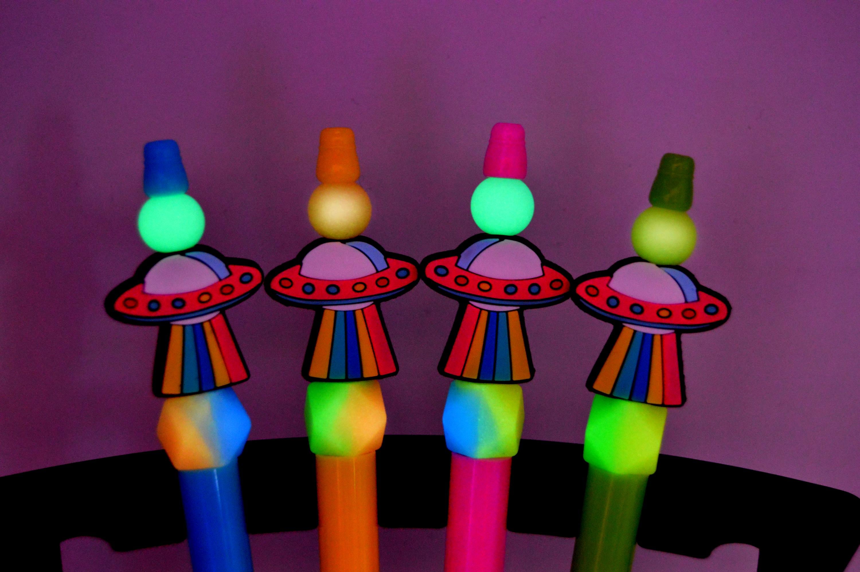 Fun and Colorful, Rainbow UFO pens that glow in the dark!