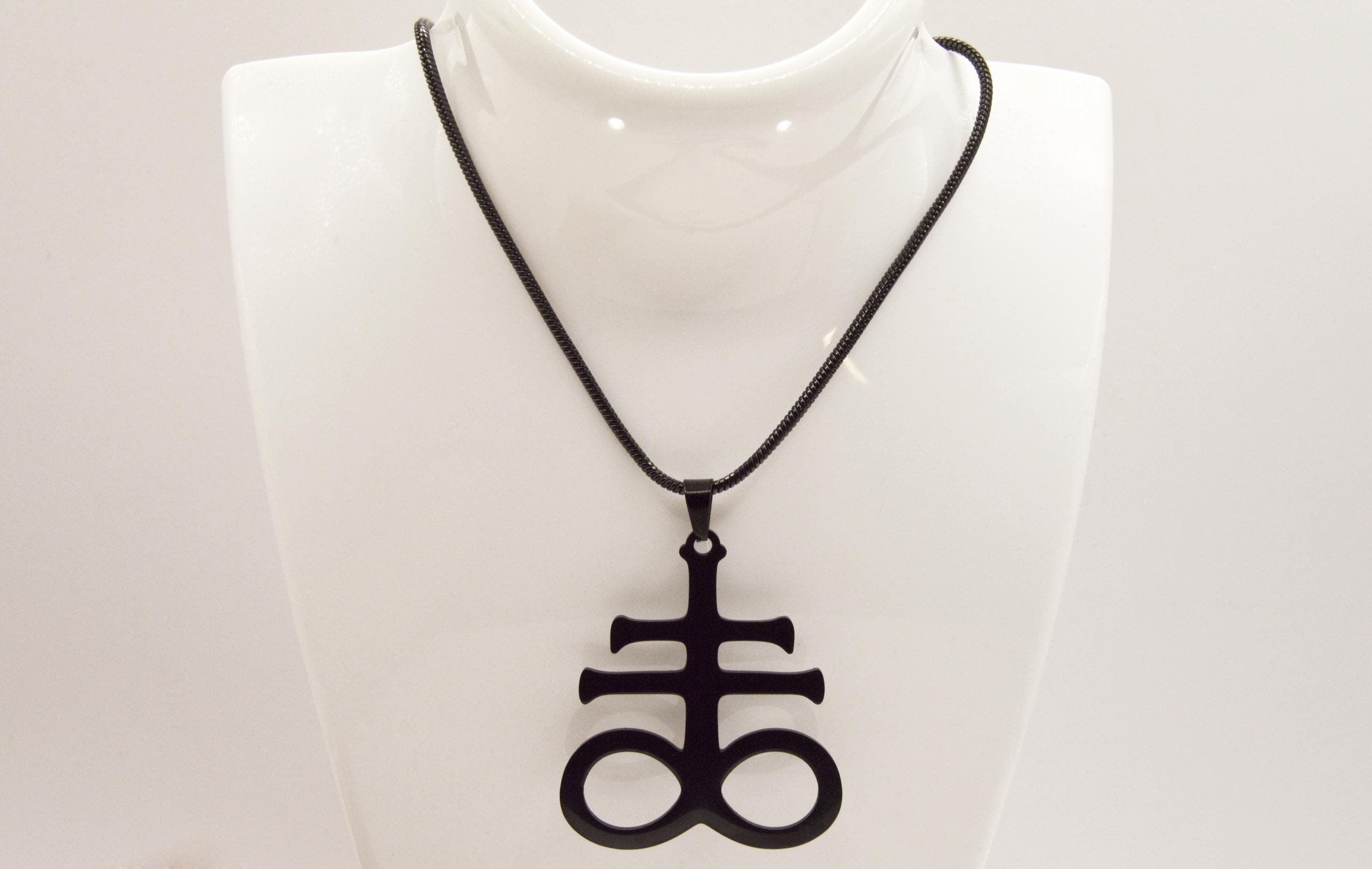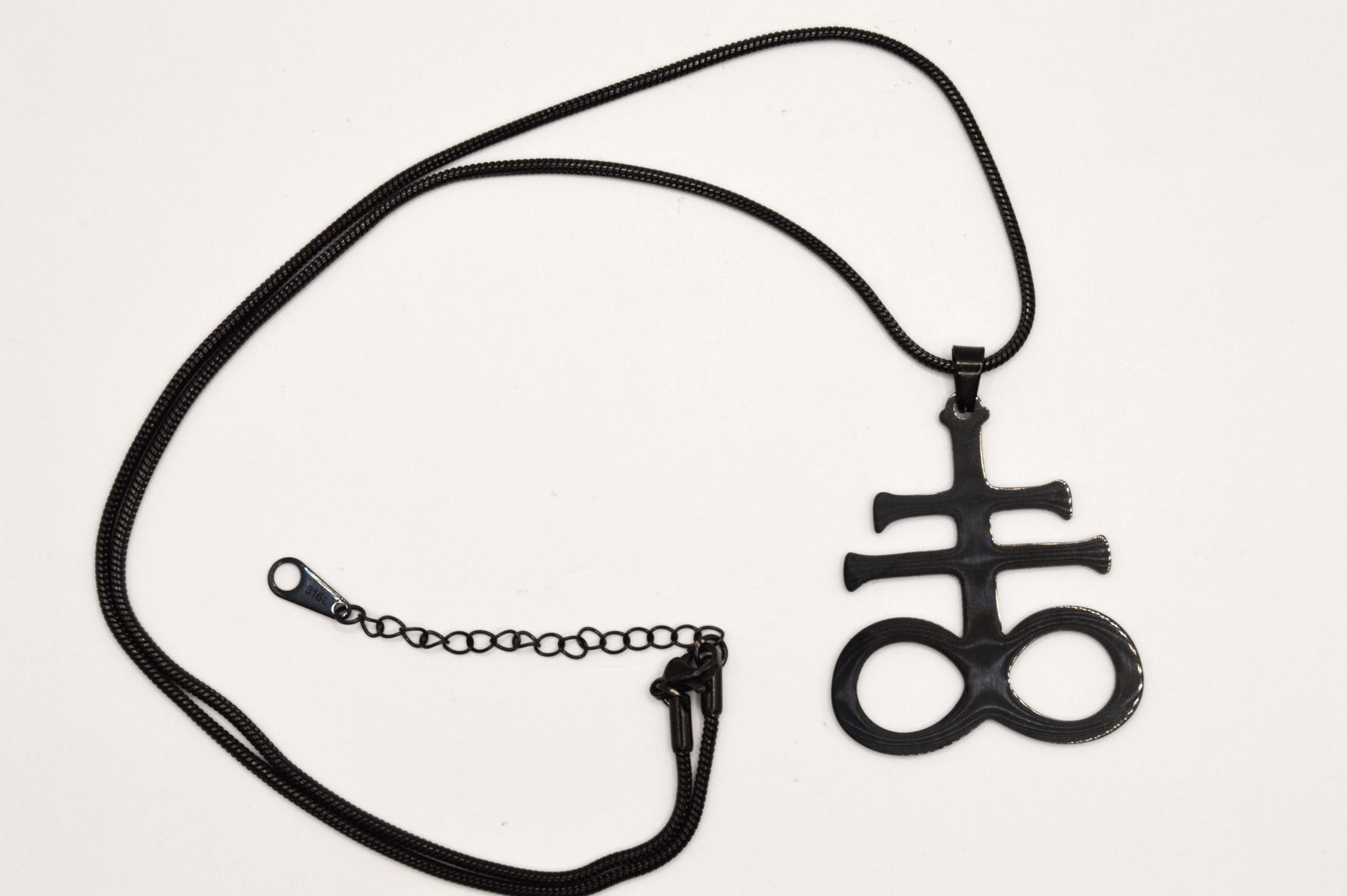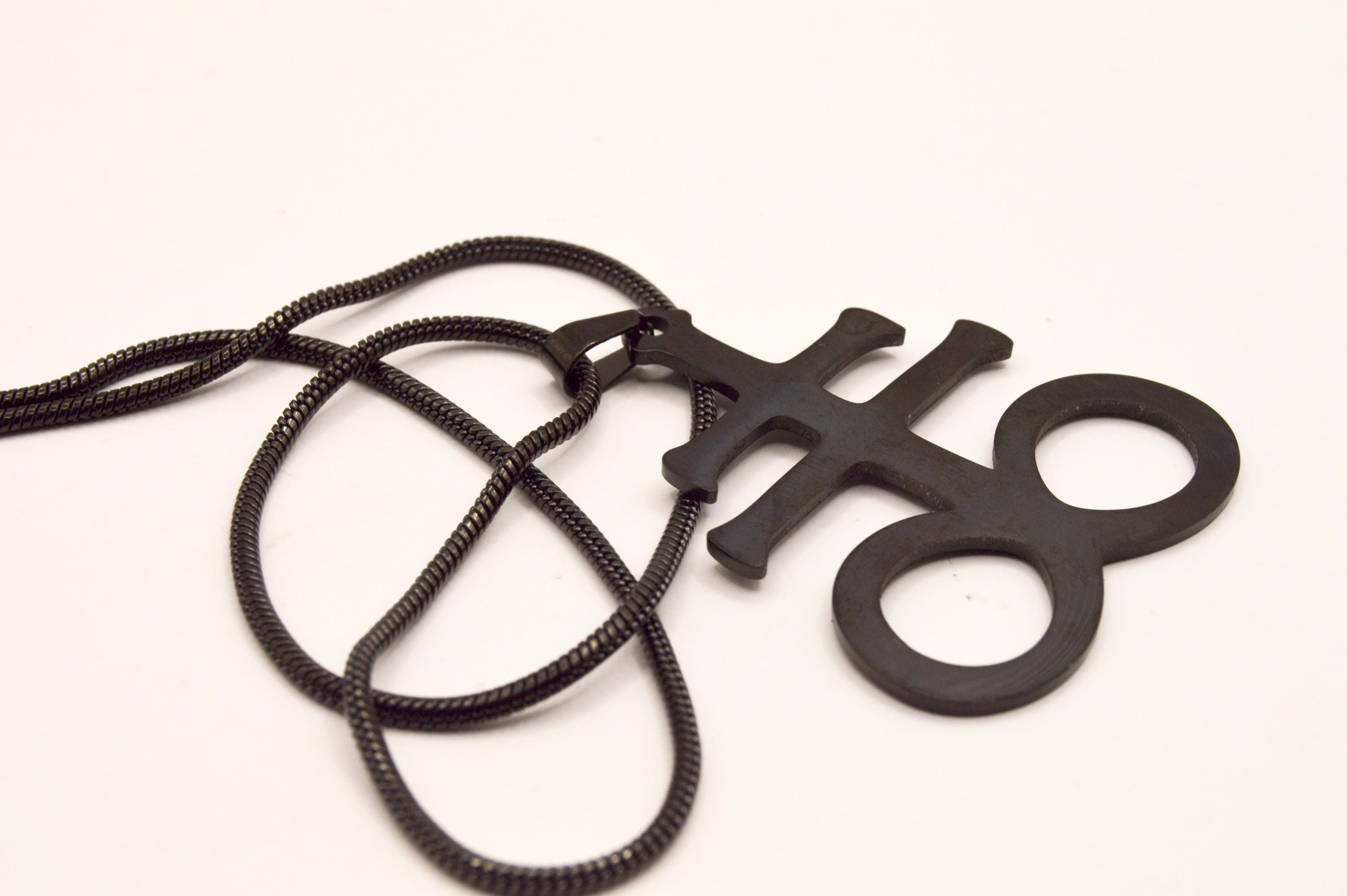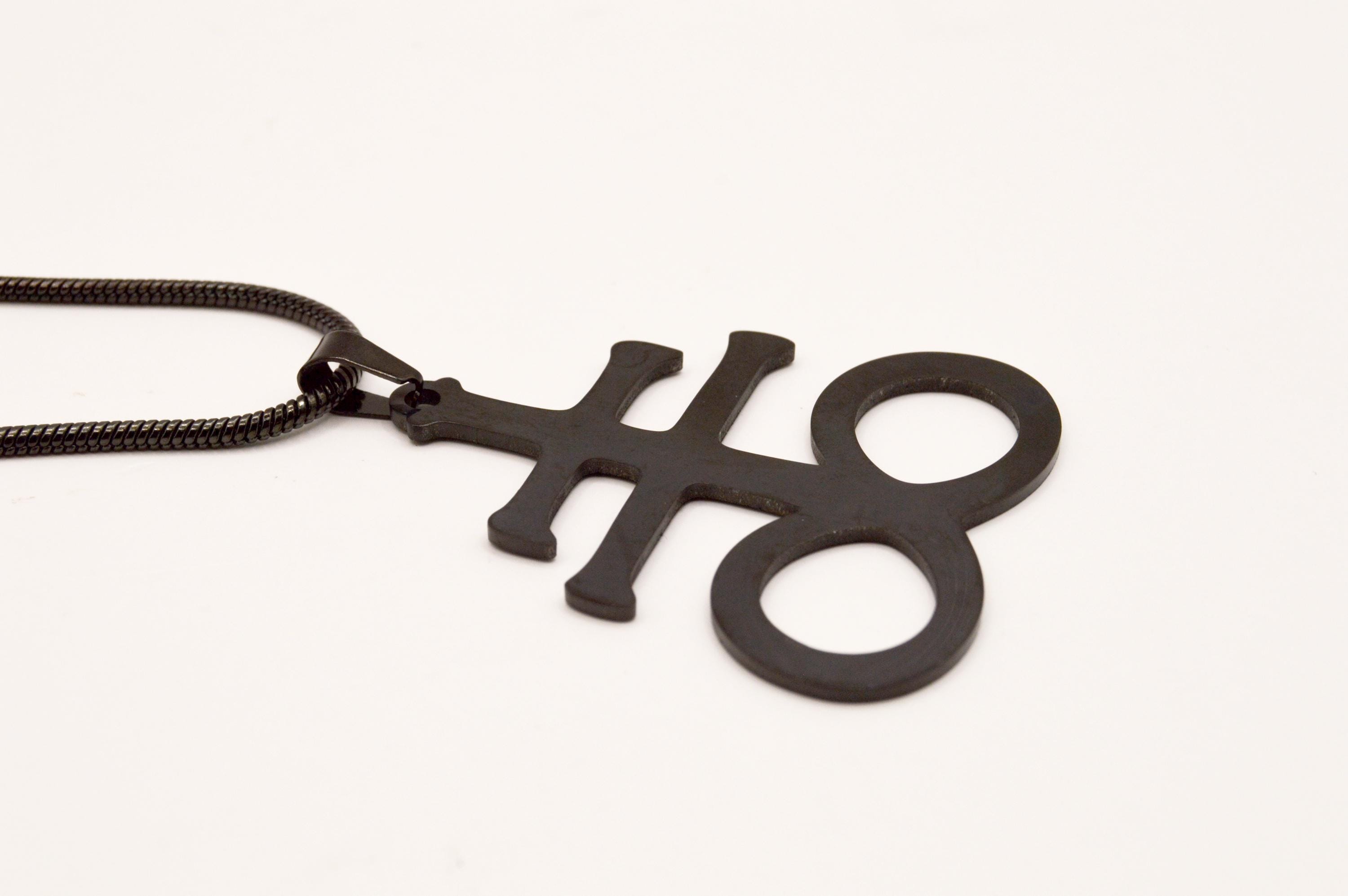This black stainless steel Leviathan Cross Necklace, is a symbol with diverse interpretations. A symbol of balance and protection between persons, as well as the eternal universe.