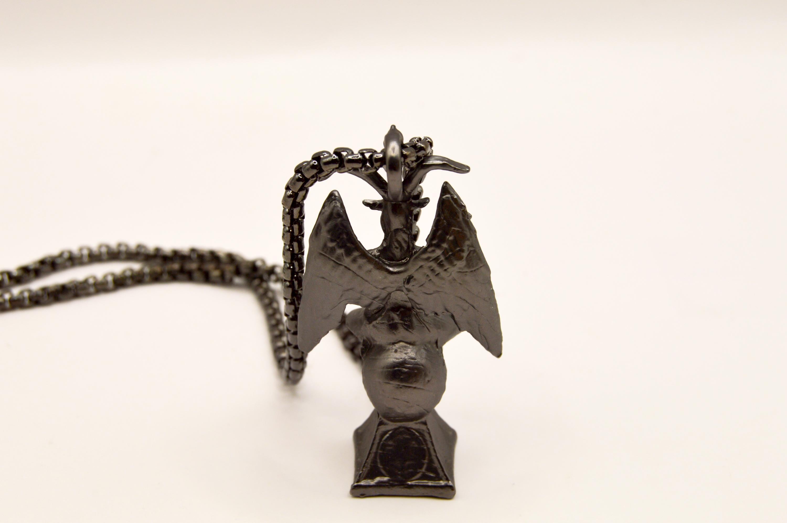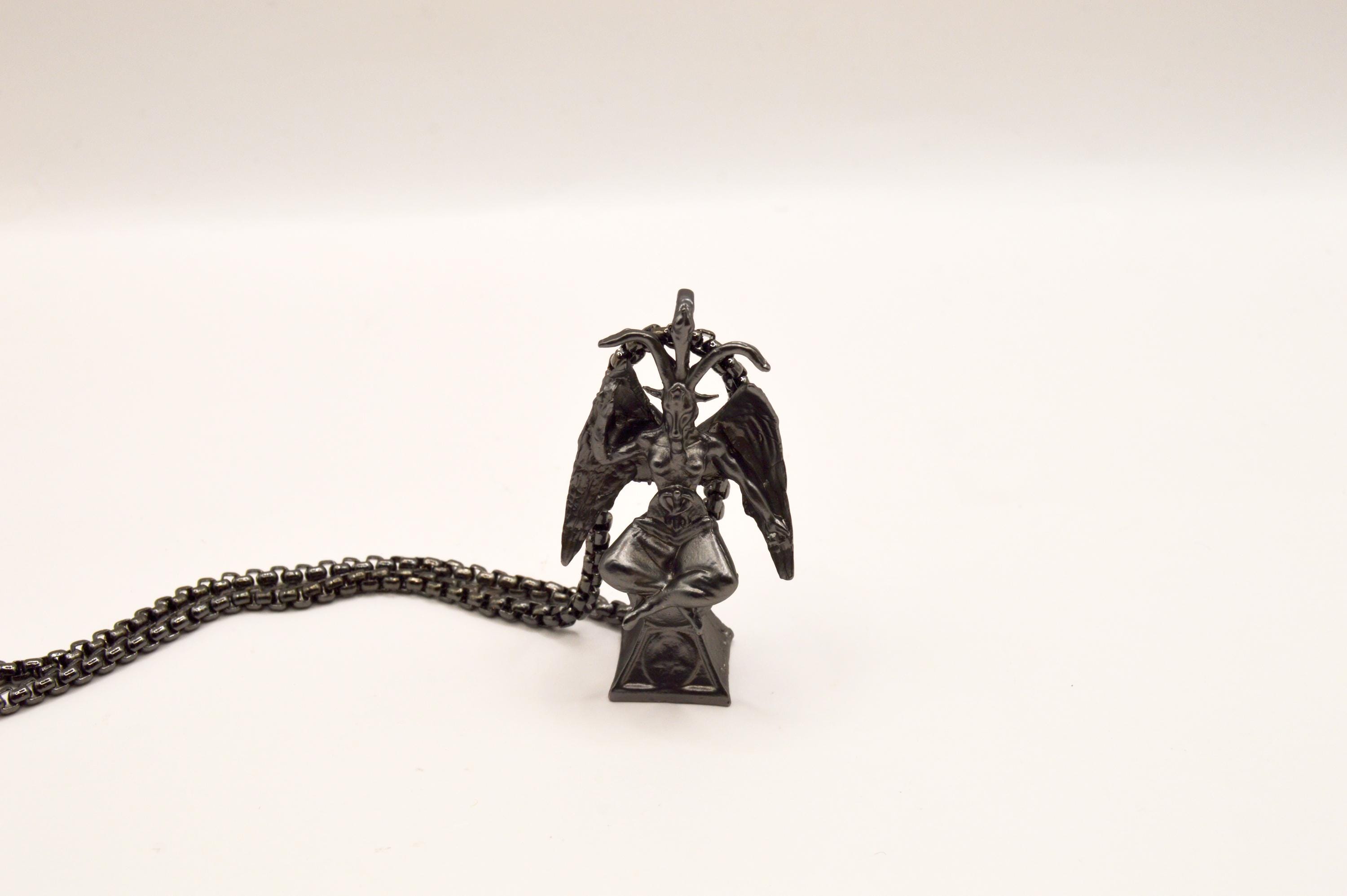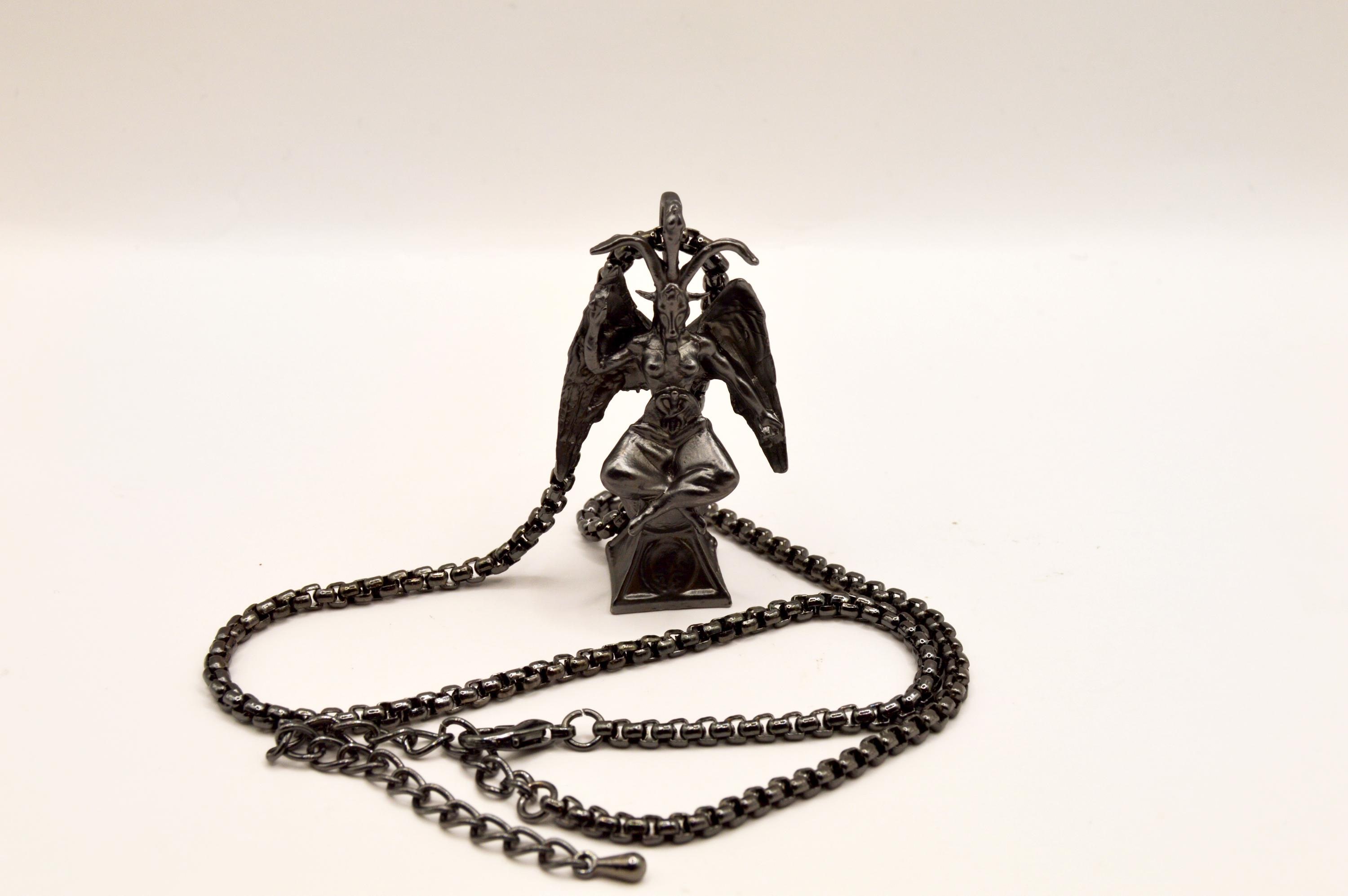 Unique Baphomet Statue Choker, on a gunmetal stainless steel box chain.
