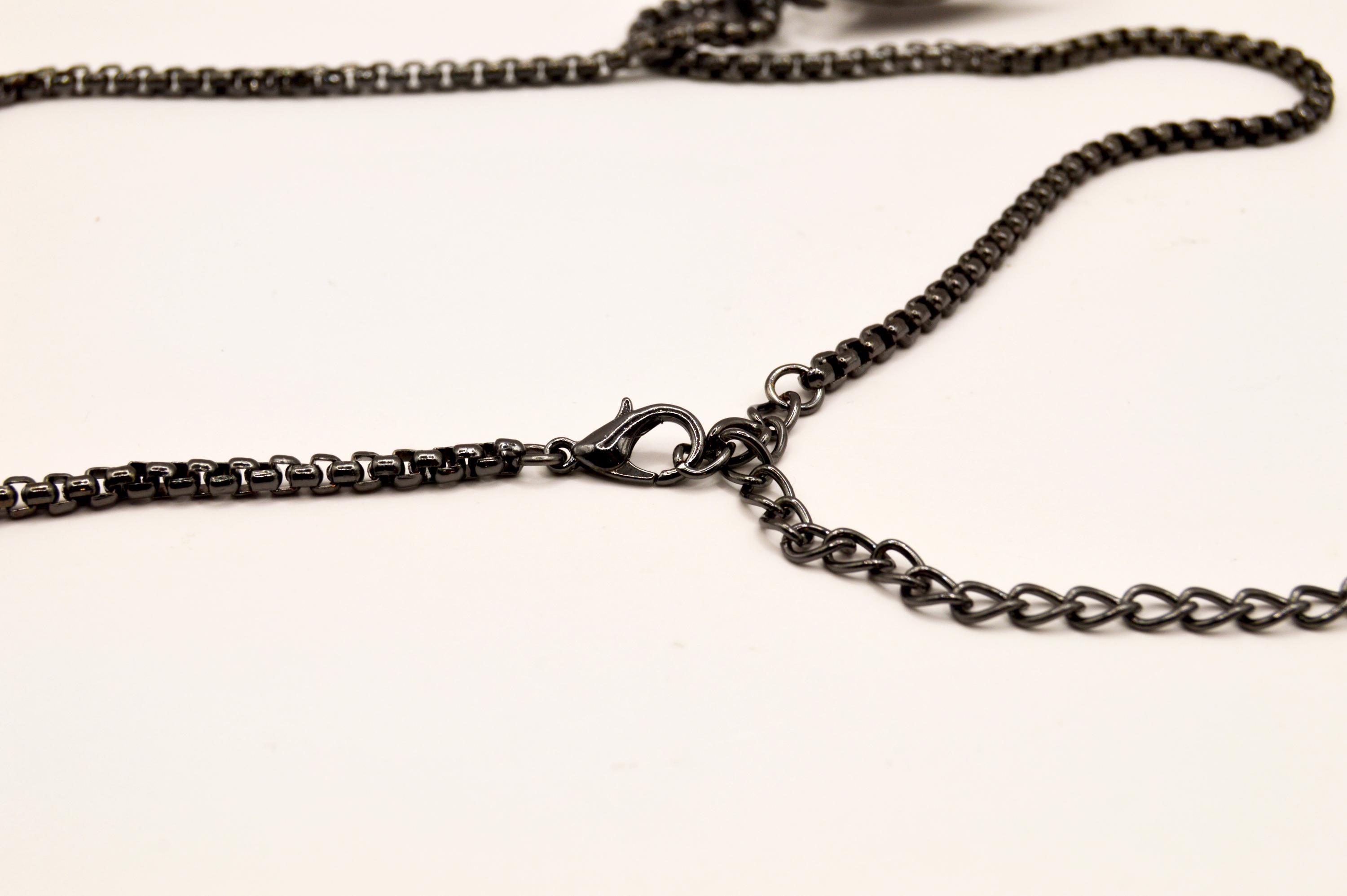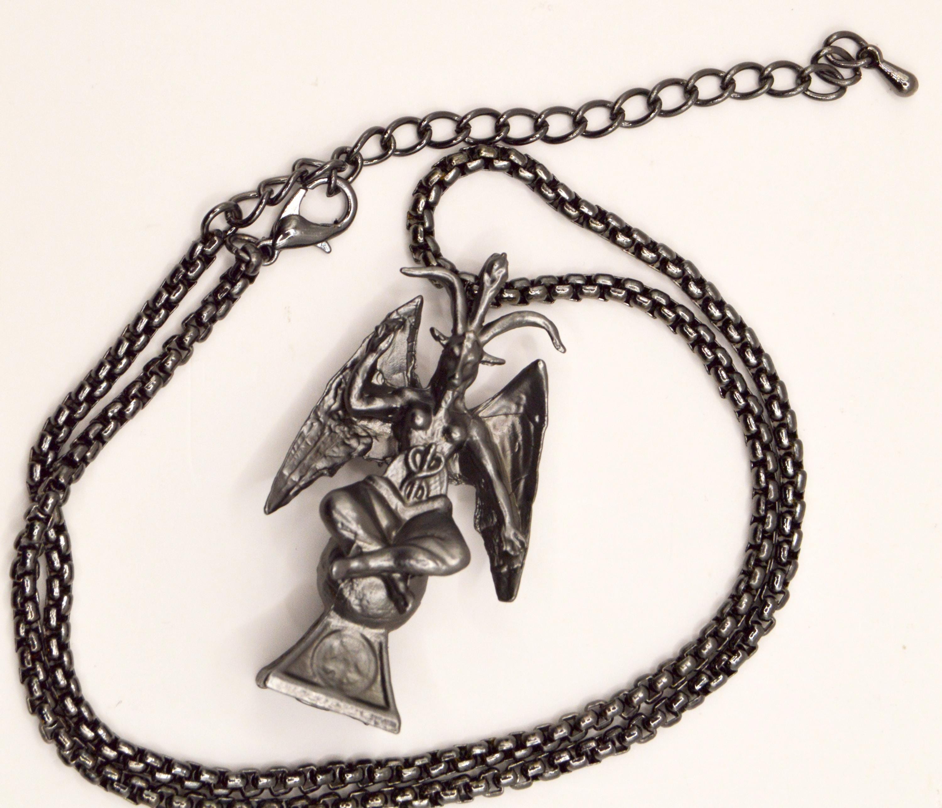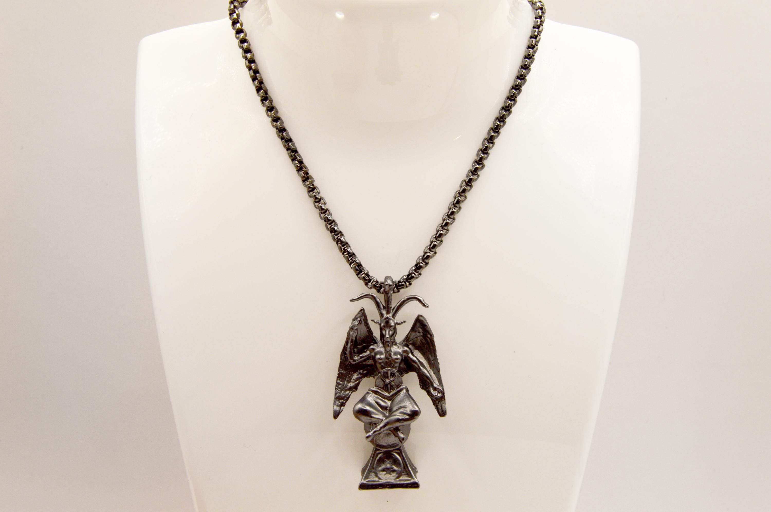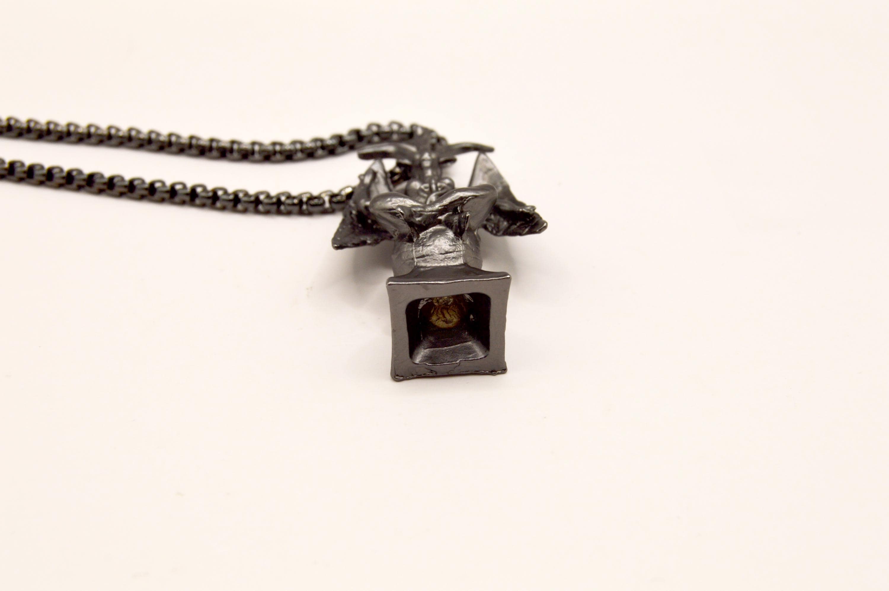 Unique Baphomet Statue Choker, on a gunmetal stainless steel box chain.