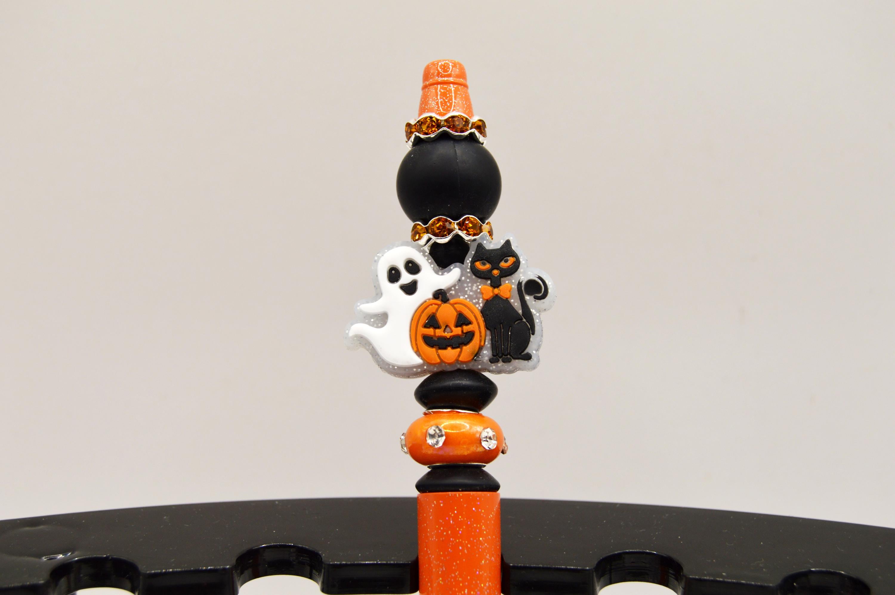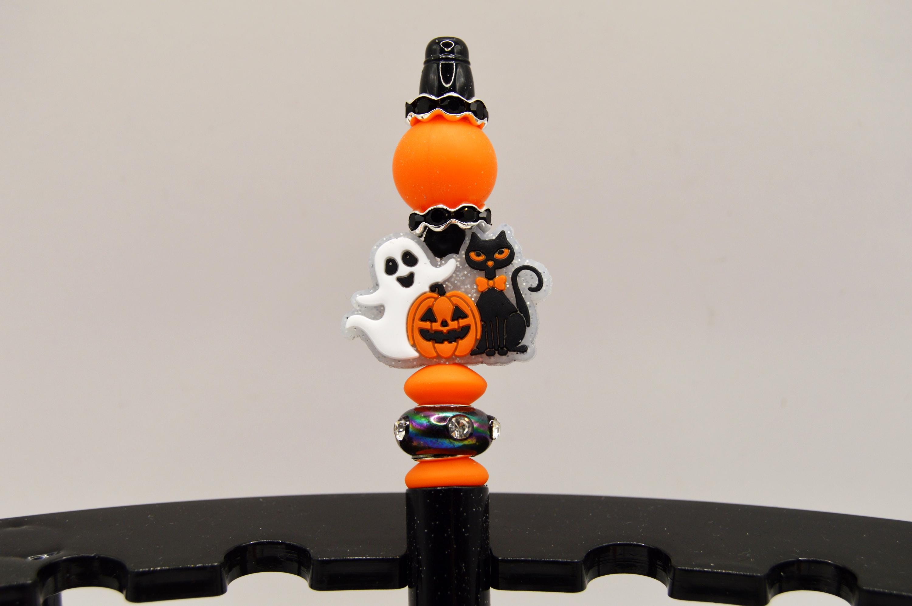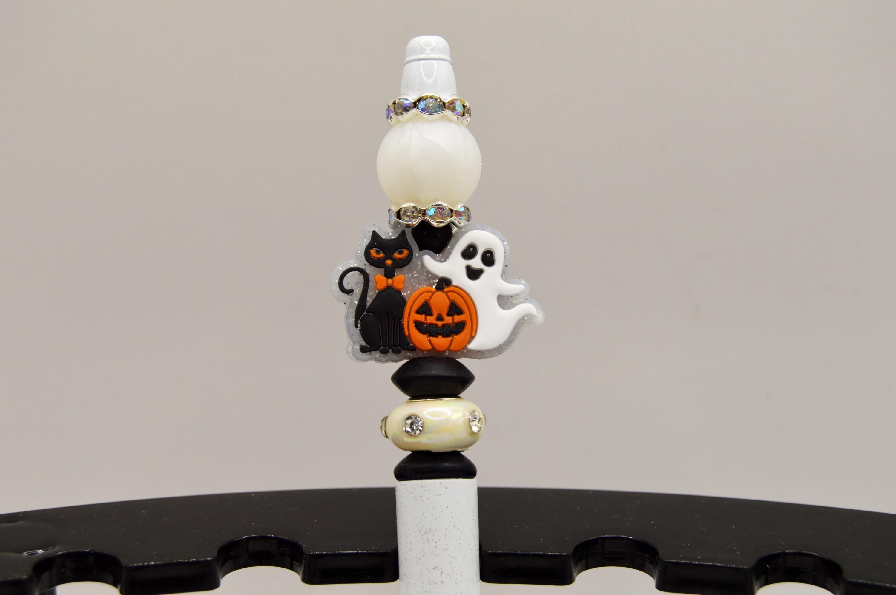 A Fun Ghost, Pumpkin and Cat, glitter pen with black ink.