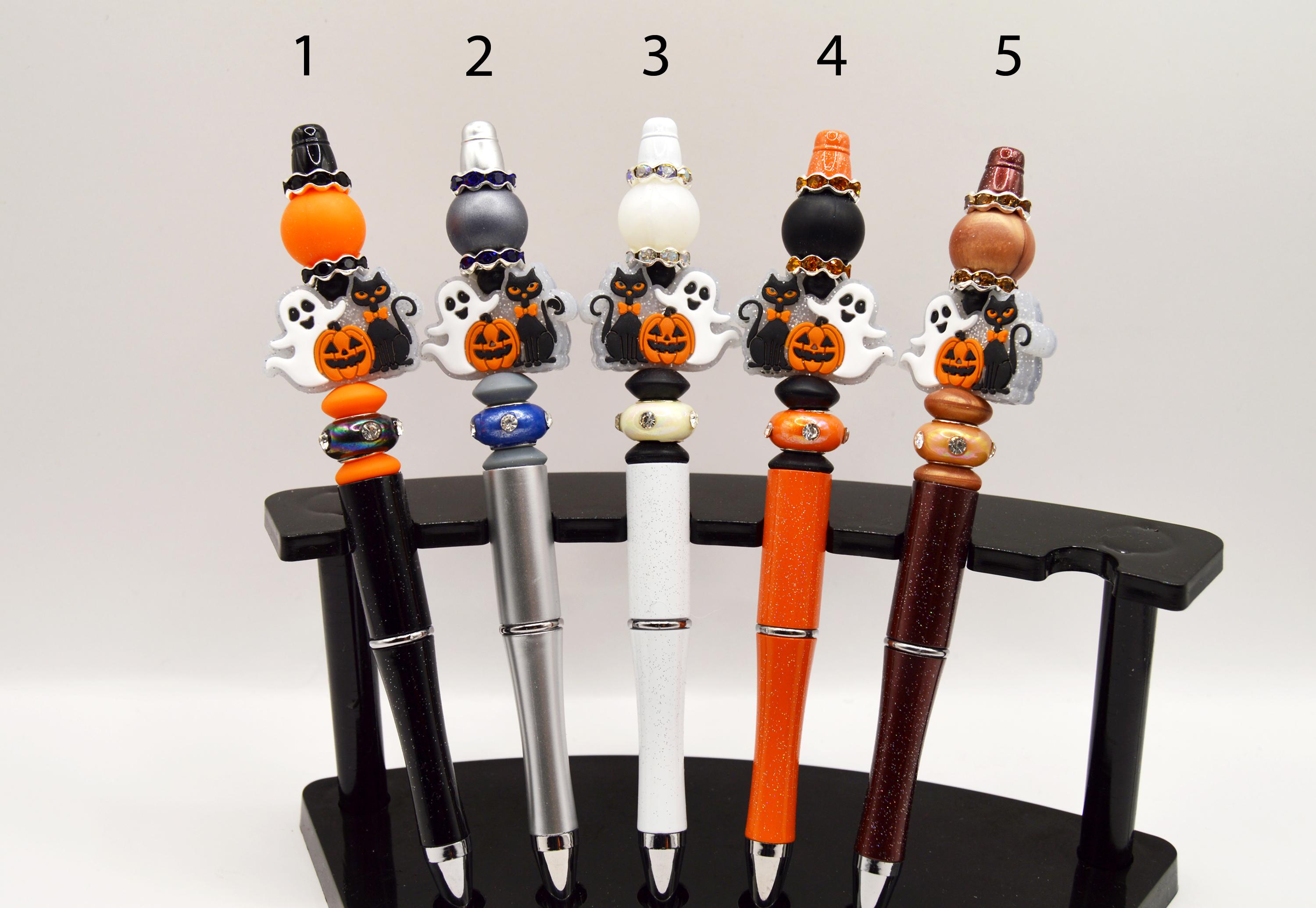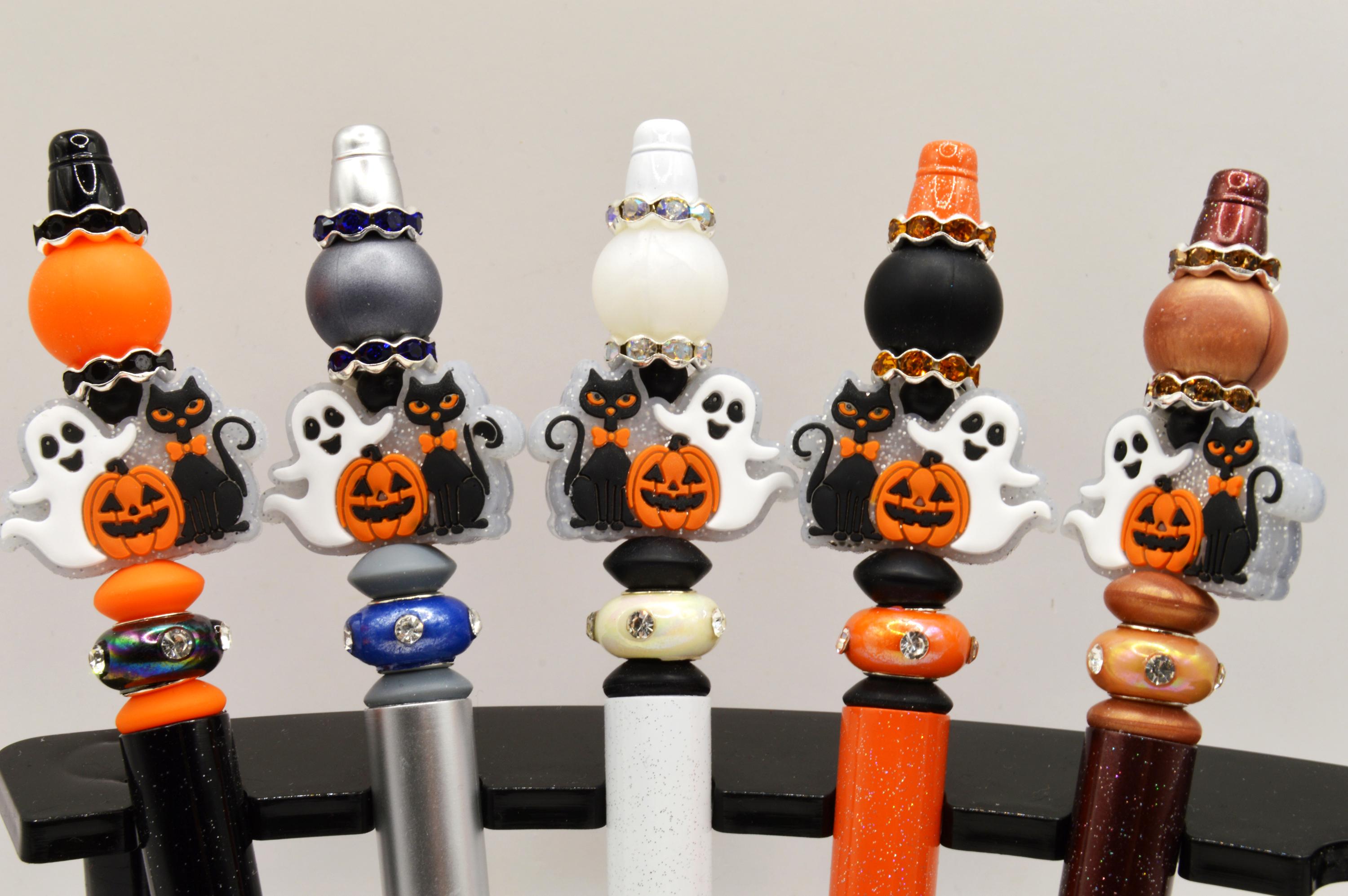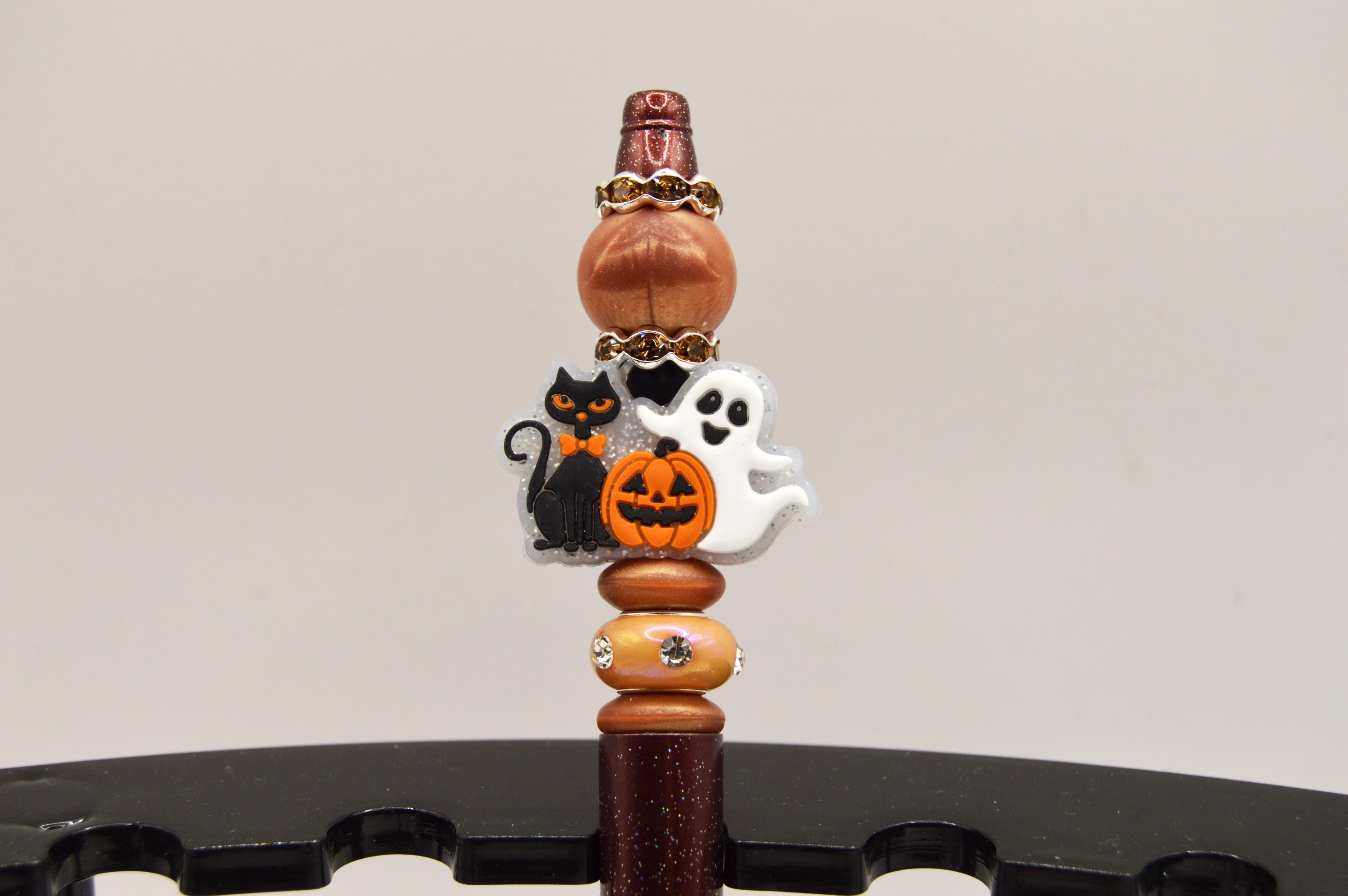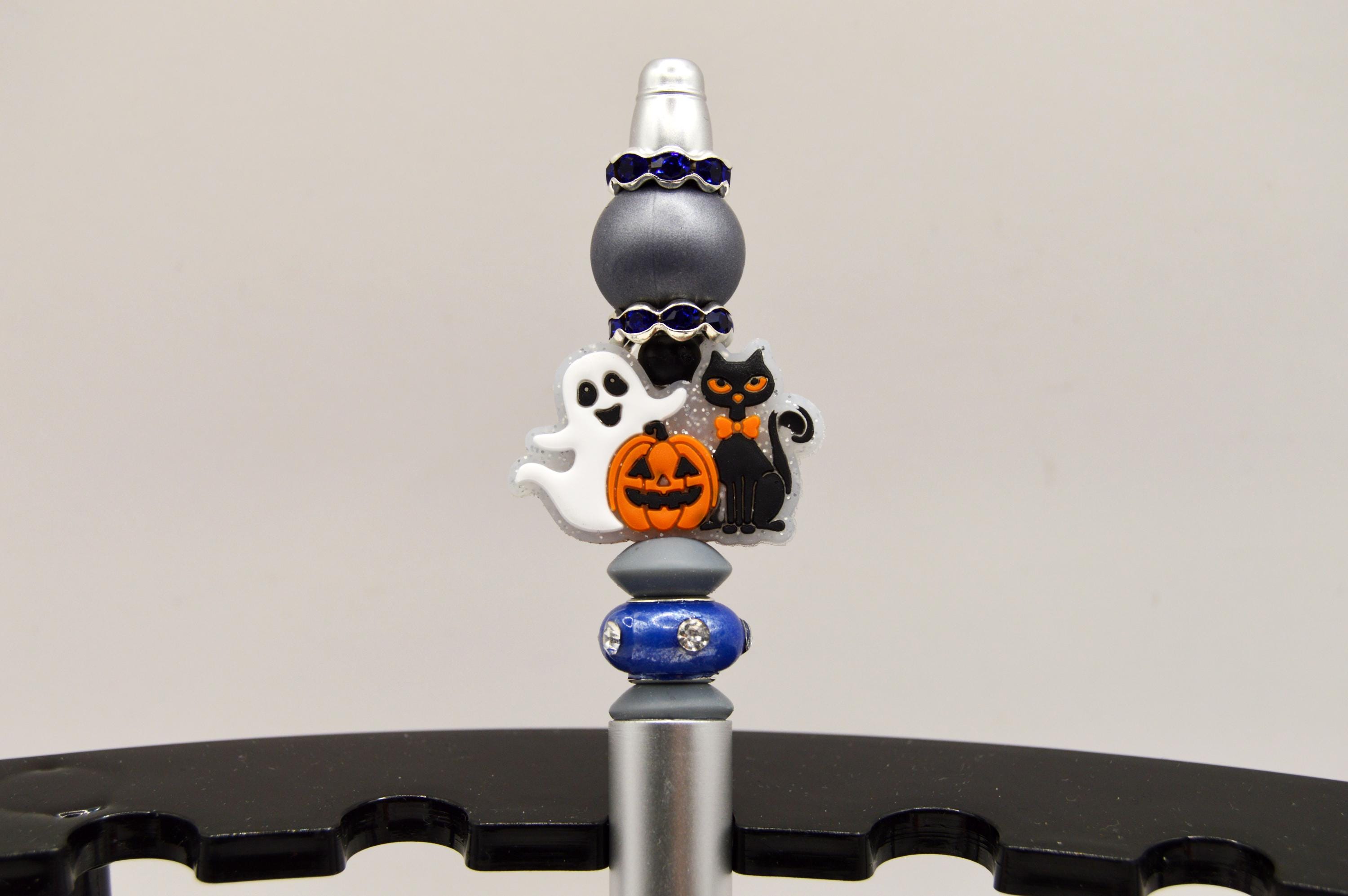 A Fun Ghost, Pumpkin and Cat, glitter pen with black ink.