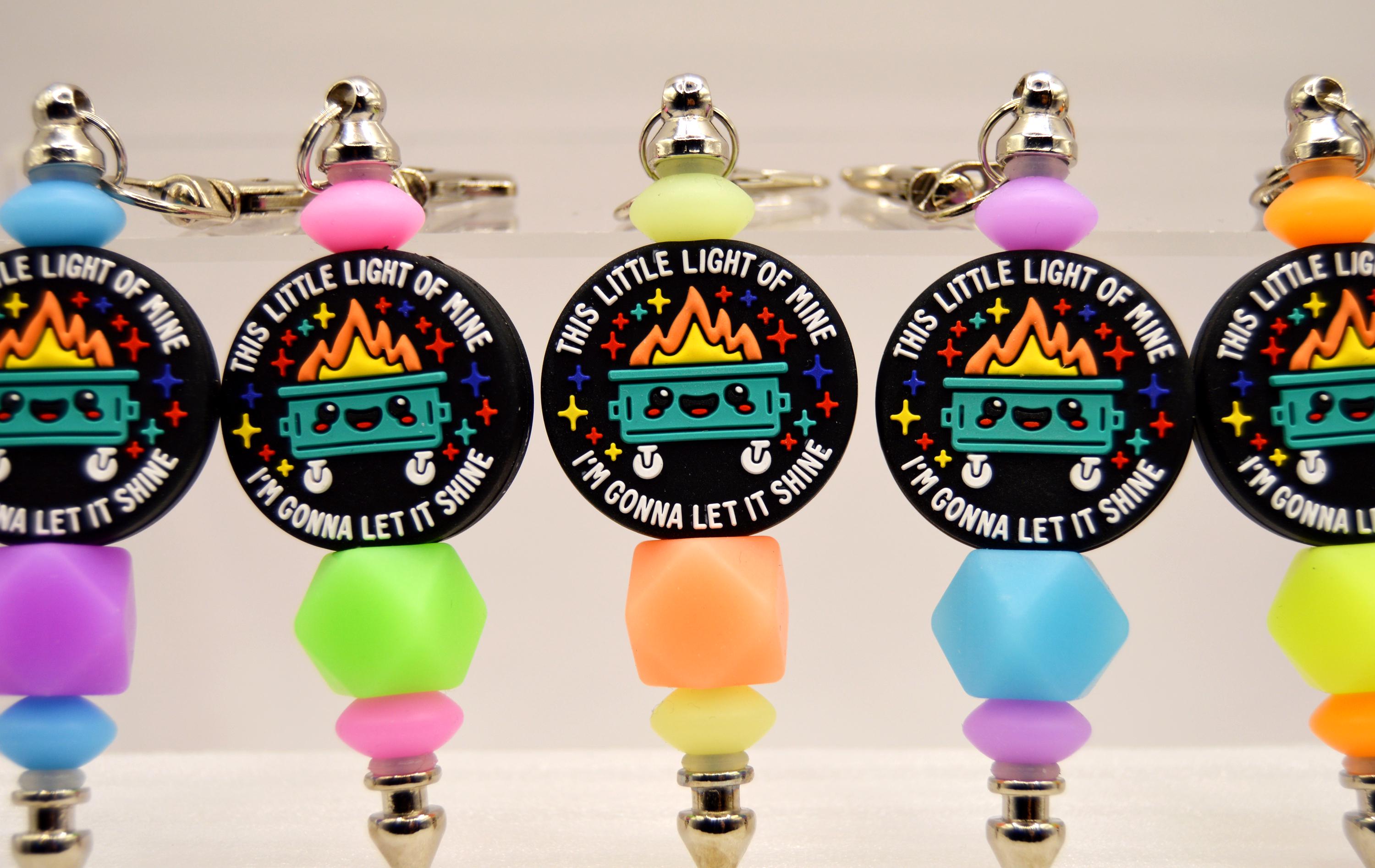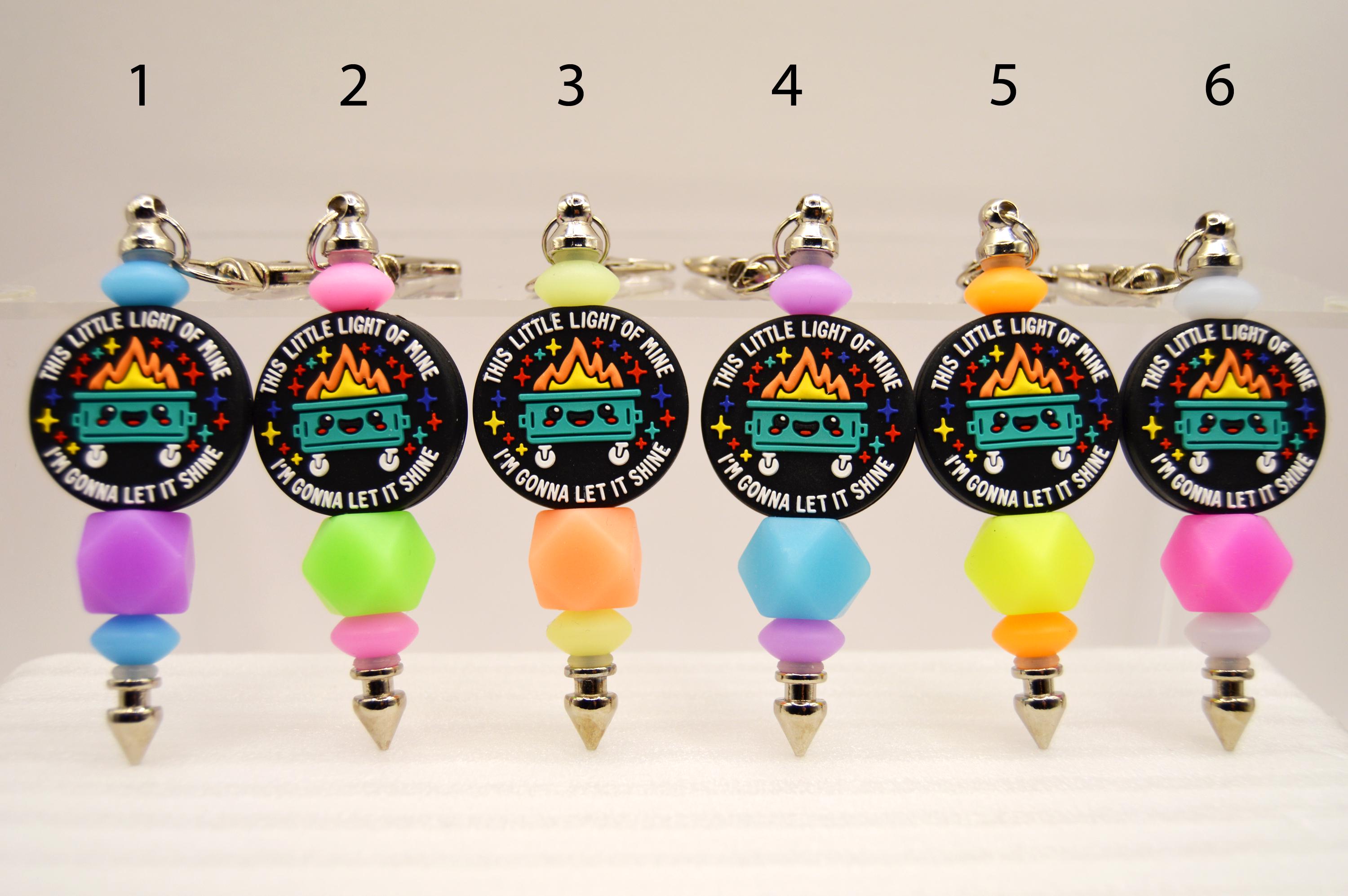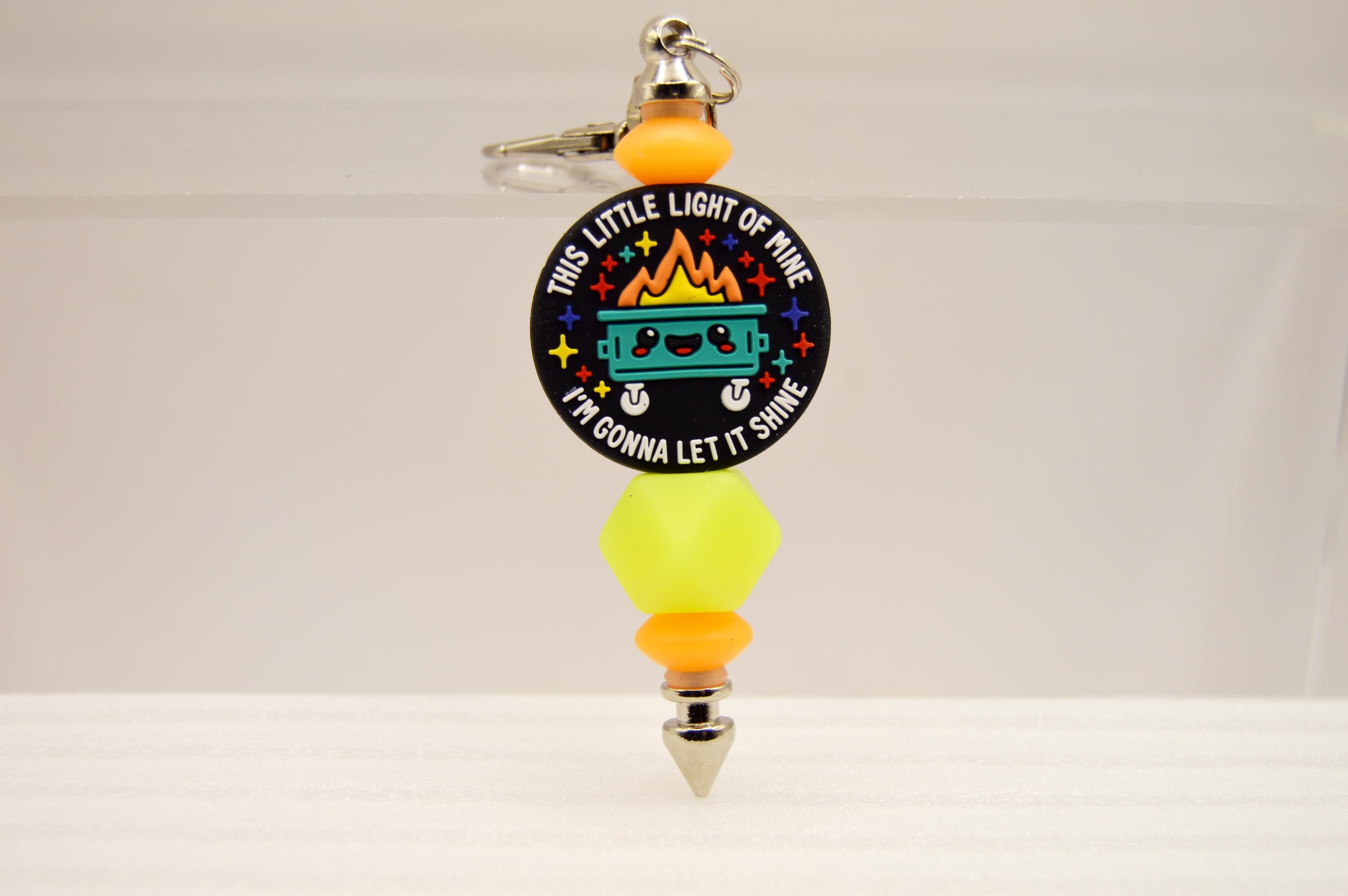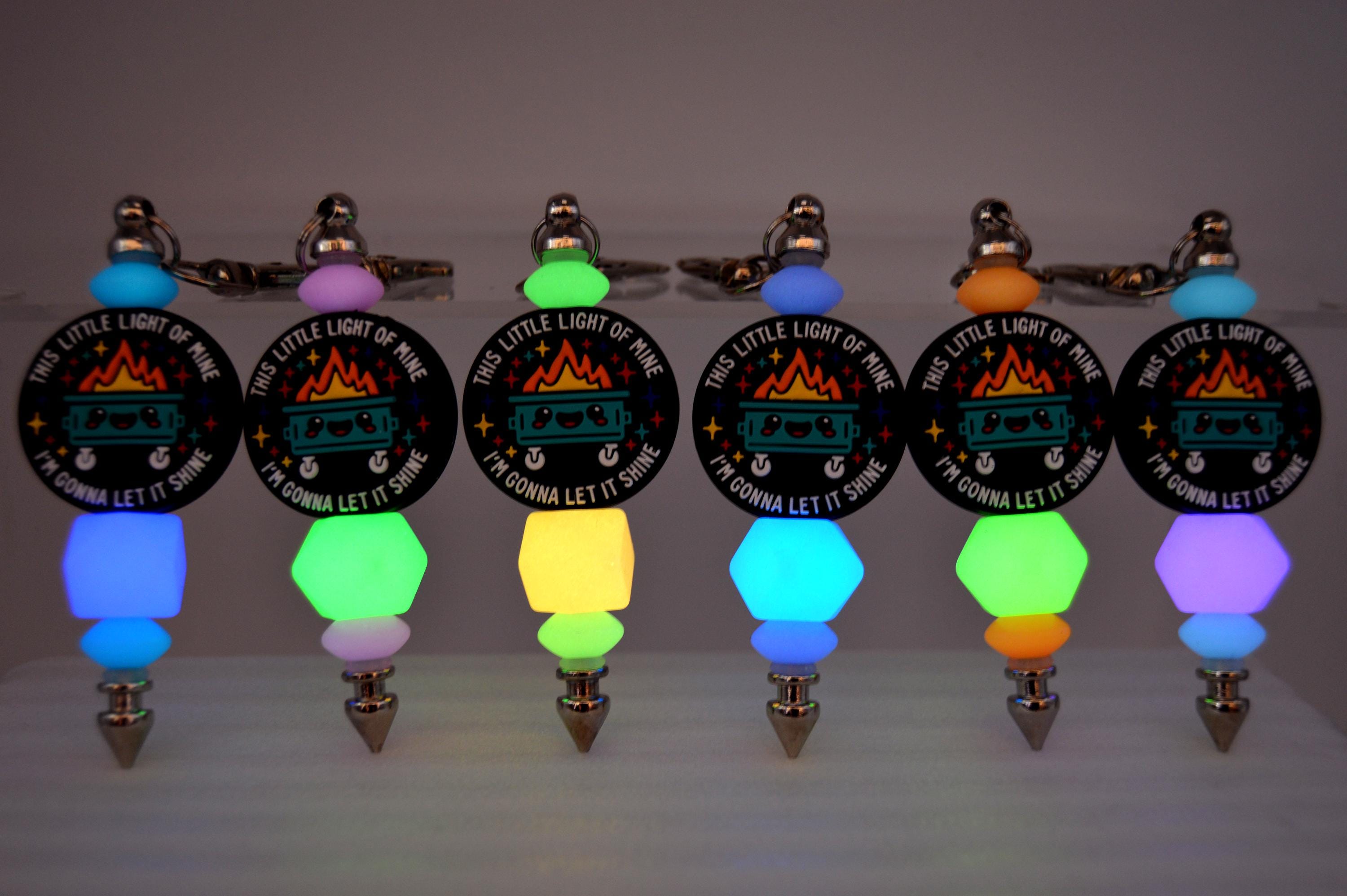 What a fun way to start your day! "This little light of mine, I'm going to let it shine" glow in the dark, key chain or bag clip