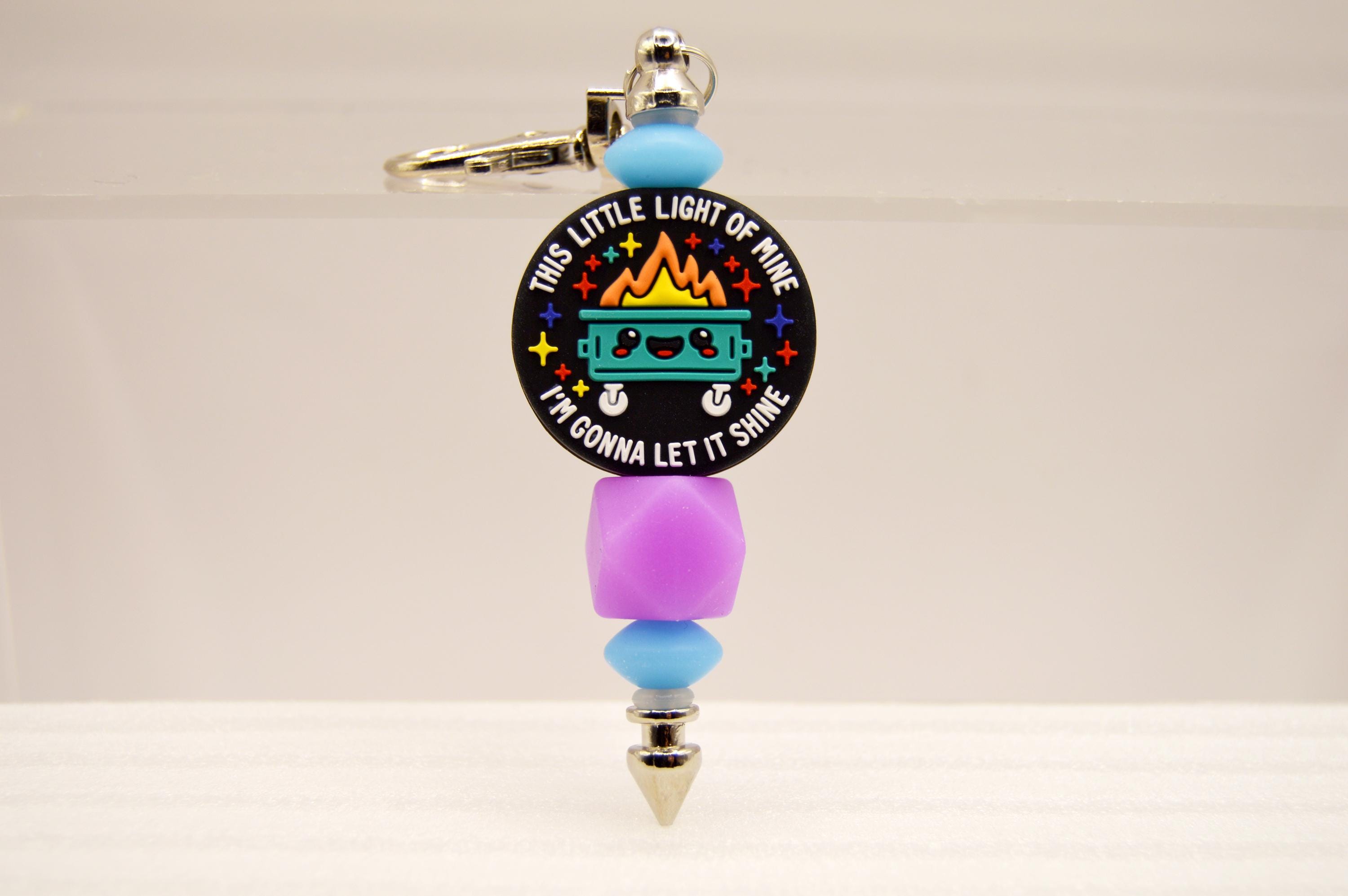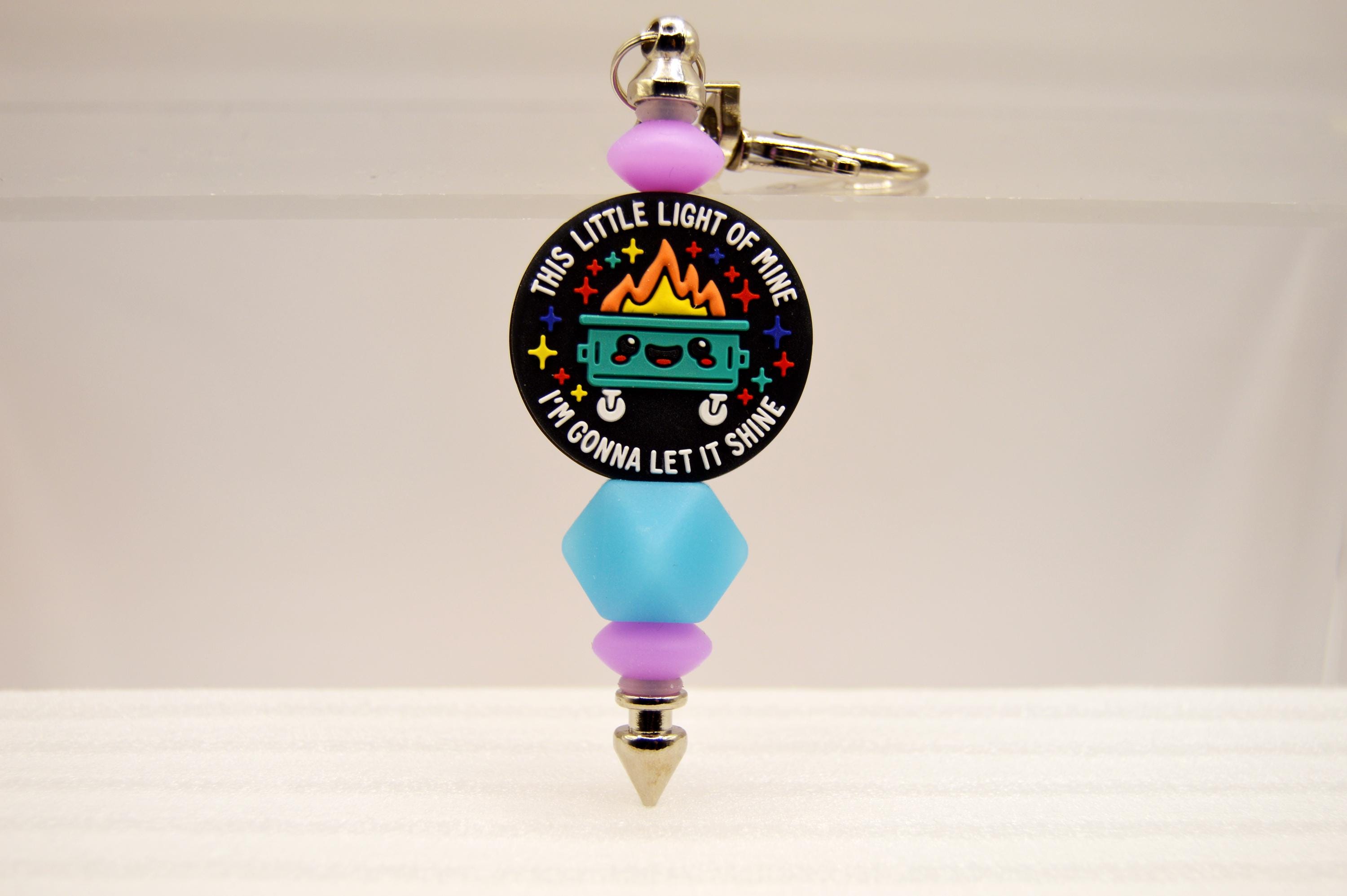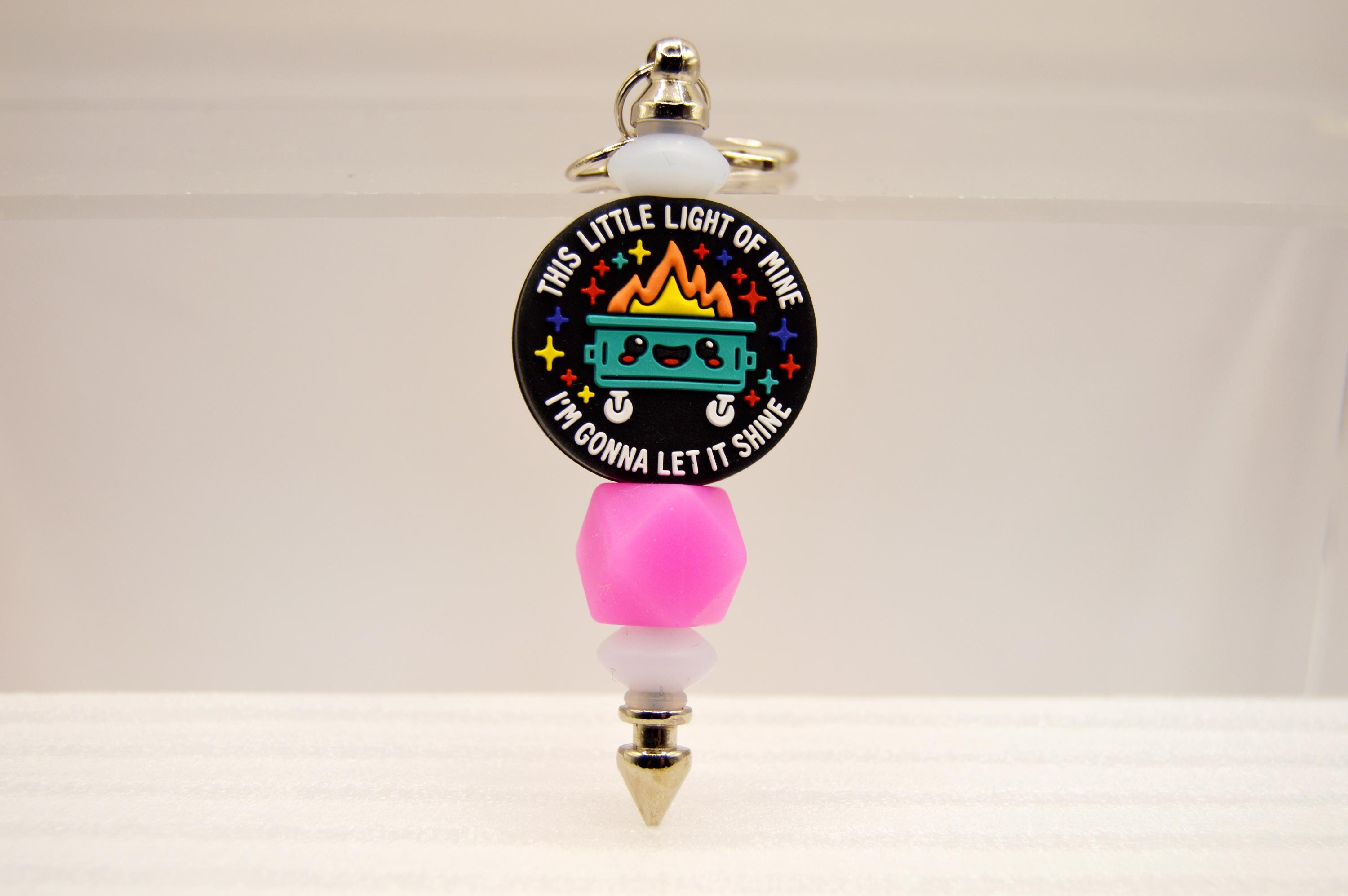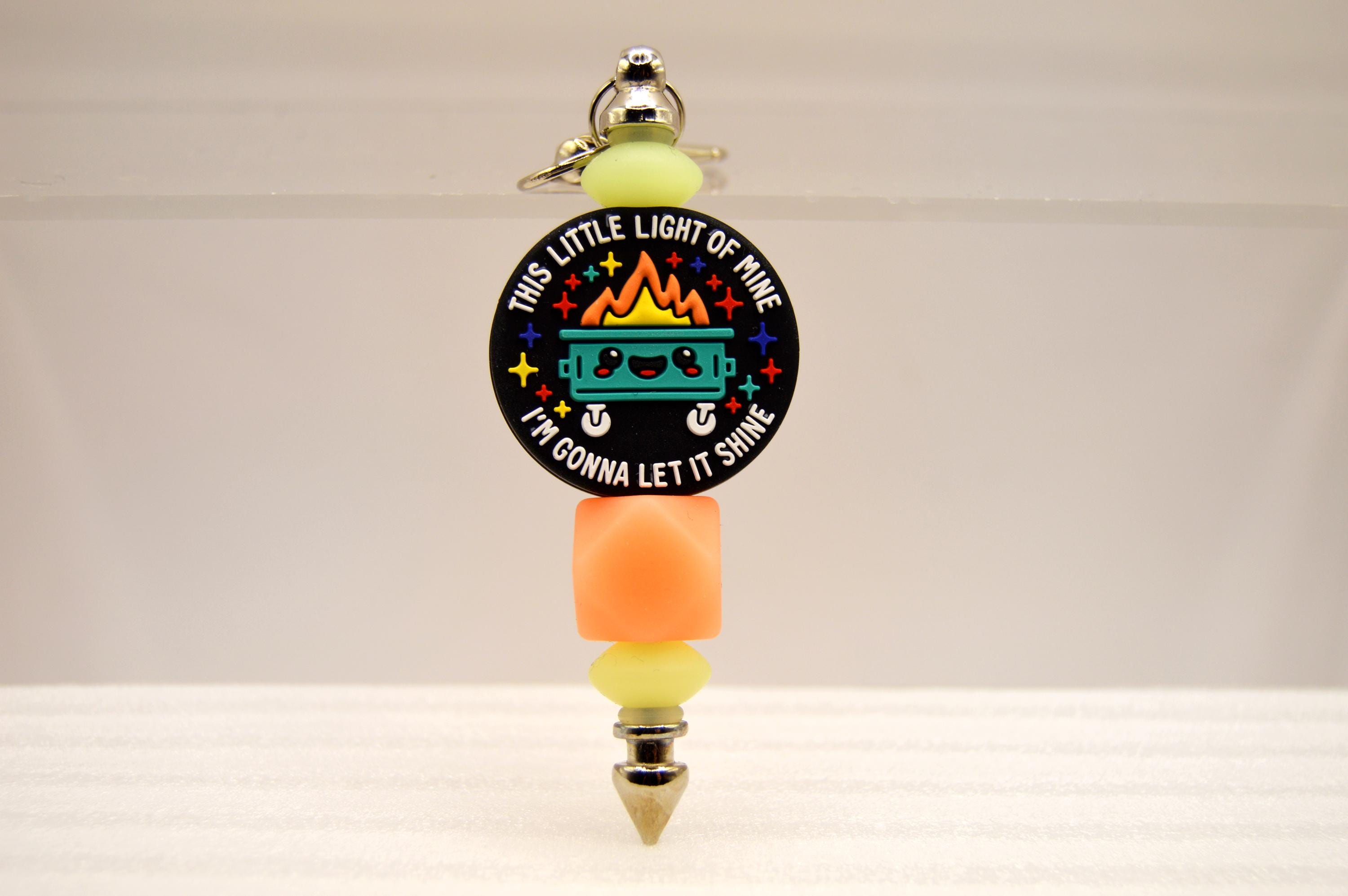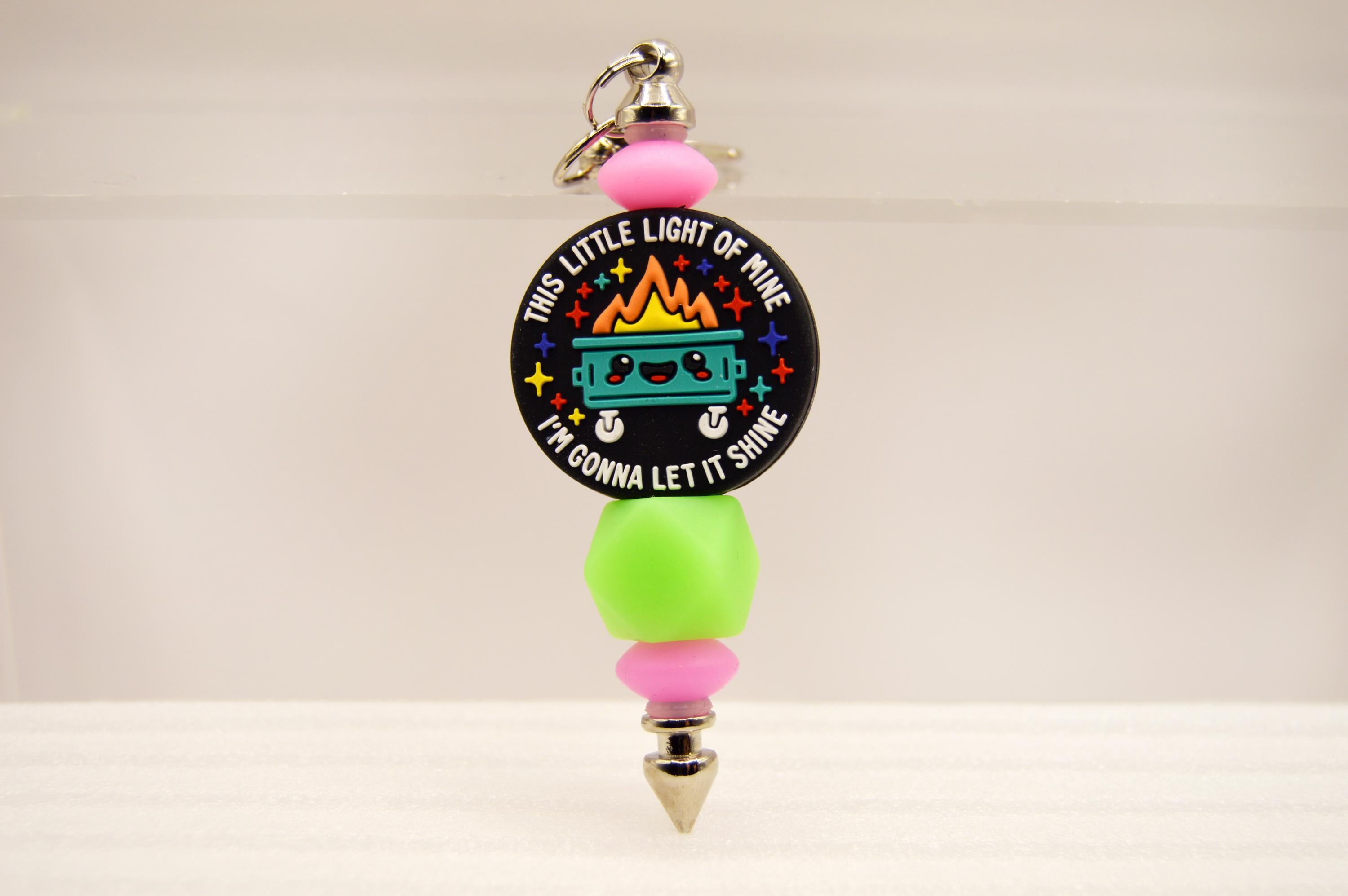 What a fun way to start your day! "This little light of mine, I'm going to let it shine" glow in the dark, key chain or bag clip